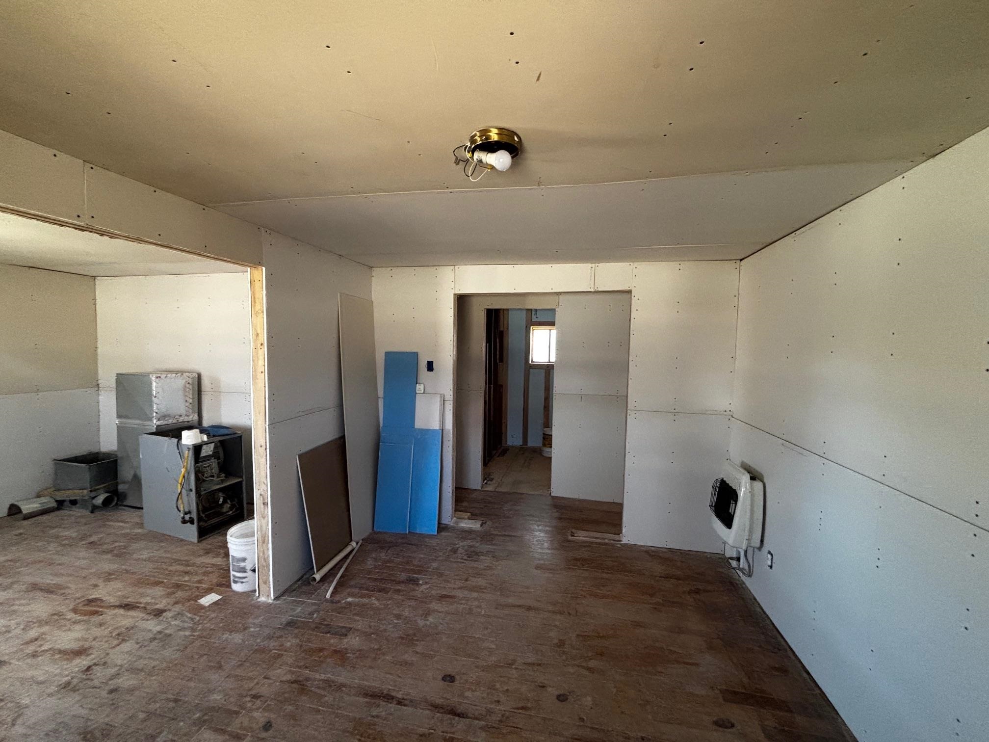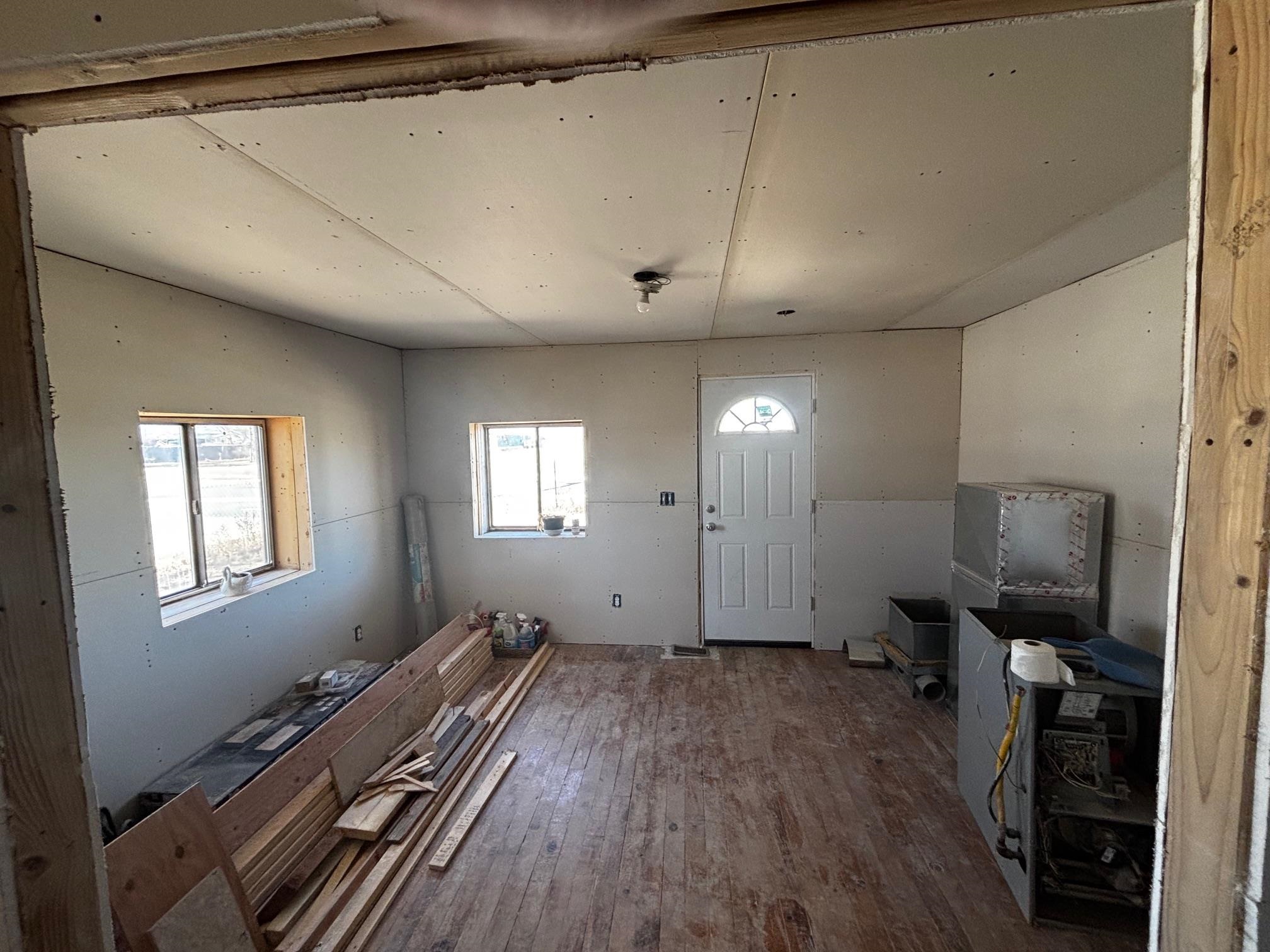 Nice 924 +/- sq ft unfinished remodel of two bedroom home with large living and flex room, south facing kitchen with mudroom/utility room. Frame constructed with stucco finish, pitched metal roof. Approximately half of the 7,000 property is fenced. The remainder is partially fenced. Additional 364 +/- sq ft concrete block/stucco workshop. Formerly with a dirt floor would fit one small car. Now with wood floor. Quiet neighborhood, wonderful views. In past two years have a new pavement footpath on north side and currently located a couple of blocks south of the proposed new Maxwell School. Owner took interior of property back to the studs in many places and has sheet rocked much of the rooms with mudroom/utility room and bathroom unfinished. Appliances need to be installed with some on site, including upgraded efficient windows and more flooring. Much to see here for someone with skills to finish the remodel.