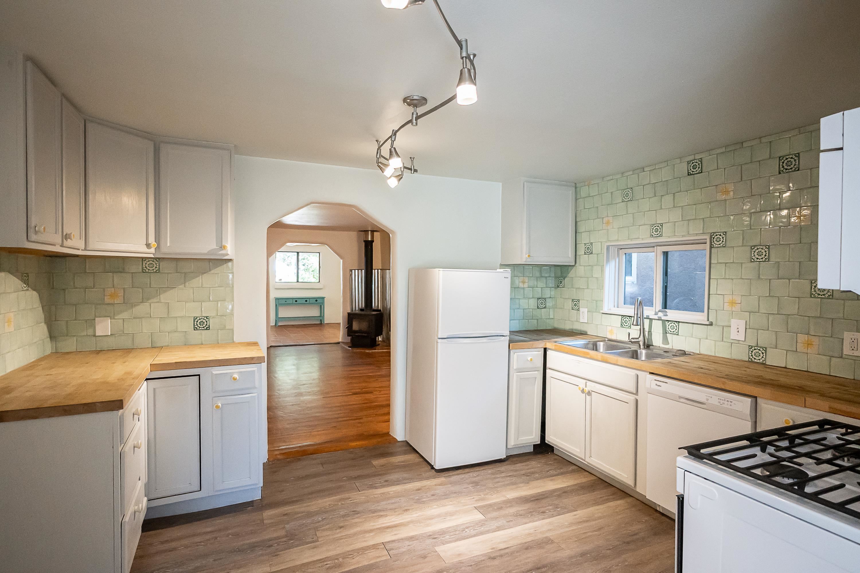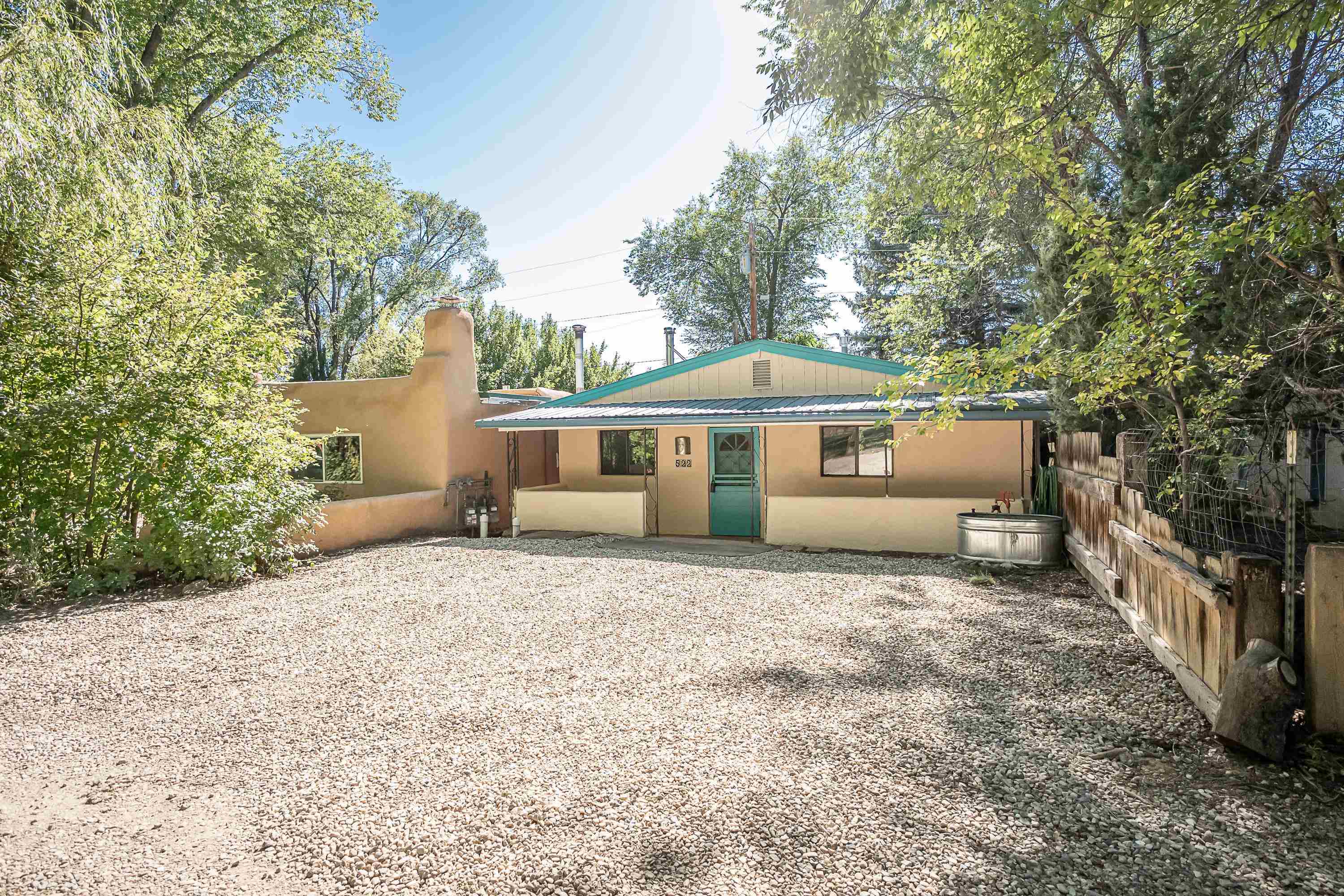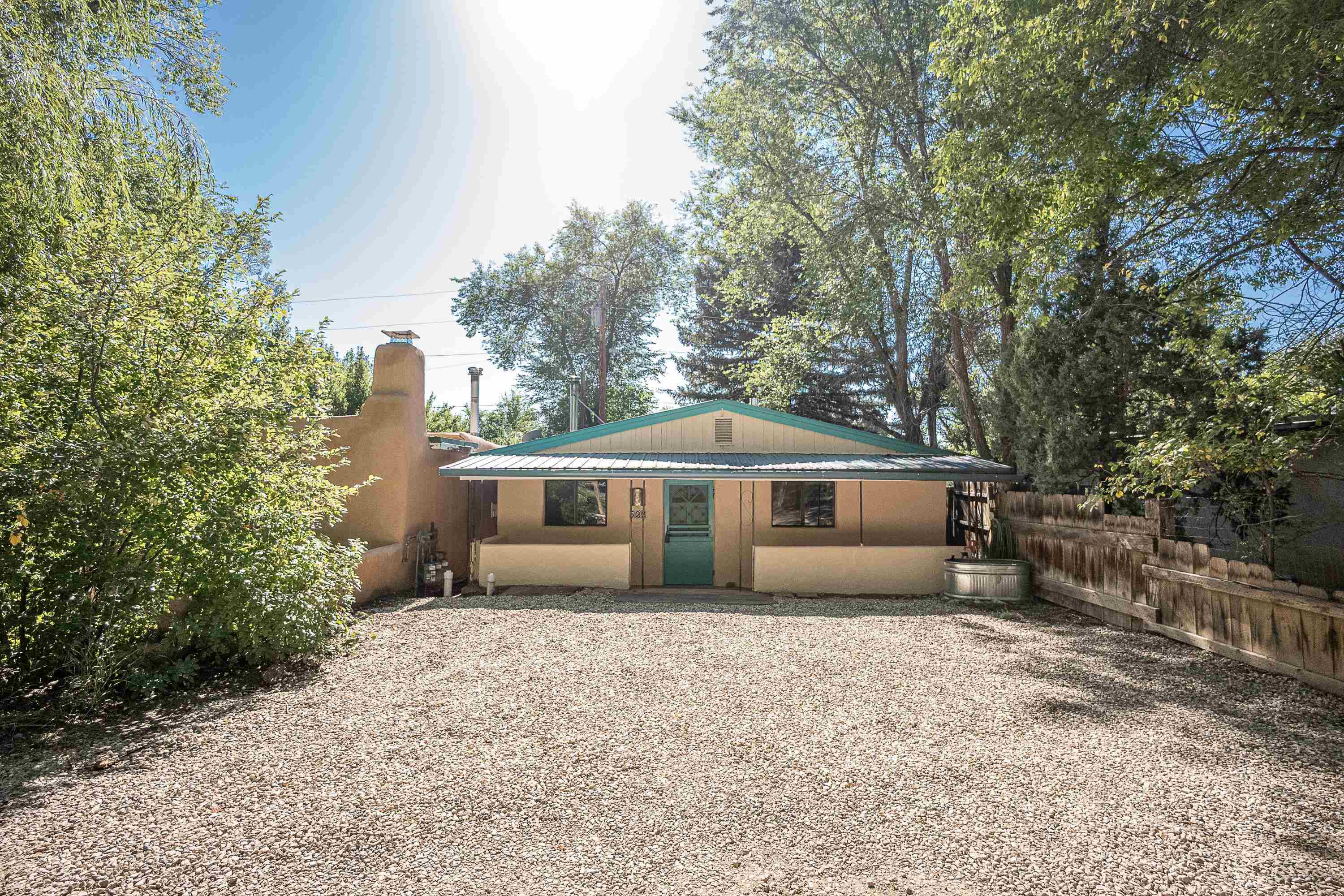 Sweet little Bungalow in a lush setting close to the center of town. Located off of Ranchitos on Conrad Lane, this house is move-in ready. There is lots of flexibility in the floorplan- we are marketing it as a 2 bedroom, but there are 2 additional bonus rooms that could be an office, a dining room, a craft/studio room, an extra bedroom , home gym, library, meditation room, whatever suits your needs and wants! Step into a sunny entry room that leads into a large living room with hardwood floors and a cozy woodstove. Beyond that is a bright and cheerful kitchen with butcherblock countertops and a nice amount of storage. There is a laundry room at the back of the house with a washer and dryer and windows that let in natural light. A hallway off the living room leads to the bedrooms and bathroom. The bathroom has a walk-in shower and a copper sink in the vanity. The shower and vanity have colorful Talavera tile. Recent upgrades include new paint, redone sewer line and electrical improvements.
