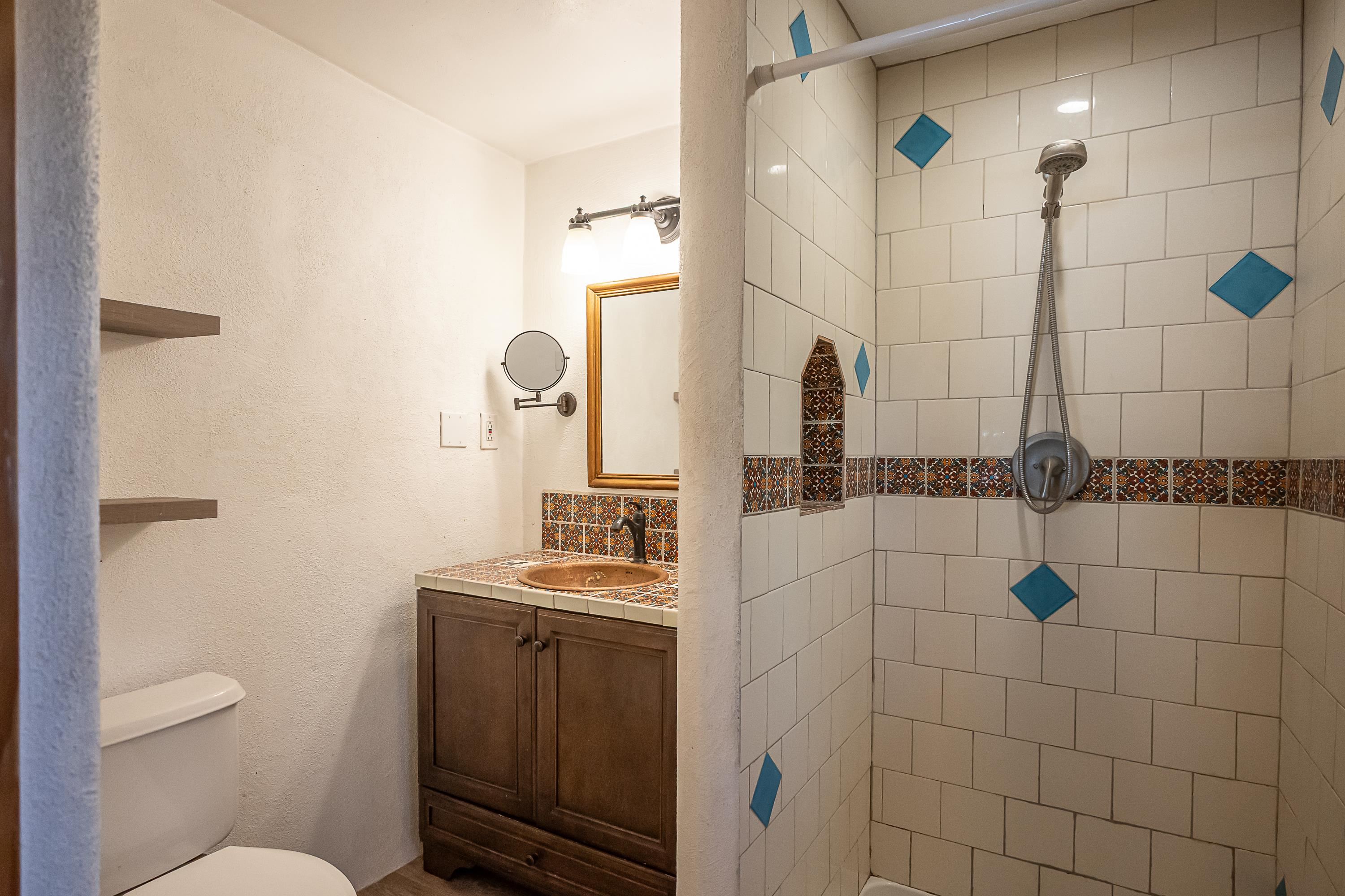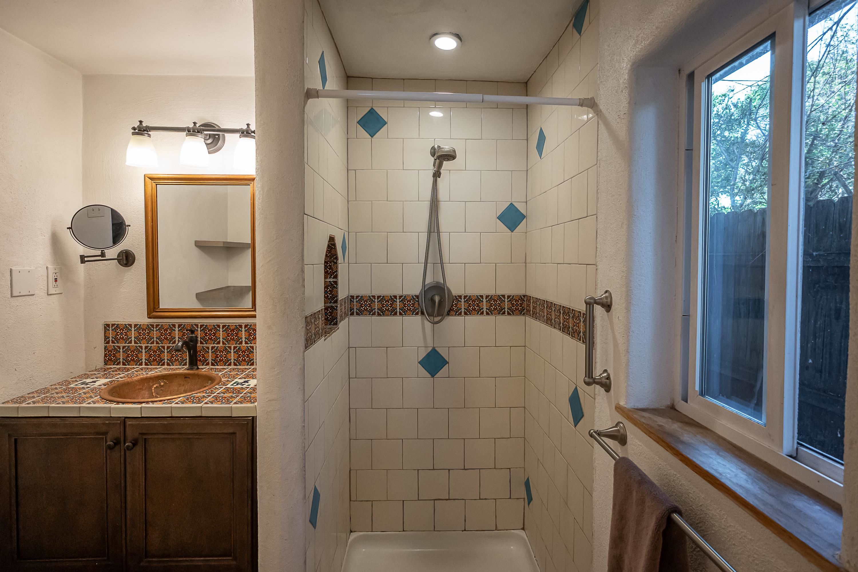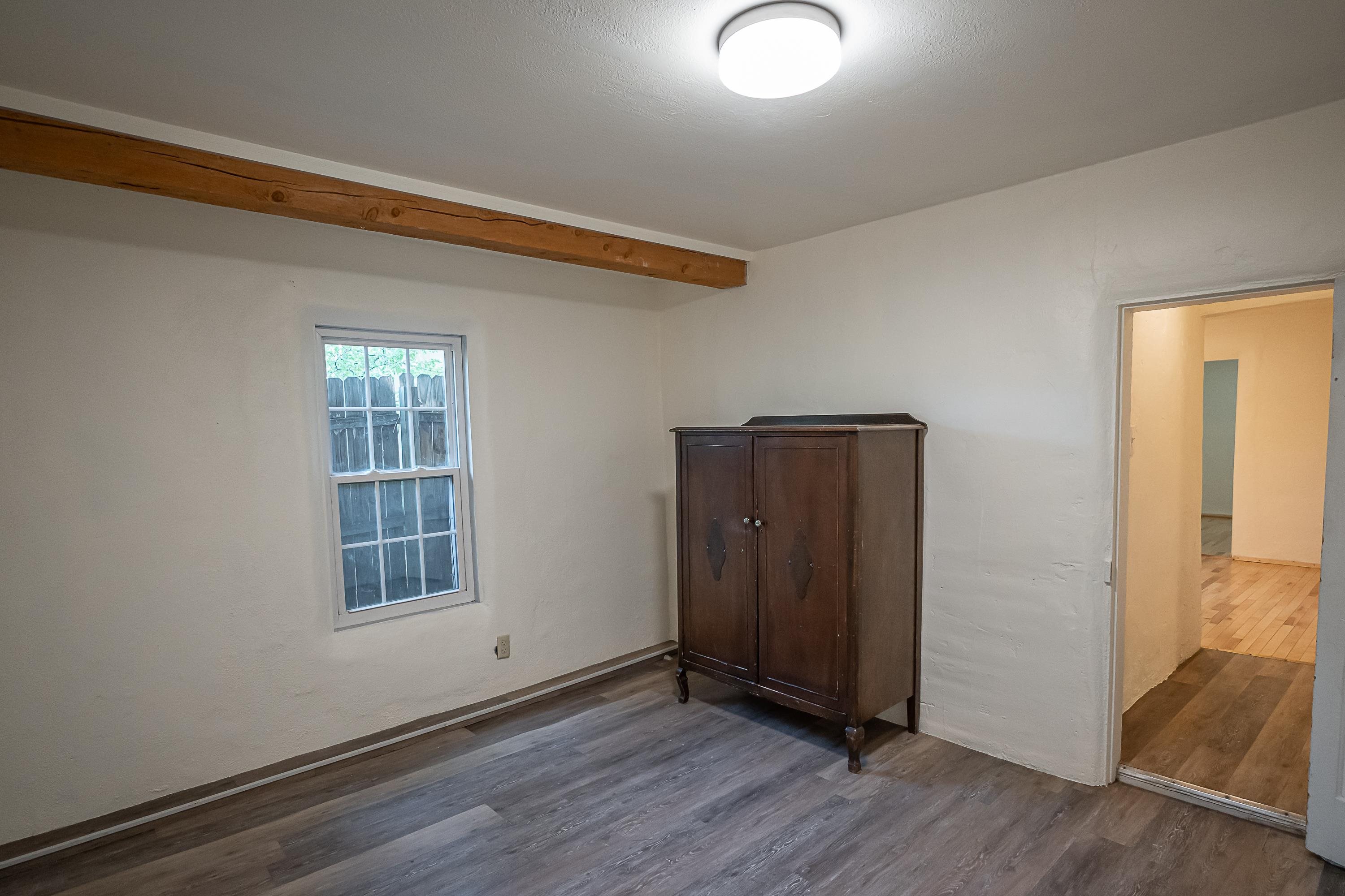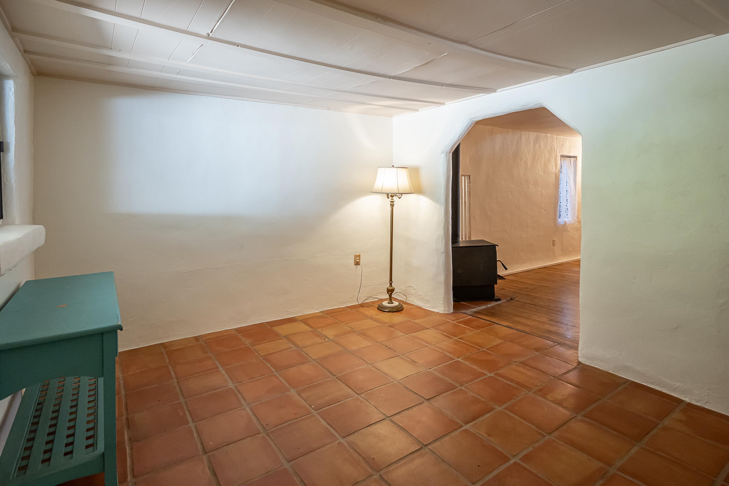 Sweet little Bungalow in a lush setting close to the center of town. Located off of Ranchitos on Conrad Lane, this house is move-in ready. There is lots of flexibility in the floorplan- we are marketing it as a 2 bedroom, but there are 2 additional bonus rooms that could be an office, a dining room, a craft/studio room, an extra bedroom , home gym, library, meditation room, whatever suits your needs and wants! Step into a sunny entry room that leads into a large living room with hardwood floors and a cozy woodstove. Beyond that is a bright and cheerful kitchen with butcherblock countertops and a nice amount of storage. There is a laundry room at the back of the house with a washer and dryer and windows that let in natural light. A hallway off the living room leads to the bedrooms and bathroom. The bathroom has a walk-in shower and a copper sink in the vanity. The shower and vanity have colorful Talavera tile. Recent upgrades include new paint, redone sewer line and electrical improvements.
