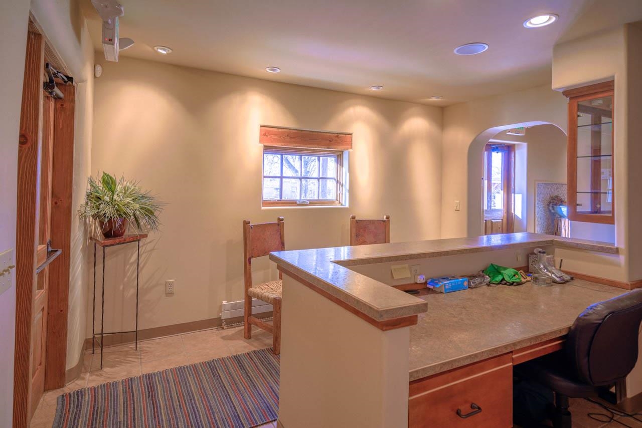 HUGE PRICE IMPROVEMENT! Located just .9 miles from The Taos Plaza, about a 10-minute walk, you will find this multi-use, 5,795 square foot commercial/residential Pueblo-style building in exceptional condition. This building went through a complete renovation down to the cinder-block exterior walls and completely rebuilt from top to bottom. It currently houses a clothing designer, two massage therapists, two spa treatment specialists, and previously, a ministry's gathering place with offices, reception area, and a stage for entertainment purposes, and offices for a local government agency. The building is currently locked off into three separate sections. The first section has the five office suites with a shared reception area, two bathrooms with one being handicapped accessible, and with a handicapped accessible entrance from the Paseo del Norte side of the building. The center section would make an awesome New York style warehouse loft for a live-work setup, or would make a great meeting/gathering place, wedding, and events venue with a stage for entertainment, dance hall, yoga studio, wellness center, or even a theater room with its state-of-the-art audio and visual electronics system with electronic drop-down movie screen. This section also has a full kitchen, two bathrooms with one being ADA-compliant, a receptionist area and waiting room, and a separate office. You can enter this section of the building from Theodora Street, and a large portal and a handicapped accessible entrance. The third section is the downstairs of the building, which has three office suites, a large storage area, a refrigerator and sink area, full bathroom with shower, and a waiting/reception area. In addition to a beautiful outside garden area, this building has lots of parking spaces available. One could even turn this property into a European-style hostel. There are endless possible configurations of this building that could be created, and the list of upgrades is numerous. The badly needed renovation of this property included new Brai roof, complete stucco work, 2x6 interior constructed walls on the cinderblock with high-grade insulation, all new plumbing and electrical work, new insulated exterior metal clad windows, wood beams above the windows, interior and exterior custom doors throughout, decorative sconces in all of the rooms, Myson radiant heat with décor radiators, a new boiler in the basement, Rinnai LS Series Tankless water heater, an Uponor D’Mand hot water delivery system, two Greenheck energy recovery ventilator systems, refinished oak floors, new carpet and tile floors, security system with added security lights on the exterior, lighted free standing marque for advertising at the front of the building, new gravel for the parking areas, and landscaping that is irrigated by the building’s private well. City water is used for the interior of the building, and each room has its own heat control to allow tenants their desired room temperature. This type of renovated building is not often seen in the Taos area. The remodel was completed under the conditions of the Historic Overlay Zone of the Town of Taos along with the Planning and Zoning Commission’s review and approval. Every detail was meticulously planned and implemented. One will be pleasantly surprised with both the exterior and interior of this property, and its wonderful location not far from the center of town. Don’t let this one pass you by, especially with it already generating income, and absolutely nothing needing to be done inside or outside. Owners had a new roof installed July 2024. This is an incredible investment opportunity!