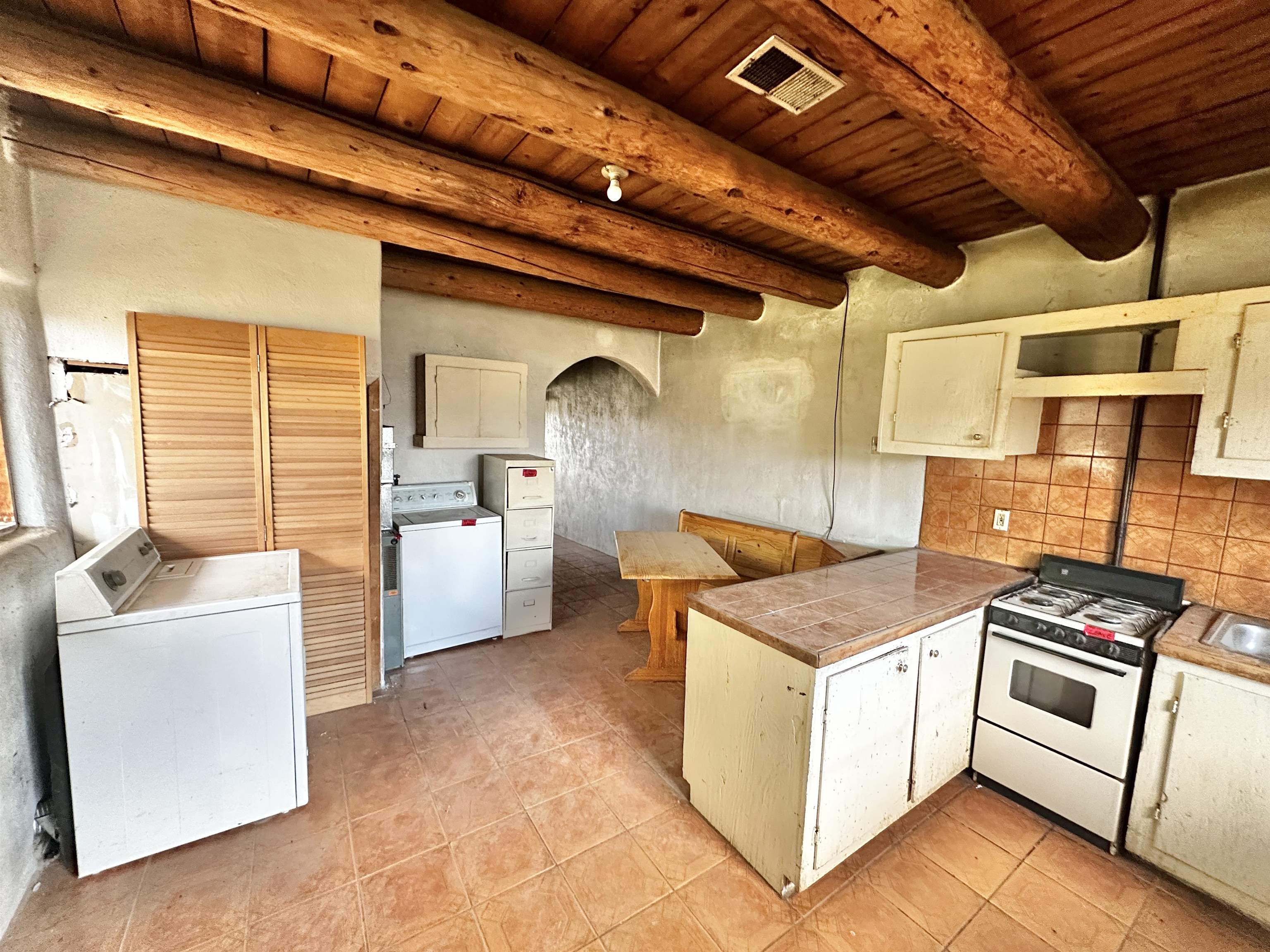 Conveniently located within the Town of Taos and off Camino del Medio is this 2 bedroom and 1 bathroom fixer upper! It's easy to access and has a lot of possibilities. The front yard area is fenced in with chain link and a stucco/adobe wall. Fruit trees garnish the landscape. There is buildable space on the east side of the home to expand the square footage of the home or should you want a garage/carport. Come see if this house fit your needs!