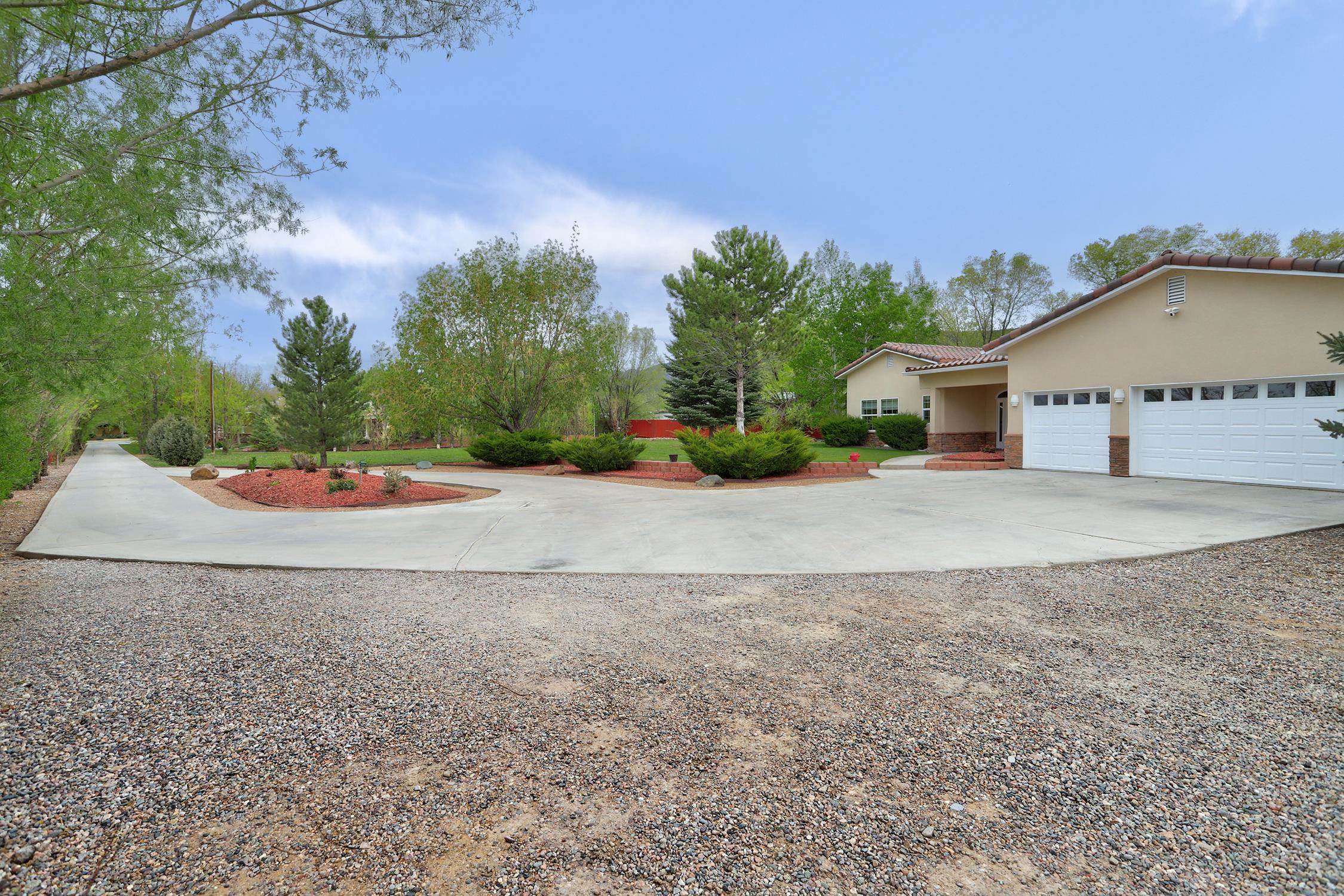 Unleash your Dreams at this Stunning Taos, NM Haven ~ At the end of a quiet, paved, and private road you will discover this stunning residence where space and thoughtful design converge to create an exceptional living experience. The main residence, encompassing a generous 2,277 square feet, offers a comfortable and elegant flow with three well-appointed bedrooms and three and a half beautifully finished bathrooms. Imagine the smooth touch of diamond finish walls, the sleek sophistication of granite countertops, and the gleam of stainless steel appliances in your culinary space with T&G ceilings and classy light fixtures throughout the home. Retreat to the primary suite and indulge in relaxation with a luxurious five-foot jetted tub and a private egress to the patio. Convenience is paramount with an attached, radiant-heated three-car garage, ensuring comfort even on the chilliest high desert mornings and a great workshop space. Beyond the main house, you will stumble upon a charming guest house providing an additional 800 square feet of living space, complete with two bedrooms, one bathroom and a dedicated private entrance. Your guests will appreciate the privacy and comfort, along with the convenience of its own attached two-car garage. Step outside and immerse yourself in the meticulously landscaped grounds, a verdant oasis featuring mature trees, lush grass, kept green with automatic sprinklers and a drip irrigation system. Recent upgrades ensure year-round comfort with the installation of two mini-split systems, providing instant heating and cooling to the primary bedroom and the main living/kitchen area. This remarkable property offers not just ample space, but a lifestyle of ease and enjoyment in the heart of Taos, easily accessible, and conveniently located next to all the amenities of the region. Reach out today see this stunning high desert haven for yourself!