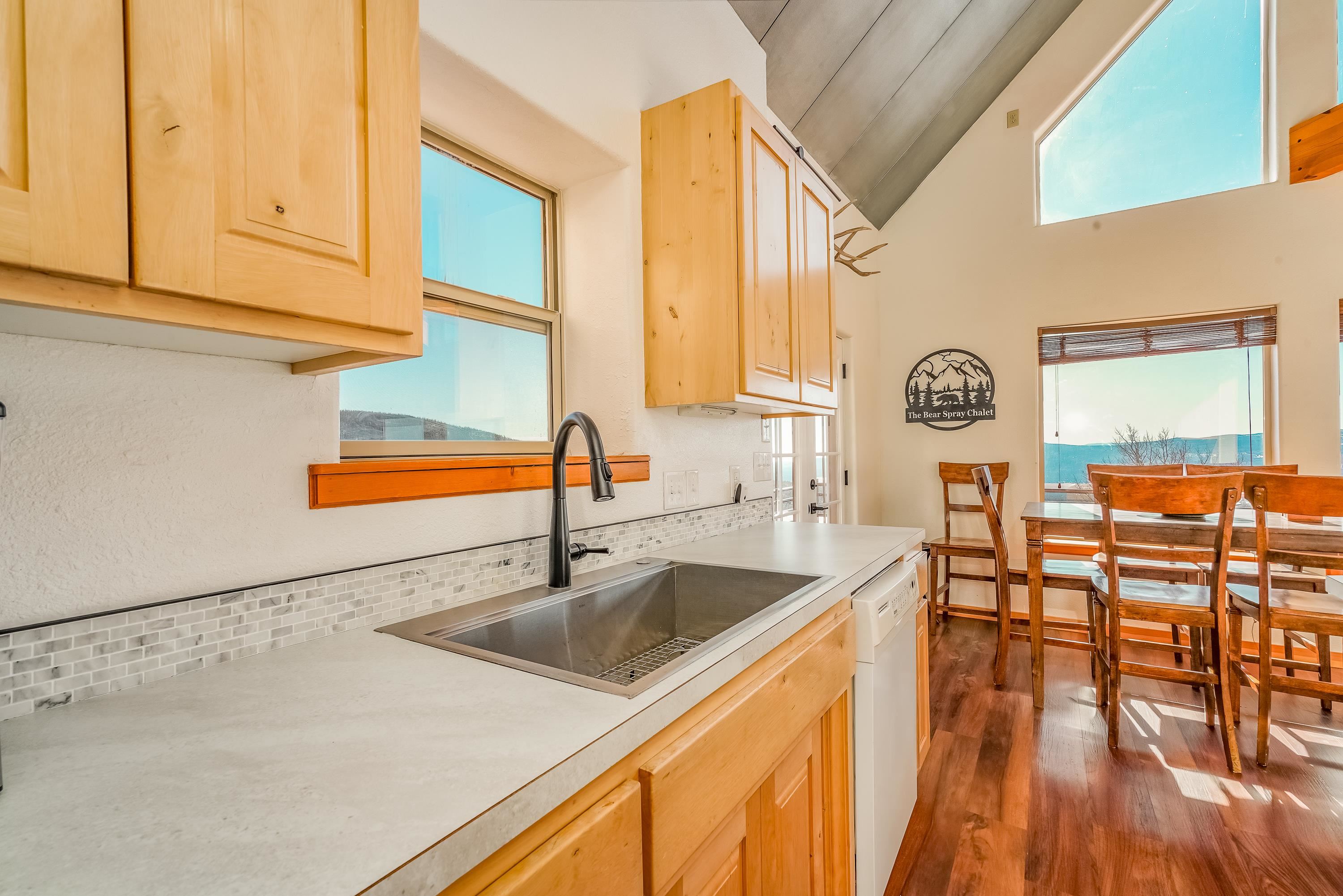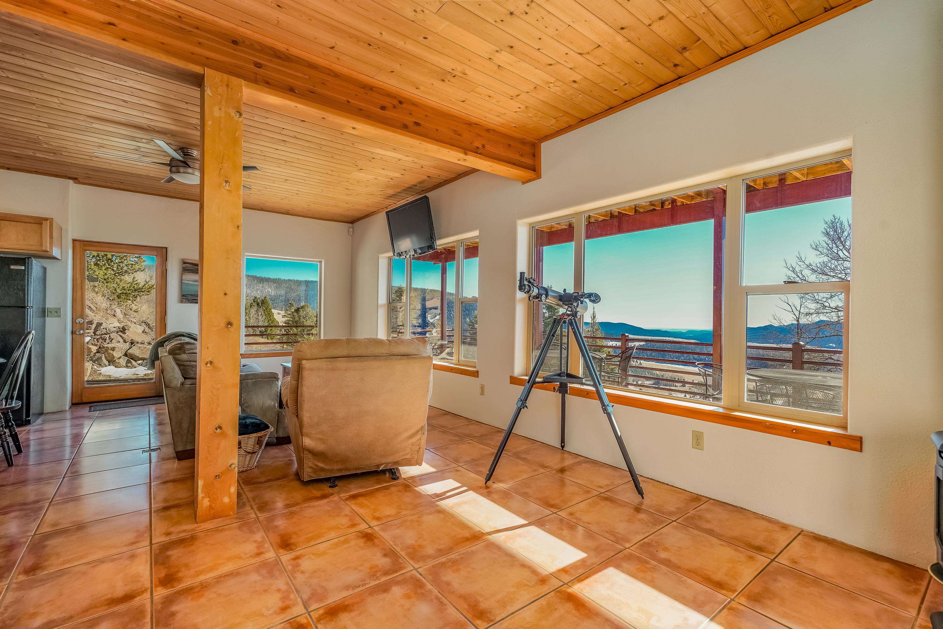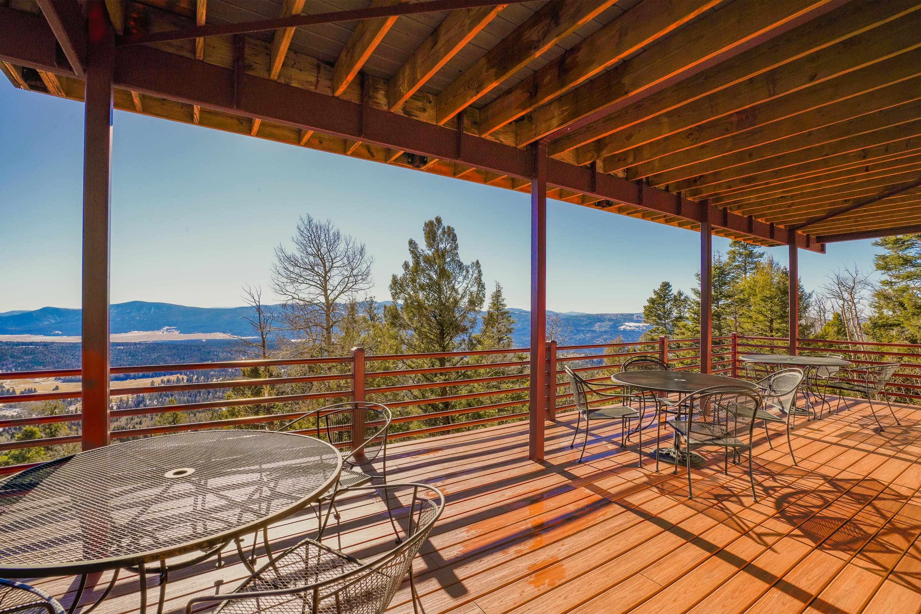 There’s living in the mountains… and then there’s living above them. That’s what 598 El Camino Real feels like, a ridge-top perch where the world opens up in every direction. The first thing you notice are the views. They’re not “pretty” views… they’re the kind that stop you mid-sentence because your brain needs a second to catch up. Eagles glide past the deck like they own the place, and sunsets spill across the peaks in colors that never look the same twice. The home itself has this easy, comfortable mountain energy, nothing fussy, nothing trying too hard. Just light, space, warmth, and that feeling of, yeah… I could stay here awhile. With three levels, vaulted ceilings, and windows that frame the landscape like giant art pieces, it’s built for people who want room to gather but also room to wander off and breathe. One of the best parts? Two separate living areas, each with its own kitchen. It’s perfect for extended family, guests who love to linger, or days when everyone needs their own rhythm. There’s even a loft with a full bath that feels like the perfect retreat for reading, working, or hiding with a blanket when the weather turns dramatic. Outside, the wooded lot gives you that classic Angel Fire feeling, tucked into the trees, surrounded by quiet, yet close enough to town to keep life easy. It’s the kind of property where morning coffee happens on the deck because the clouds literally drift below you. And evenings? They’re for slowing down, watching the sky catch fire, and reminding yourself that yes… you really do live here now. Life on this mountain top moves at a different pace. A better one. There’s space to breathe, space to reset, space to remember what matters. Whether you’re hosting a crowd for ski weekends or sneaking away for peaceful summers, this home stretches to fit whatever season of life you’re in. If you’ve been craving a mountain escape that feels both elevated and deeply grounding, a place with perspective, privacy, and that “wow” moment every time you step outside, this chalet on El Camino Real is ready to welcome you in. Come stand on that deck. The mountain will do the rest.