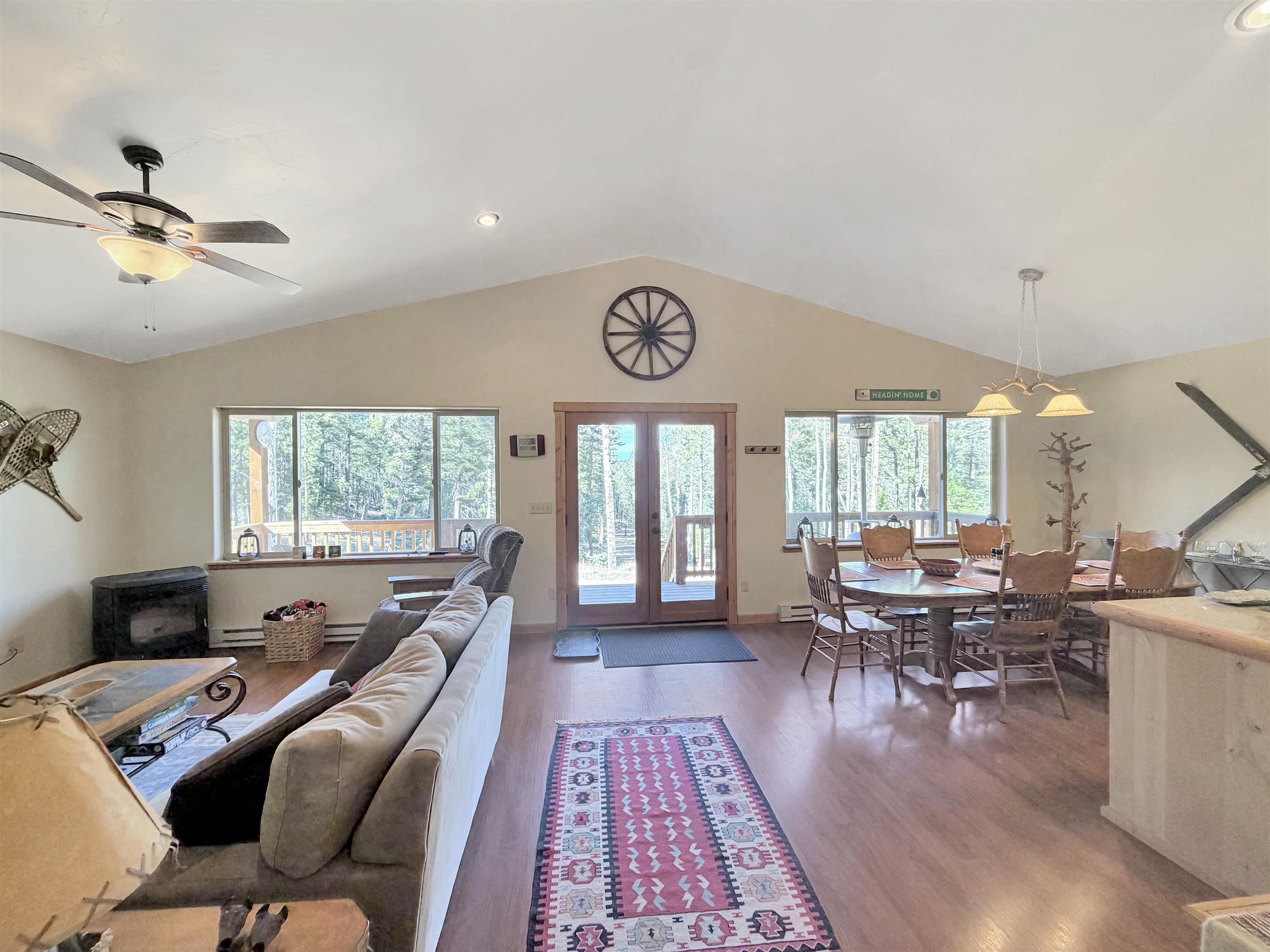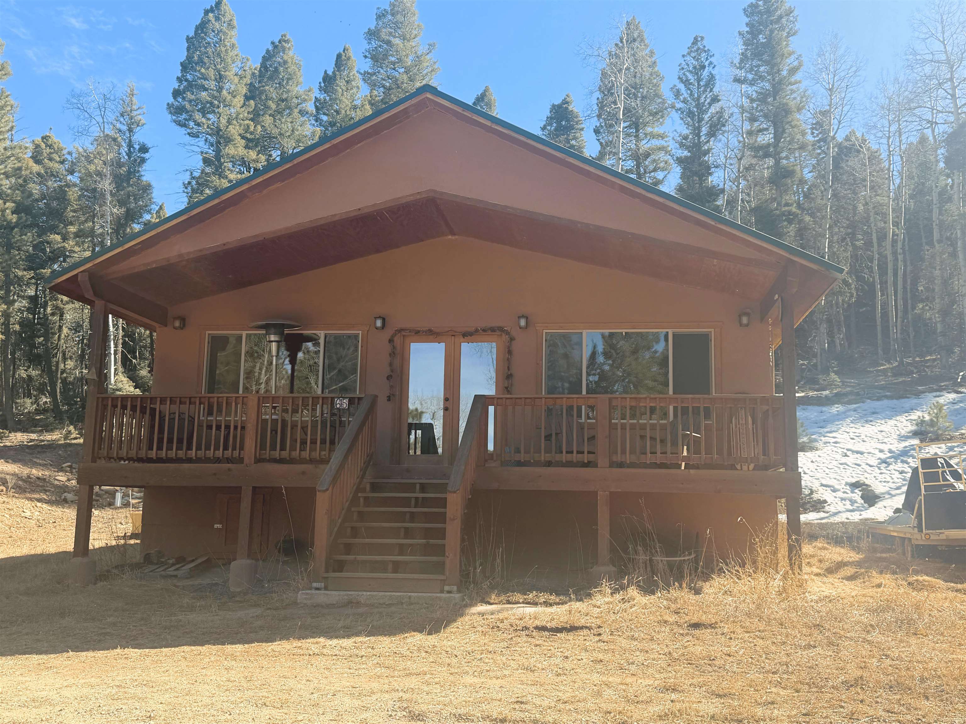 Come and discover the perfect basecamp for your mountain adventures! This 5-acre retreat offers a great location for year-round fun, positioned in between Angel Fire and Eagle Nest, NM. Surrounded by towering pines, the property provides a peaceful escape with the freedom of no restrictive covenants or HOA oversight. This home was built in 2012, and features 3 bedrooms, 2 bathrooms, and a comfortable layout anchored by a cozy pellet stove in the living room, great for unwinding after an adventurous day. The home has been well maintained, including the installation of a new water heater in 2024. Enjoy your morning coffee on the covered deck soaking in the mountain air. In the evening, unwind under the dark Northern New Mexico sky. This property is ideally located just 10 minutes away from Angel Fire Resort featuring activities such as skiing, snowboarding, world class mountain bike park, the PGA rated 18 hole golf course. You are also just moments away from premier fishing and boating on Eagle Nest Lake, as well as endless opportunities for hiking and ATV exploration right in your backyard. This home perfectly balances mountain seclusion with proximity to all the outdoor activities that make Northern New Mexico a paradise. Call us today to schedule a showing!