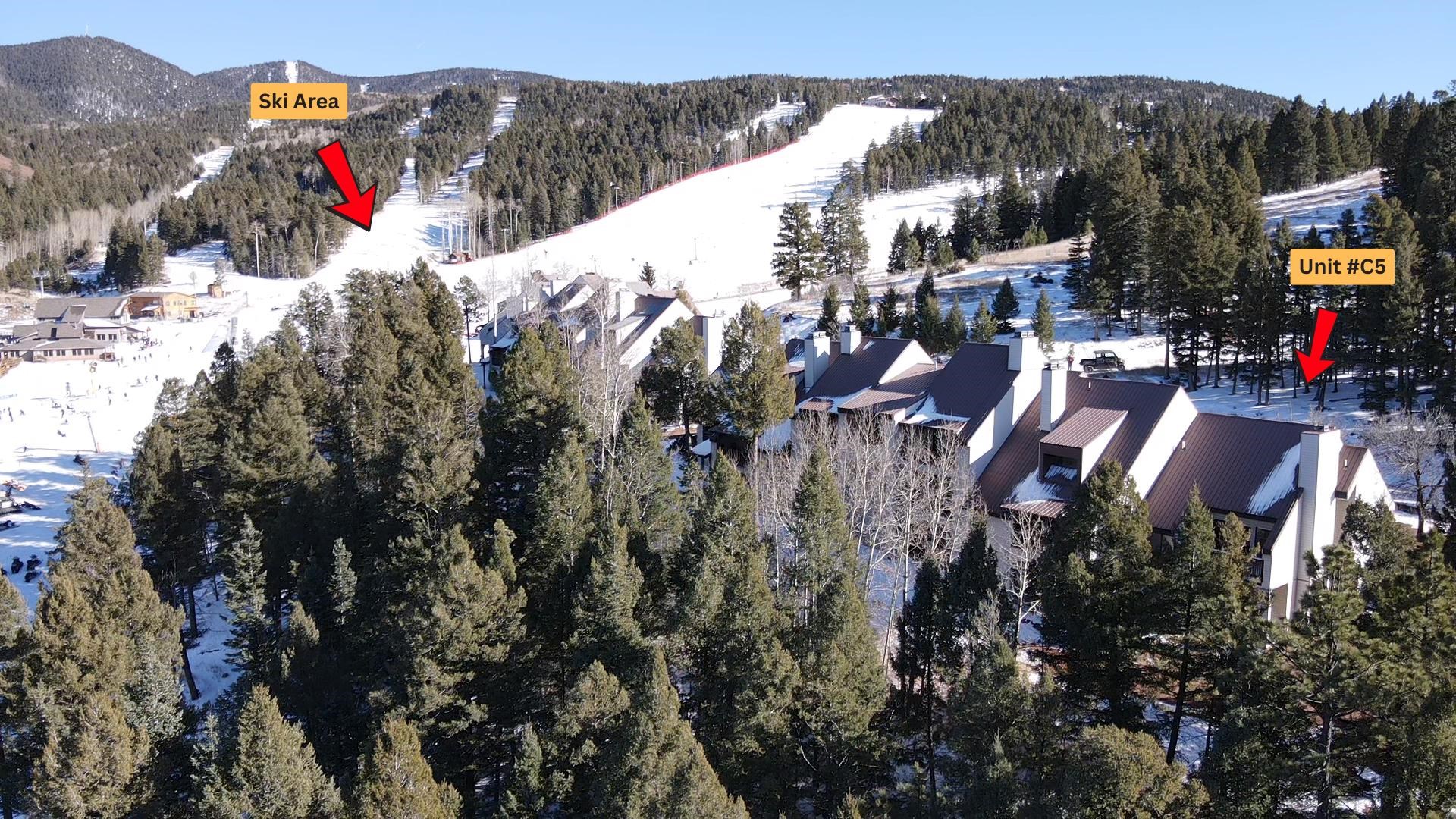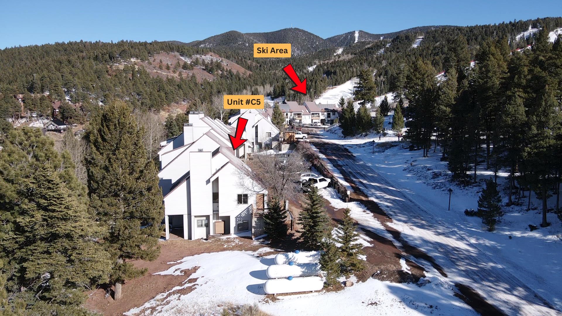 Come and discover this recently updated 2 bedroom, 2.5 bathroom condo at Ski Run in Angel Fire, NM! While many mountain condos may feel like a squeeze, this end unit has a spacious floor plan and offers the perfect balance of privacy and space to entertain. With ski-in/ski-out access, you can transition seamlessly from the slopes or world-class mountain biking trails right back to your front door without having to get in the car. Inside, the home features updated appliances and flooring, giving a clean and modern feel. The 48" linear gas fireplace serves as the centerpiece of the living area, while the kitchen and bathrooms showcase elegant granite countertops paired with chrome fixtures. Retreat to the bedrooms to find a private two-person infrared sauna for ultimate relaxation after a day on the slopes. The bathrooms are a true spa-like experience, featuring multi-function waterfall shower fixtures that add a touch of luxury to your daily routine. With 2 full bedrooms, 2 full bathrooms, and a half bath, this property can serve as the perfect primary residence, vacation getaway, or investment property. Whether you are carving through fresh powder in the winter or spending your summers fishing, hiking, and golfing on Angel Fire Resort’s PGA-rated 18-hole course just a short drive away, this location puts you exactly where you want to be. Don’t miss out on the opportunity to own this premier condo in Angel Fire. Call us today to schedule a showing!