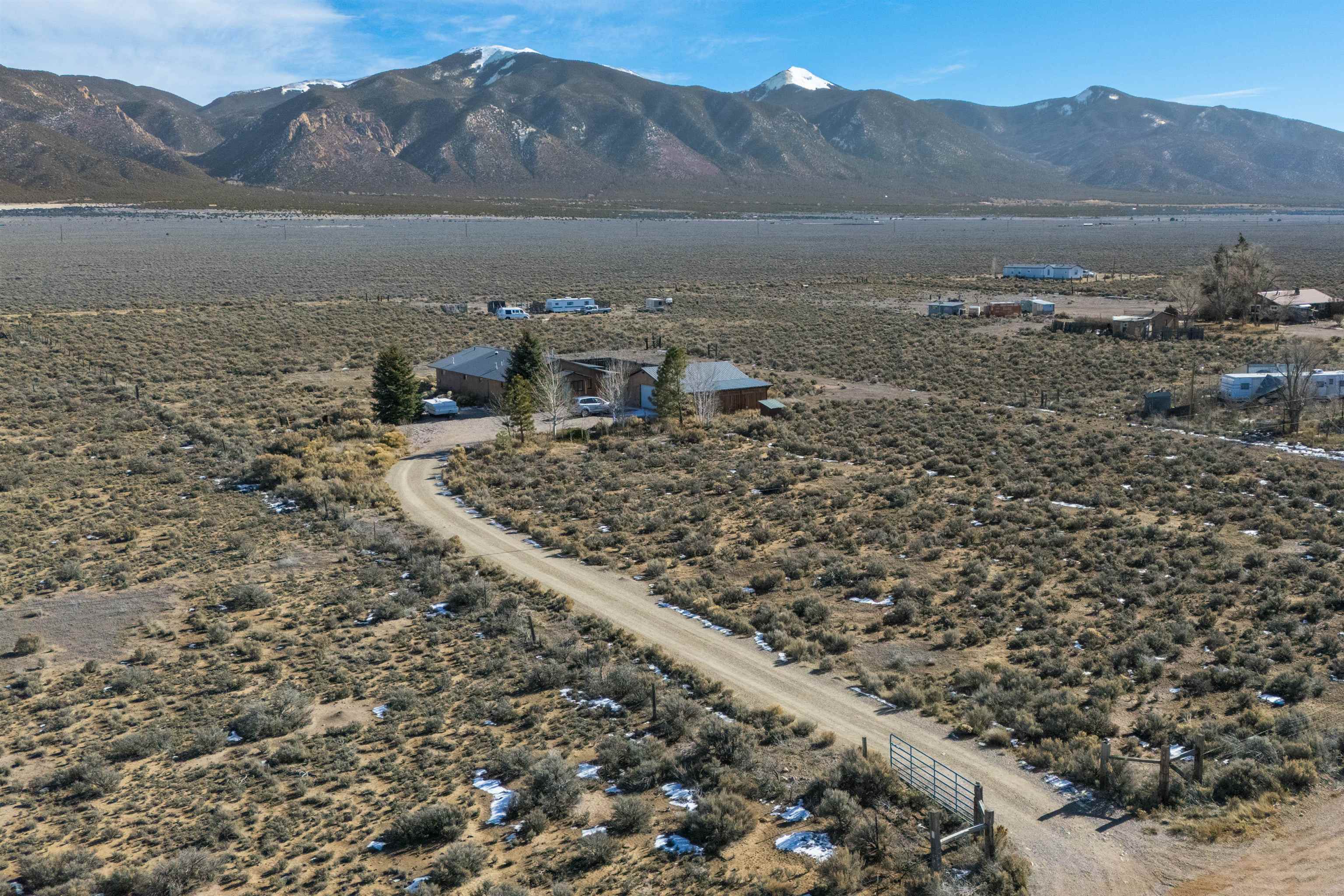 Introducing 66 Rainbow Circle, an opportunity to step into the kind of Northern New Mexico setting that quietly captures people the moment they arrive. Set on 1.8 peaceful acres in Sunshine Valley, in the high desert of Taos County, the property enjoys nearly 300 days of sunshine each year. It is surrounded by a true 360° landscape: the Sangre de Cristo Mountains rise to the east, the Tusas range anchors the west, with open views stretching north toward the Colorado border and south across the wide Questa valley floor. It’s a setting that feels expansive in every direction, with light and sky as constant companions. The home is thoughtfully built and grounded in durability, with pumice-crete construction and a well-insulated stick-built addition. Offering 3 bedrooms, 2 baths, and approximately 1,600 square feet, the layout reveals itself in a way that feels both intuitive and comfortable. The primary suite is set apart for privacy, generously sized with its own ensuite bath and closet—creating a quiet retreat within the home. Two additional bedrooms are positioned separately, offering flexibility for guests, work, or creative space. The flow of the home is one of its most compelling features. From the entry, spaces unfold naturally, moving from living to dining to kitchen without interruption, while still maintaining distinct areas. The living room anchors the home, and the adjoining dining area connects seamlessly to the kitchen, creating an easy rhythm for everyday living or gathering. Along the southern side, dual sunrooms extend the living space even further, capturing warmth and light throughout the day and offering a place to sit, read, or simply take in the landscape year-round. A wall of southern-facing windows, stretching nearly 50 feet, brings in consistent natural light and frames the surrounding mountains, making the outdoors feel ever-present. Radiant floor heating runs throughout, adding to the home’s comfort and efficiency. Beyond the interior, a heated oversized garage with 220-volt power and its own electrical panel offers space for a workshop, studio, or storage, while a carport adds convenience. The property is serviced by a private well and septic, supporting a more self-sufficient lifestyle. Outside, the land has already begun to take shape in meaningful ways. A ramada creates a natural gathering point for outdoor dining and quiet evenings, while flagstone paths wind through the trees and connect the property. Water access on both sides of the driveway supports gardening and future garden expansion. Located just 15 minutes to Questa and the Colorado border, 30 minutes to Red River, 45 minutes to Taos, and under an hour to Taos Ski Valley, the home offers both accessibility and a sense of retreat. What sets 66 Rainbow Circle apart is the combination of space, thoughtful layout, and value—elements that are increasingly difficult to find together in this region. It’s not just the land or the views, but how livable and adaptable the home already is, offering a strong foundation for someone to step in and make it their own. For those looking for a place that feels both established and open to possibility, this is a property that invites you to imagine what life here could become.