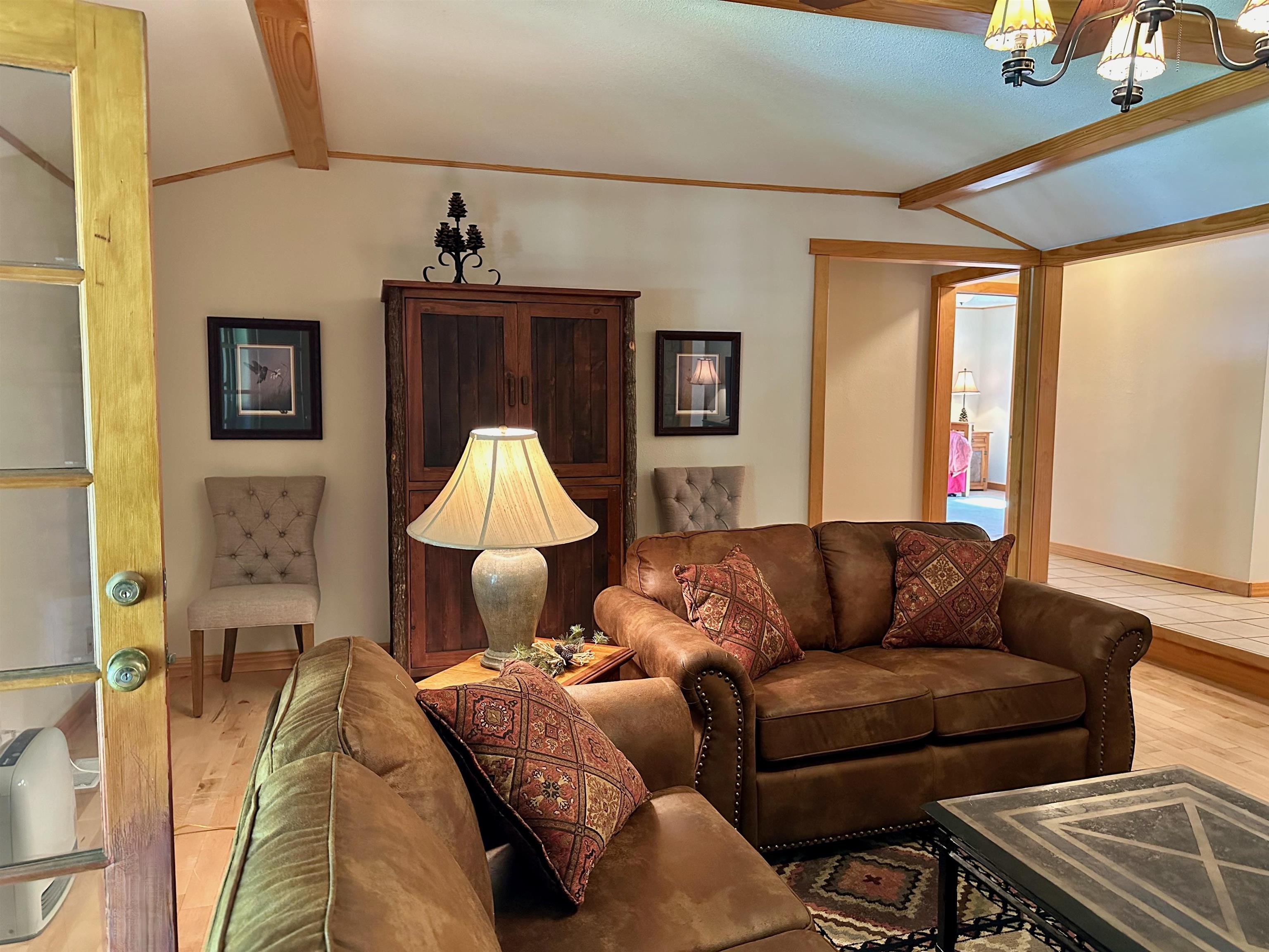 Ready for Ski Season, Spring Break, Easter and beyond...This easy all-weather access mountain home is nestled in the Southern Rockies on the Enchanted Circle of northern New Mexico, minutes from the Angel Fire Resort ski mountain. Being just outside of the Angel Fire Resort but still in the Village of Angel Fire, there are no Resort HOA dues. In the winter, there are filtered views of the Resort ski mountain. Almost 1 acre of beautifully forested, level land. Two bedrooms , two baths on main level and a second living space, primary bedroom and ensuite bath on lower level. Forced air heating. Wood burning fireplace insert in living room. Wall/space heaters for additional spot heating. Large kitchen with S/S appliances. Washer/dryer outlets are in a 195 sq-ft heated area in the lower level which is not included in the square footage in this MLS listing. Appraisers might not include that square footage in their appraisal due to certain appraisal guidelines. The covered back porch is perfect for outdoor dining, entertaining and relaxing. Wonderful back yard for the kids, pets and privacy. There is even a fenced area for pets. This versatile property would make a wonderful primary home or the perfect get-away from the stress of the big city. There are no restrictions on the number of short term rentals in Angel Fire, making for some potentially valuable supplemental income when you're not in town. Fiber-optic internet with super-fast data transfer is run to the house giving you opportunity to work from home but ski on your lunch hour. The Angel Fire Resort ski mountain/nationally recognized mountain bike terrain park is only a 6 minute drive (2.5 mi) and the $15 mill Angel Fire Resort Country Club with its PGA-rated golf course is about 7 minutes away. Average summer temperature is 76 degrees with no humidity. Mosquitoes, chiggers, no-see'ems, fleas and poisonous snakes don't like altitude and choose not to live here. A few minutes away is the Angel Fire Airport primarily for private aircraft with a jet-capable runway accommodates your Gulfstream. In December of 2024, Advanced Air added 5 weekly roundtrips from Albuquerque. Only 15 minutes to Eagle Nest State Park for fishing, about a 30 minute drive to Red River, 45 minutes to Taos, 2 hours to Santa Fe and 3 hours to Albuquerque. This is a package that is hard to beat. Plan a visit soon and explore the many possibilities that Angel Fire, NM has to offer.