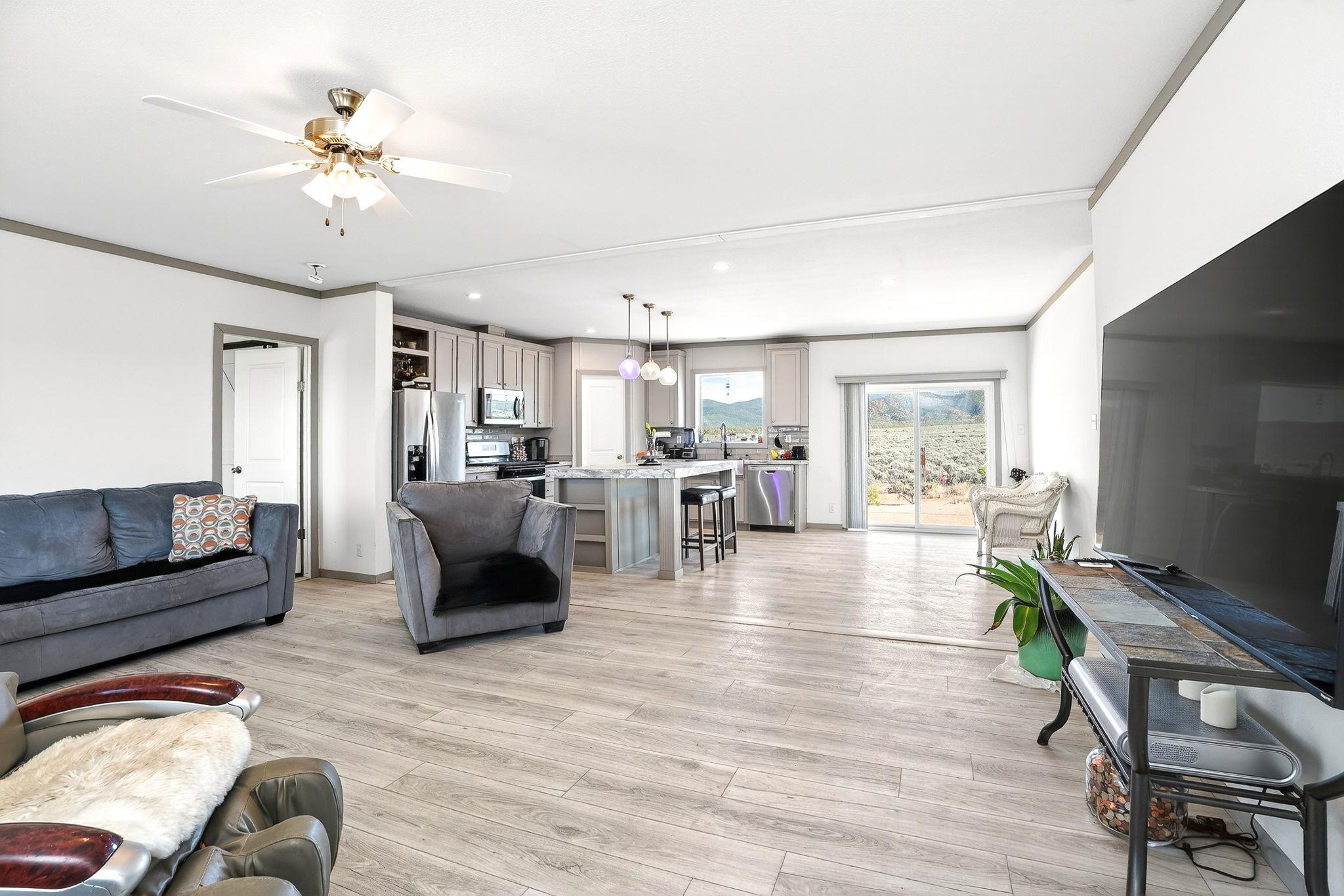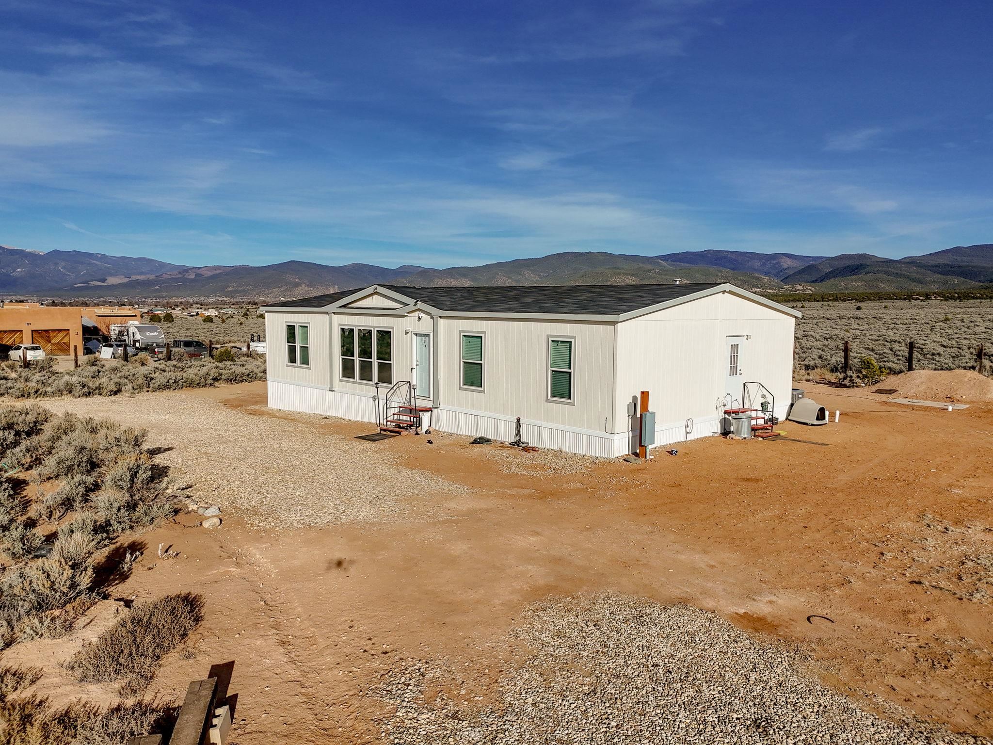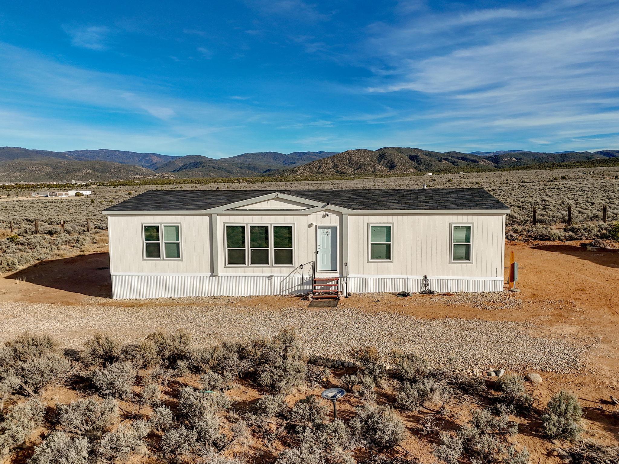 Experience wide-open skies and breathtaking 360° views from this beautifully situated 2025 Champion manufactured home on a permanent foundation. With 3 bedrooms, 2 bathrooms, and approximately 1,680 square feet, this lightly lived-in home offers modern comfort in a serene, expansive setting. Set on a full acre of flat, buildable land, the property captures sweeping views across the valley to Taos Mountain, the Gorge Rim, and beyond. Located at the end of a quiet road, you’ll enjoy privacy and peace while remaining just 8 minutes to Taos Country Club and 13 minutes to the Taos Plaza, close to everything, yet comfortably removed from the hustle and bustle. The home features newly installed septic, water line, propane, and electric service, providing confidence and convenience for its next owner. With minimal restrictions and ample space for expansion, gardens, or additional structures, this property offers both flexibility and opportunity. Priced to sell, this is your chance to own an affordable and beautiful slice of Taos with unmatched views and room to breathe.