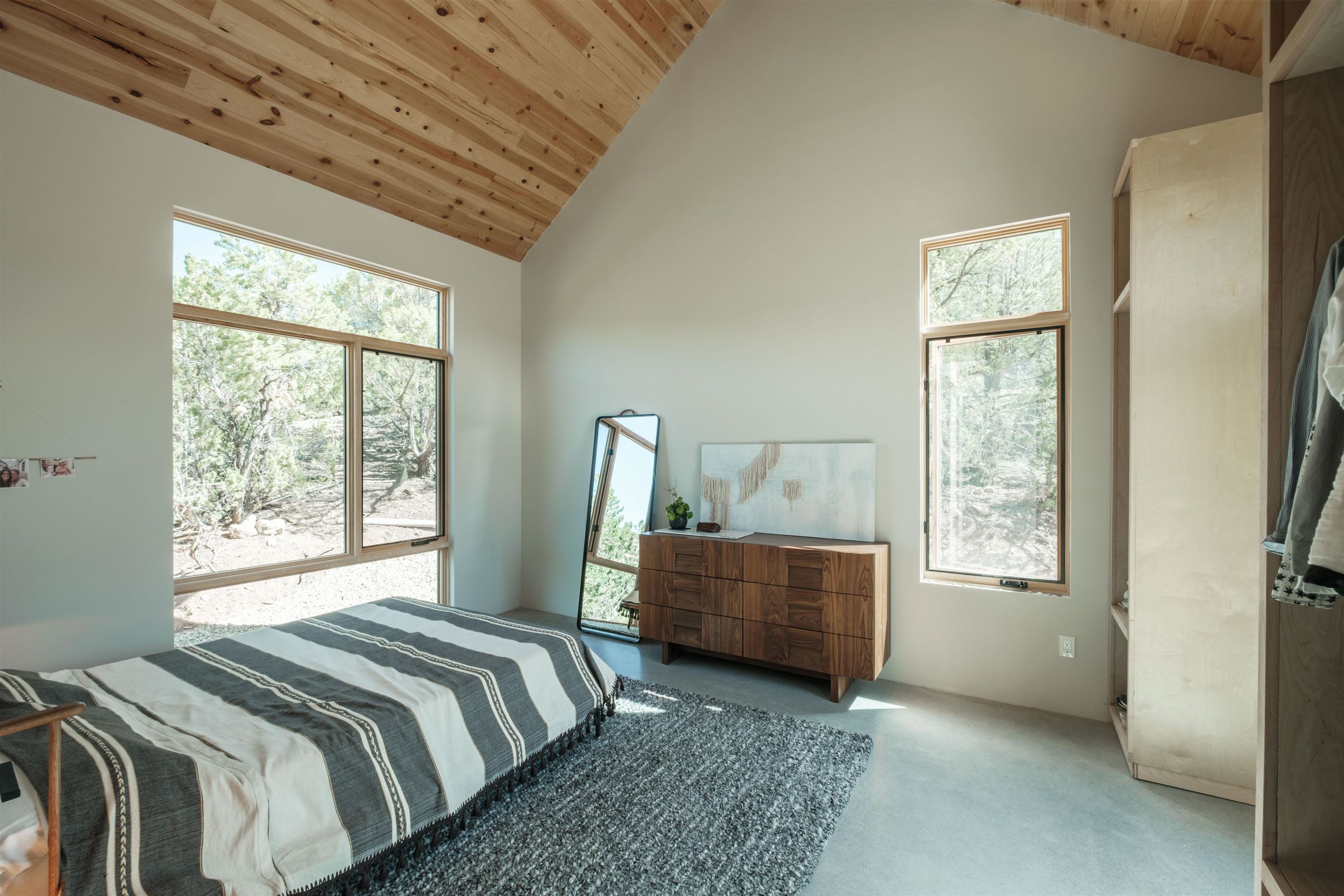 Set in the Talpa foothills, at the south end of the Taos Valley on a magnificent 55+ acre north-facing pinon/juniper clad hillside is this brand new, 1470 sq ft, 2 bed/ 1.5 bath territorial style, contemporary farmhouse. Designed by the award winning San Antonio/Austin based, internationally recognized architecture firm of Lake|Flato, this iteration of their well-loved “Porch” home plays off the northern NM vernacular of L shaped adobes re-imagined here for the 21st century. Featuring Thermory Kodiak spruce decking on the expansive porch, densified polished concrete floors throughout, soapstone counters in the kitchen, Fisher-Paykel appliances, Carrera marble in the bathrooms and Zellige tiled bath walls and kitchen backsplash, and large Sierra-Pacific windows, this is home that pulls the sights and light of the site right into every room making this a home that is tough to leave. This thoughtfully planned and built equine-centered ranch comes with private hiking and riding trails into the Carson National Forest, a 100 ft 190 ft professionally designed and built riding arena, a round pen, 5 separate paddocks with 7 run-in shelters, a large hay barn and equipment shed, a separate barn/tack room with its own bath and laundry, 2 full-RV/camper hook ups with power, water and septic, raised beds to satisfy your green thumb, several additional building sites and 2 septic systems. Finished in 2023, this property is that rare combination of superb design, seclusion, infinite views, robust amenities and infrastructure, and an abundance of land bordering the National Forest a mere 2.5 miles from Taos.