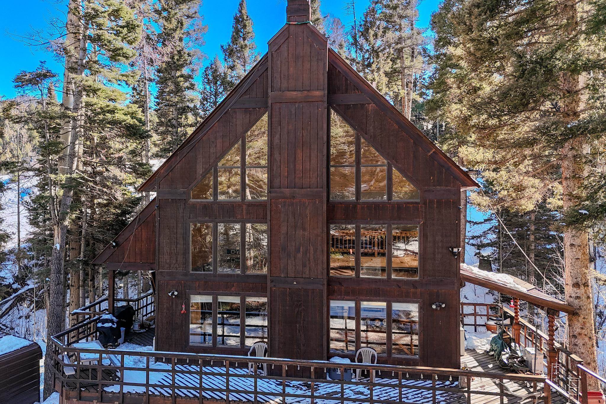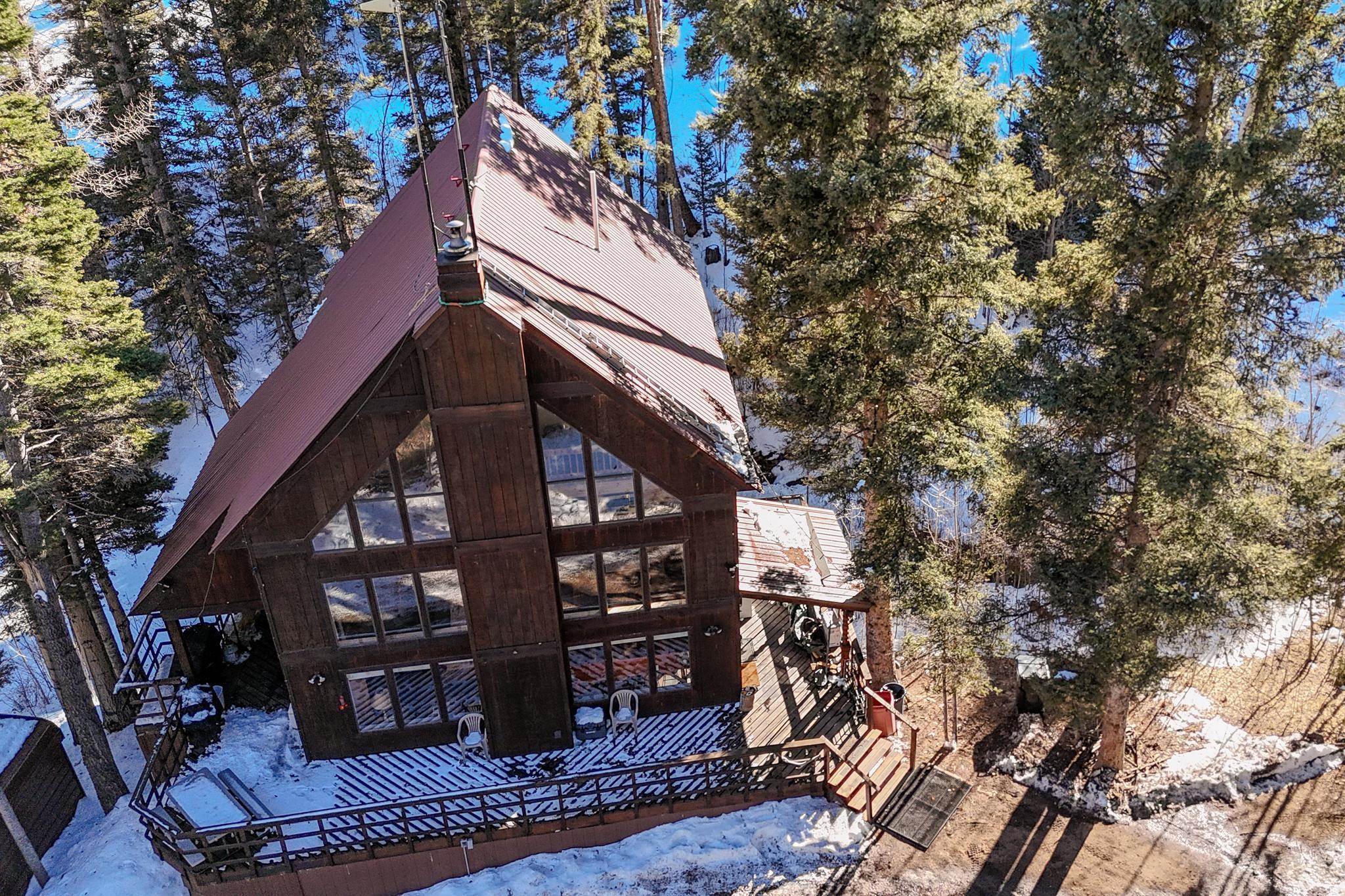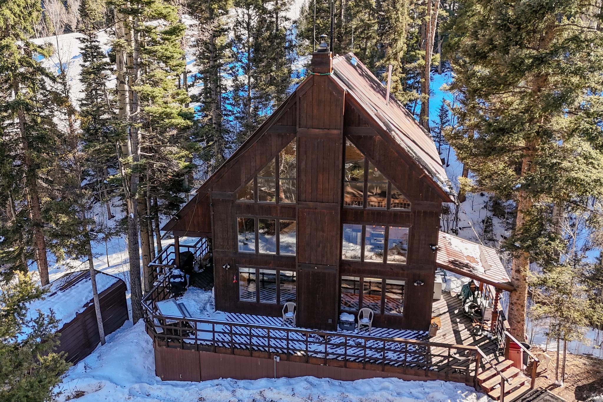 Peaceful Mountain Chalet with Stunning Views and Privacy – Tucked away along a former ski trail, this enchanting mountain chalet offers an idyllic blend of natural beauty, seclusion, and comfort. Surrounded by towering aspens and a year-round stream, the setting is peaceful and inspiring—perfect for nature lovers or creatives seeking tranquility and light. At nearly 2000 sq ft, this spacious home features a dramatic great room with a soaring 35-foot cathedral ceiling and is bathed in natural light thanks to three levels of north-facing picture windows—ideal for artists or anyone who appreciates breathtaking views. The home includes two comfortable bedrooms on the main level, while the entire second floor is dedicated to a massive primary suite with its own private deck and generous closet space, including attic storage and a garage-style storage area. Enjoy the outdoors from multiple deck areas—perfect for entertaining, relaxing, or stargazing. The home is heated with a highly efficient wood-burning stove, supplemented by a propane tank providing hot water and year-round heating. There is ample storage throughout. Seasonal Access Note: Winter access from December to April requires snowshoes or a snowmobile for the final ¼ mile, offering a true retreat experience for those seeking mountain solitude. Whether you're looking for a peaceful getaway, a full-time residence, or an inspiring artist’s haven, this unique property delivers on all fronts. The lodge is being sold fully furnished and turn-key—ready for a family to enjoy immediately or for a guide service or outfitter to begin using without delay. Utilities are minimal and simple to manage: electricity is billed through Endless Blue Resort, gas service is provided by Questa Propane, and internet is available through Starlink.