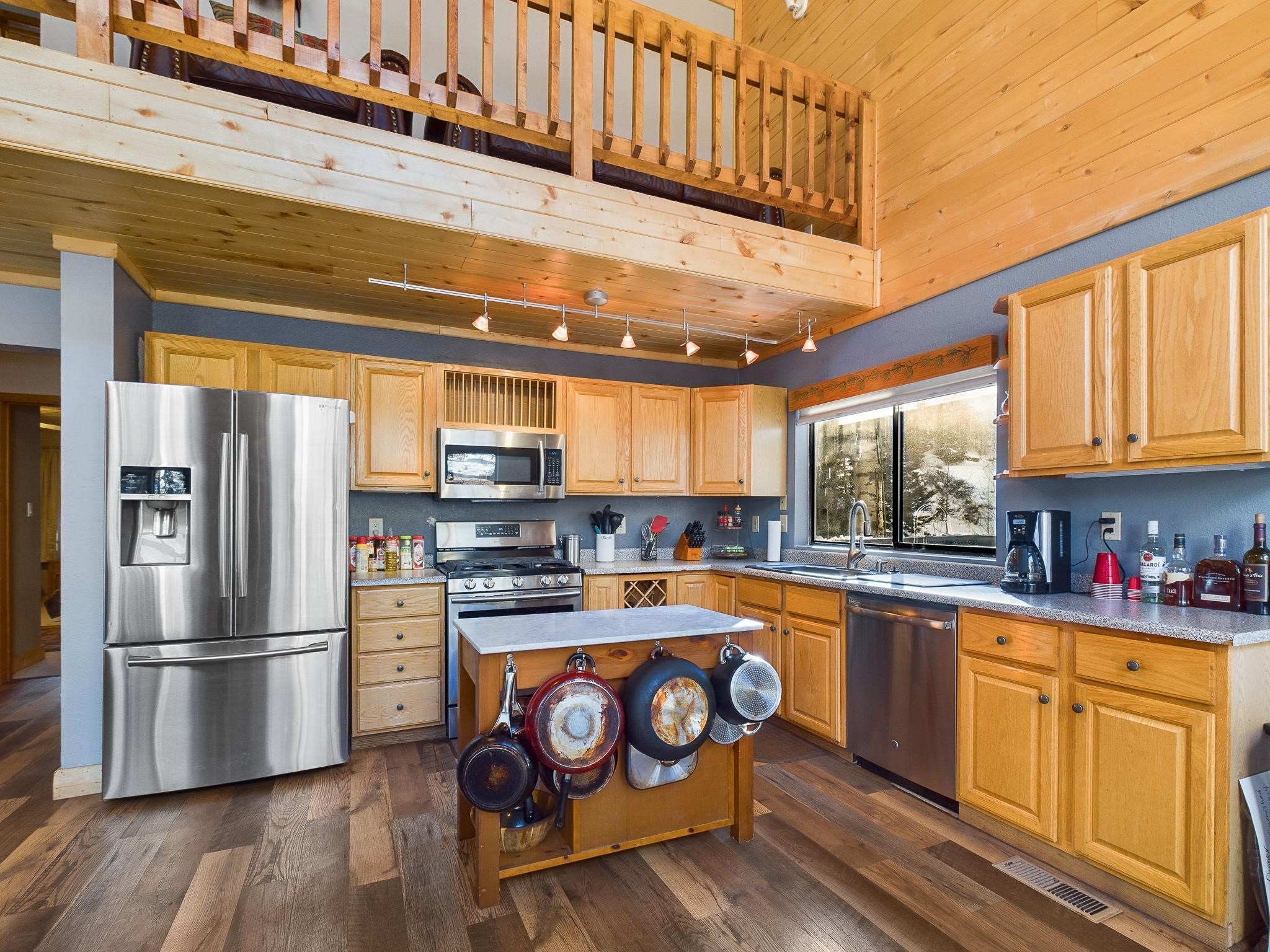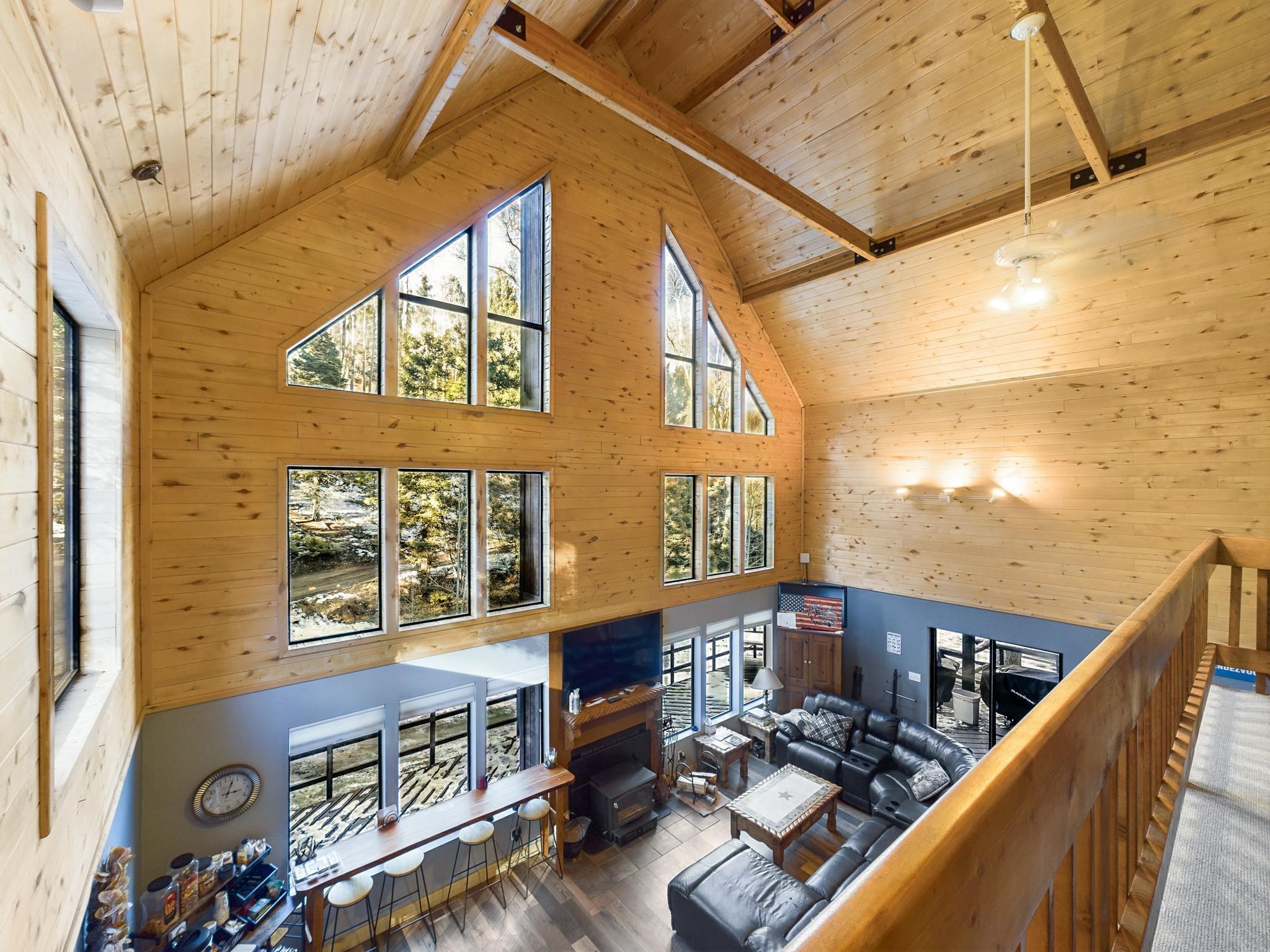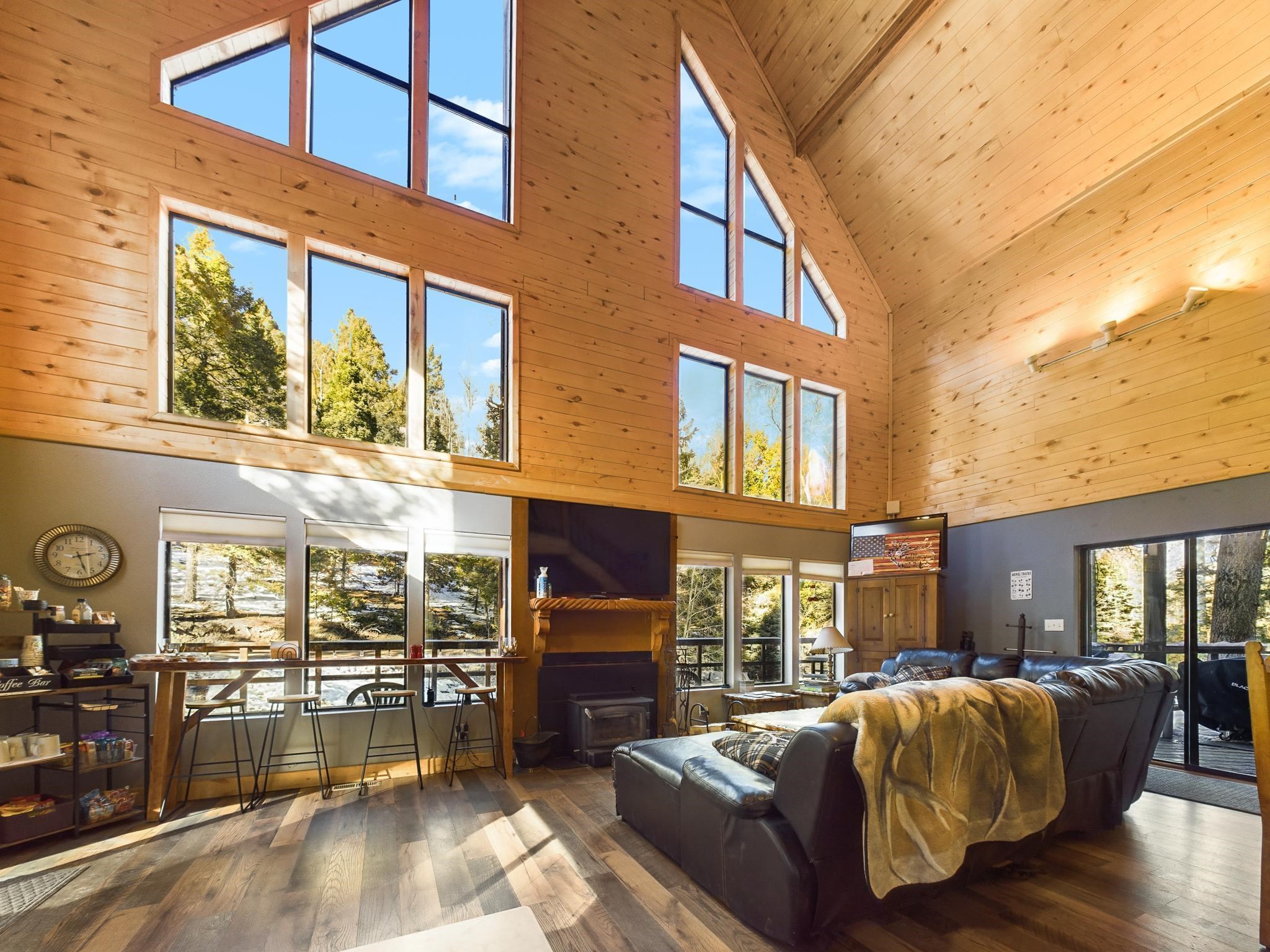 Peaceful Mountain Chalet with Stunning Views and Privacy – Tucked away along a former ski trail, this enchanting mountain chalet offers an idyllic blend of natural beauty, seclusion, and comfort. Surrounded by towering aspens and a year-round stream, the setting is peaceful and inspiring—perfect for nature lovers or creatives seeking tranquility and light. At nearly 2000 sq ft, this spacious home features a dramatic great room with a soaring 35-foot cathedral ceiling and is bathed in natural light thanks to three levels of north-facing picture windows—ideal for artists or anyone who appreciates breathtaking views. The home includes two comfortable bedrooms on the main level, while the entire second floor is dedicated to a massive primary suite with its own private deck and generous closet space, including attic storage and a garage-style storage area. Enjoy the outdoors from multiple deck areas—perfect for entertaining, relaxing, or stargazing. The home is heated with a highly efficient wood-burning stove, supplemented by a propane tank providing hot water and year-round heating. There is ample storage throughout. Seasonal Access Note: Winter access from December to April requires snowshoes or a snowmobile for the final ¼ mile, offering a true retreat experience for those seeking mountain solitude. Whether you're looking for a peaceful getaway, a full-time residence, or an inspiring artist’s haven, this unique property delivers on all fronts. The lodge is being sold fully furnished and turn-key—ready for a family to enjoy immediately or for a guide service or outfitter to begin using without delay. Utilities are minimal and simple to manage: electricity is billed through Endless Blue Resort, gas service is provided by Questa Propane, and internet is available through Starlink.