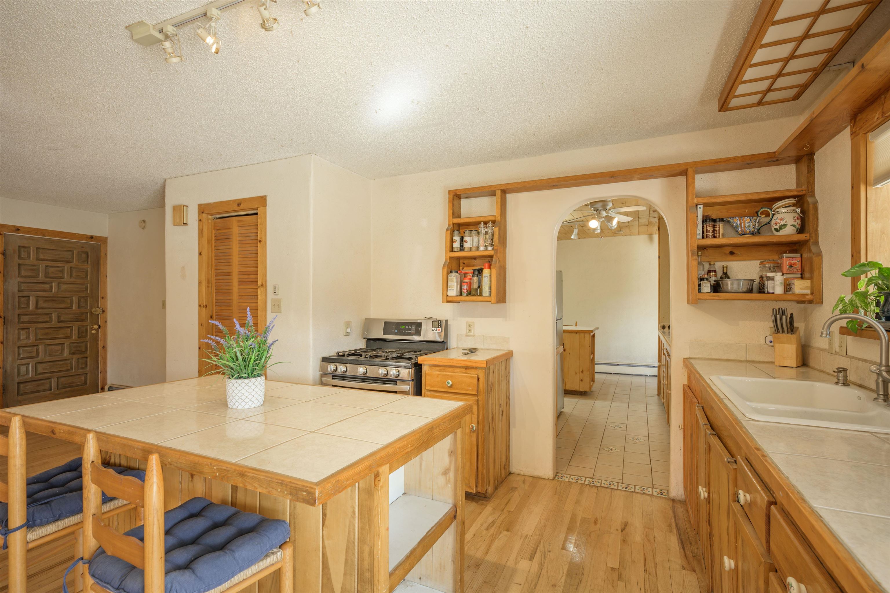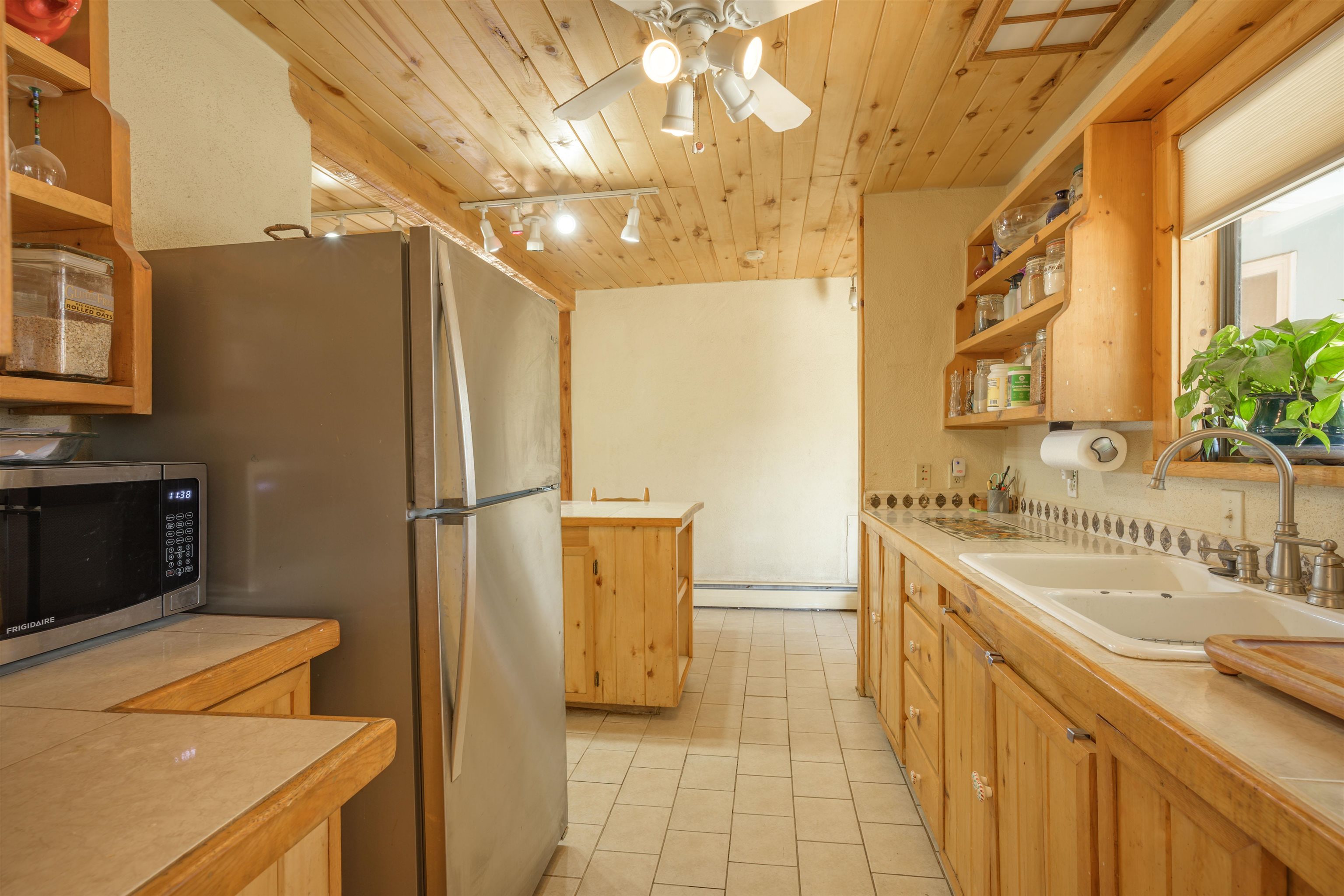 711 Cavalry Court, Taos, NM Spacious & Convenient Centrally located in town, this 4-bedroom, 3-bathroom home on a quiet cul-de-sac, offers 2,163 sq. ft. of versatile living space on a .31-acre lot with a spacious fenced yard and mountain views. This home has so many possibilities! With an open and functional layout, this home provides plenty of room for families, or business/home arrangements, perfect for elderly parents, grown siblings, or for attorneys, masseurs, work-from-home professions, etc., with both office space and comfortable living space. This home was originally designed as a duplex and could even be converted back easily, giving an investor the opportunity to have two rental incomes or flexibility as your family's needs change.  The main living area features a wood-burning stove, and an open-concept flow connecting the living, dining, and kitchen areas. A sliding glass door leads from the dining area to a covered back patio, perfect for outdoor entertaining or enjoying the peaceful backyard setting.  The kitchen setup is unique—divided into two connected spaces. The primary kitchen, part of the open living area, includes a gas stove, double sink, island with breakfast bar, and ample storage. Through an arched doorway, a second kitchen space offers additional functionality with a second double sink, another island with breakfast bar, refrigerator, microwave, pantry closets, and even more storage. This layout provides flexibility for cooking, entertaining, or multi-generational living.  A second living space is adjacent to the second kitchen and includes a sliding glass door leading to a covered side patio with built-in bench seating. A full bathroom is conveniently located off this space, adding even more functionality.  The primary bedroom features an ensuite bathroom and access to a large enclosed sunroom, offering extra space to relax or personalize to suit your needs.  The fenced backyard is spacious, with plenty of room for gardening, play, or simply enjoying the outdoors. From the yard, you'll also appreciate beautiful mountain views, adding to the home's appeal.  With a convenient in-town location and a layout that offers both openness and flexibility, this home is a great opportunity to create a space that fits your lifestyle!