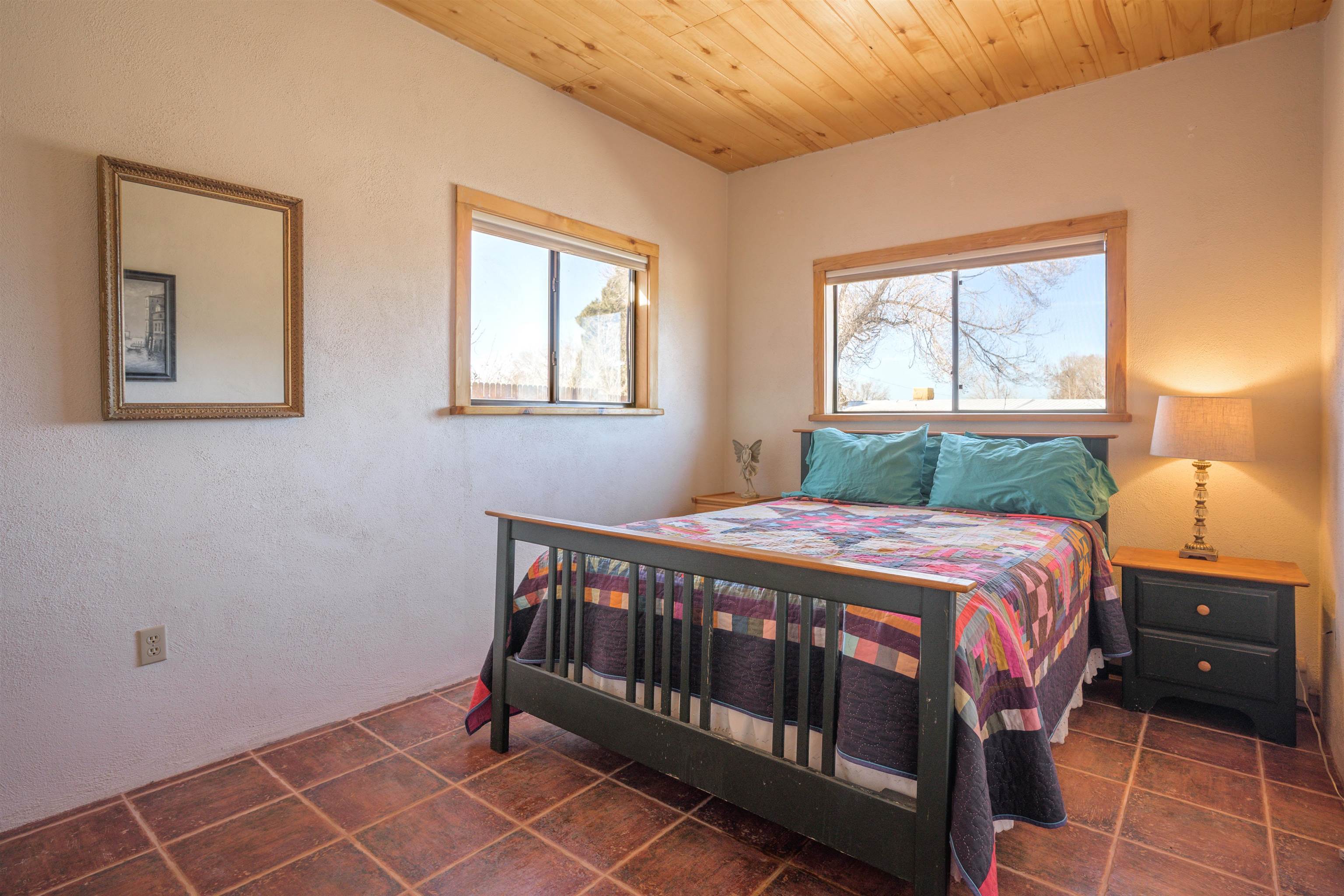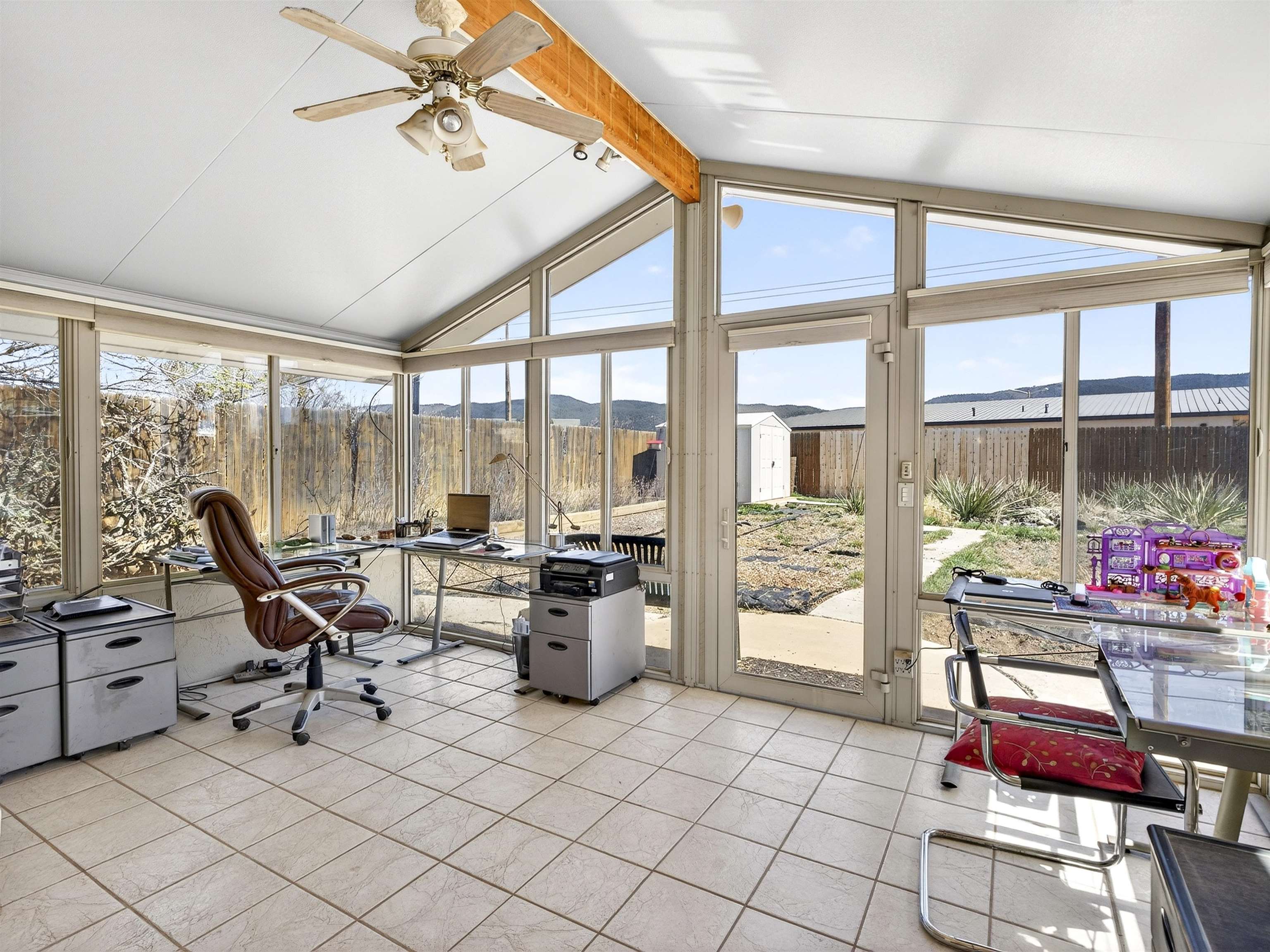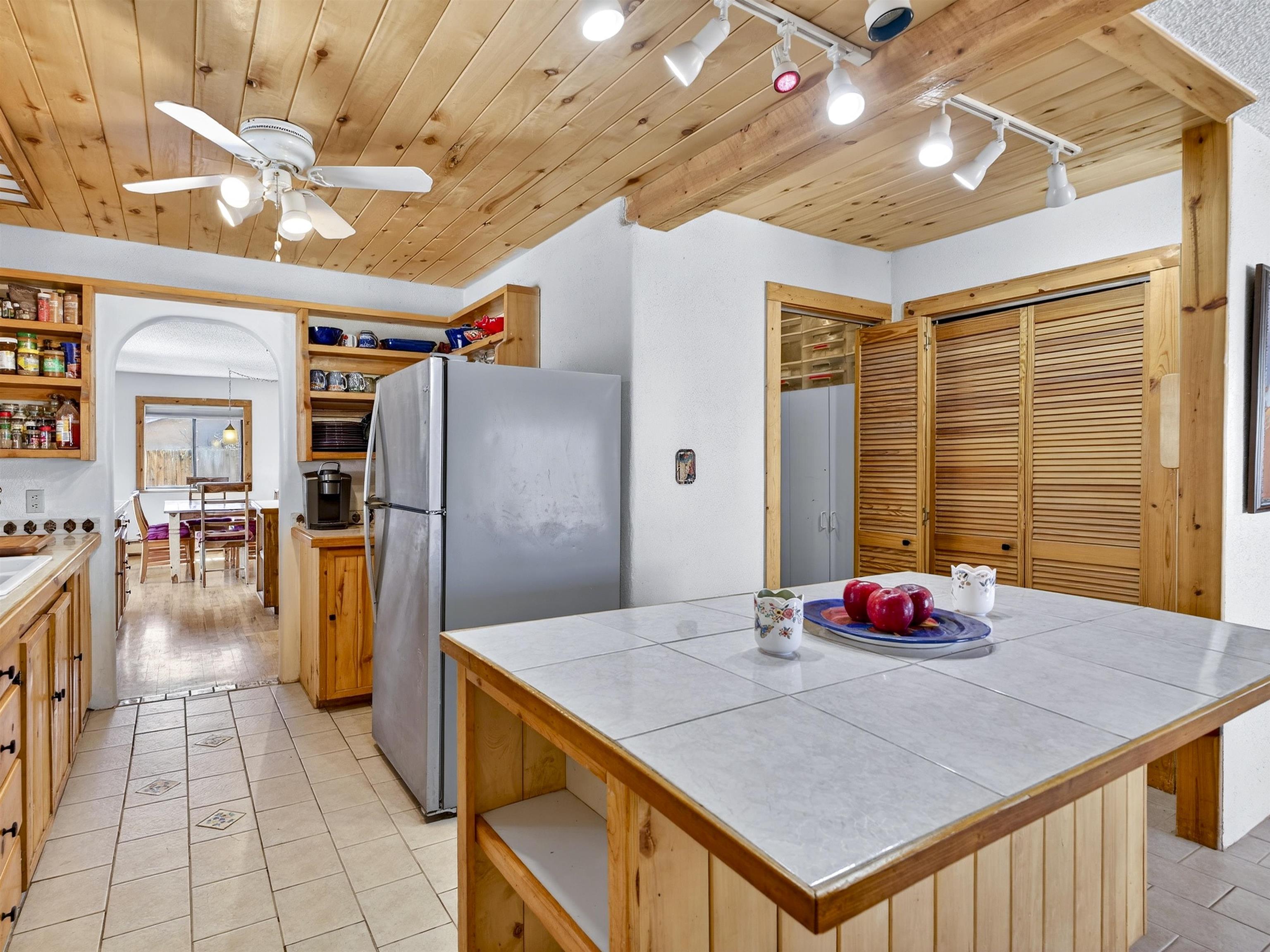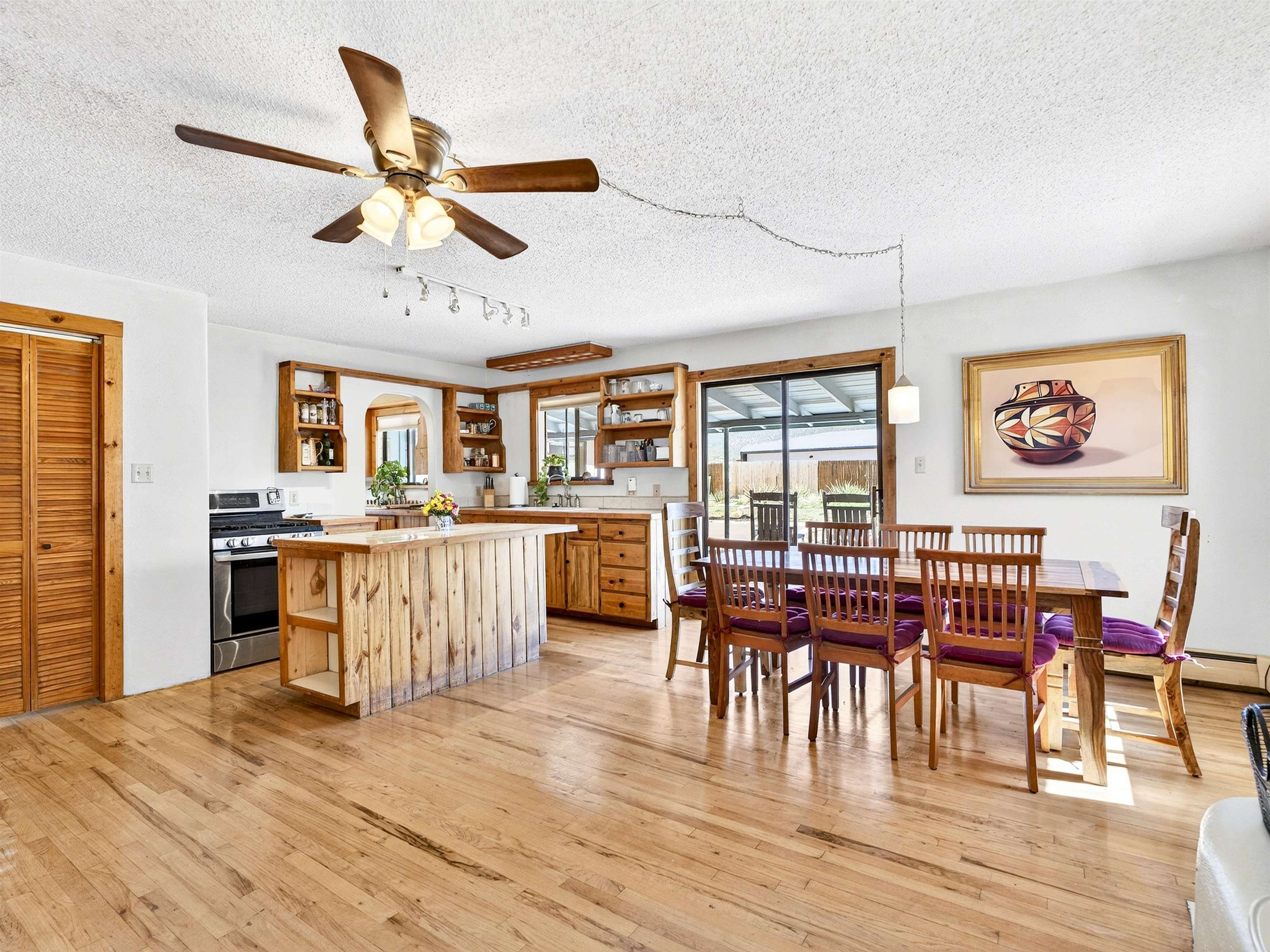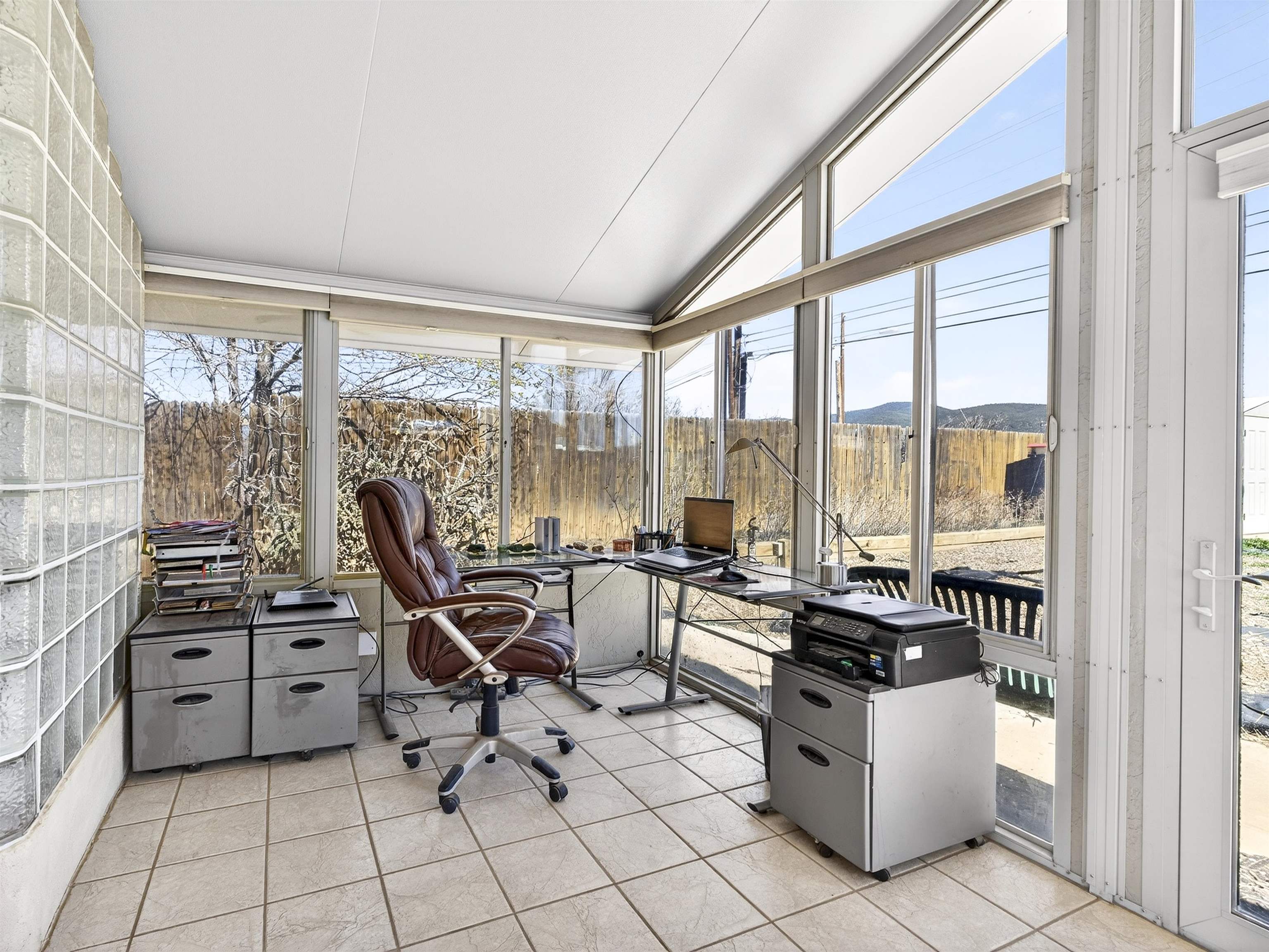 711 Cavalry Court, Taos, NM Centrally located on a quiet .31-acre cul-de-sac lot, this 4-bedroom, 3-bathroom home offers 2,163 sq. ft. of versatile living space with mountain views and a spacious fenced yard. Originally designed as a duplex, the functional layout provides excellent flexibility for multi-generational living, work-from-home professions, or a simple conversion back to a dual-rental investment. The main living area features a wood-burning stove and an open-concept flow between the living, dining, and kitchen areas. The unique kitchen setup is divided into two connected spaces, both featuring islands with breakfast bars, double sinks, and ample storage. Additional features include a primary suite with an ensuite bathroom and large enclosed sunroom, a second living area with a full bathroom nearby, and covered patios perfect for outdoor entertaining.