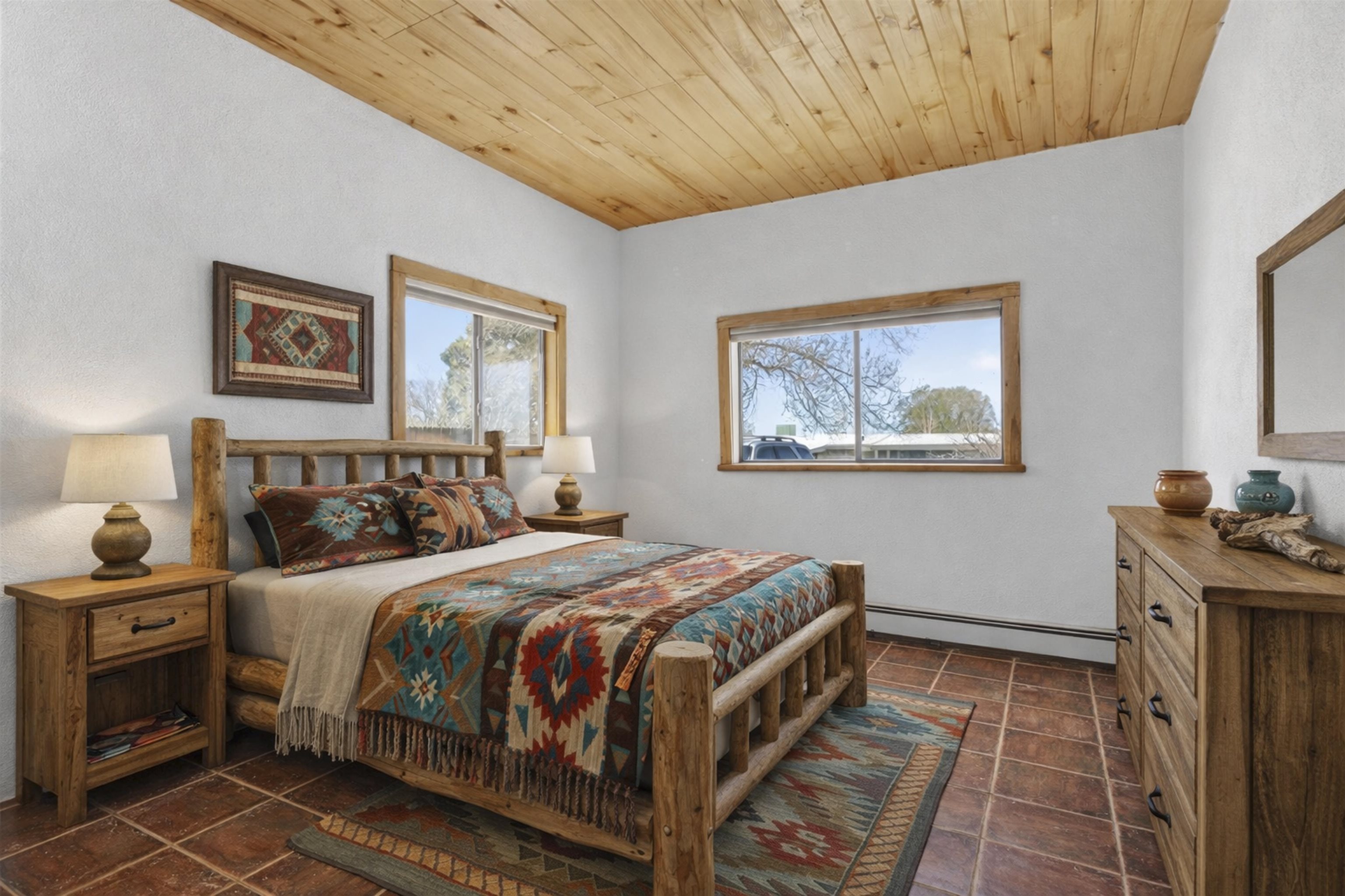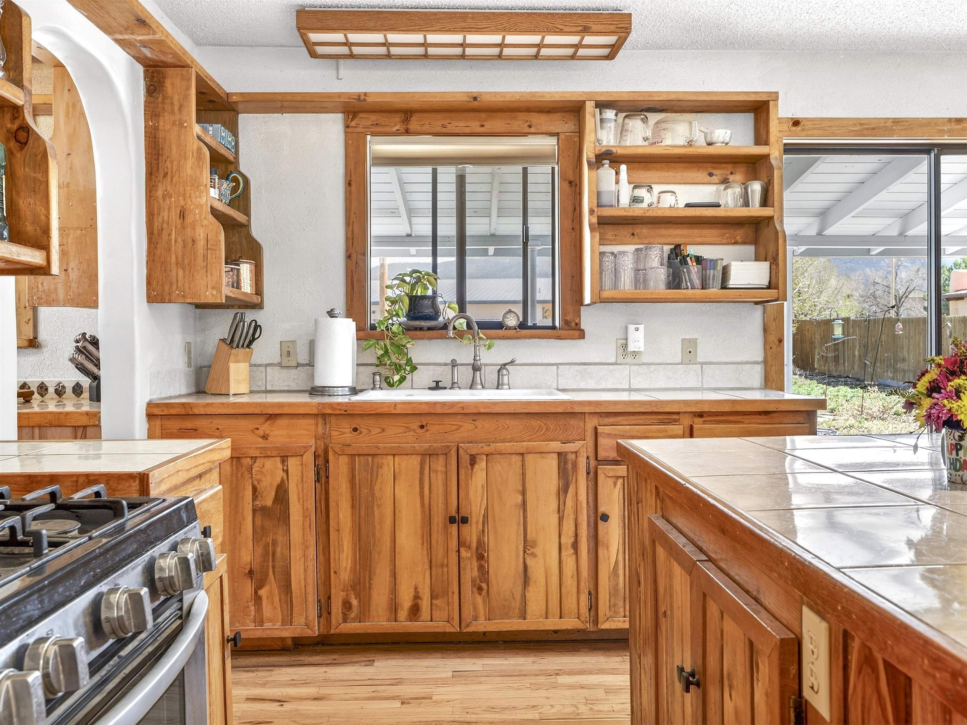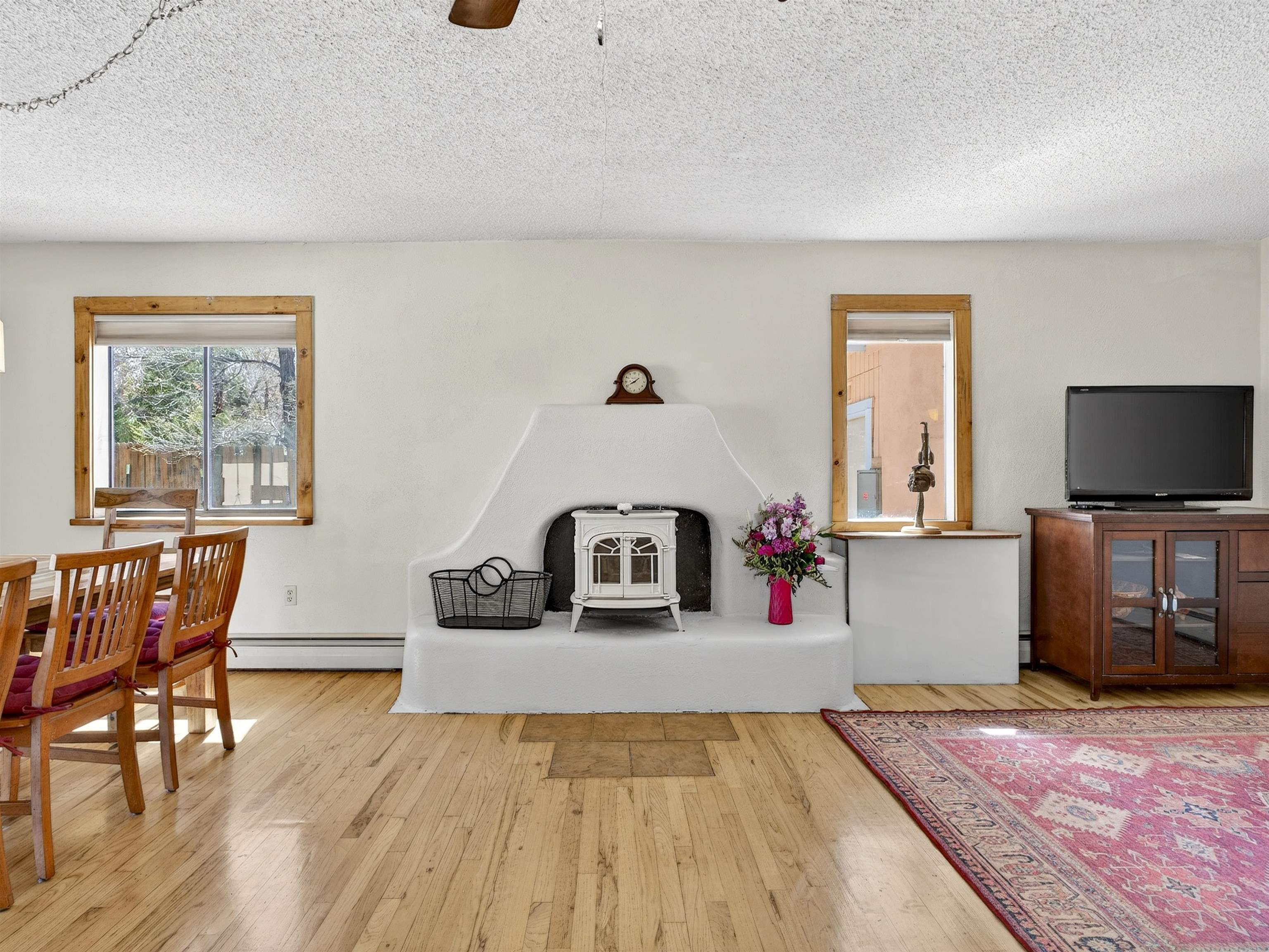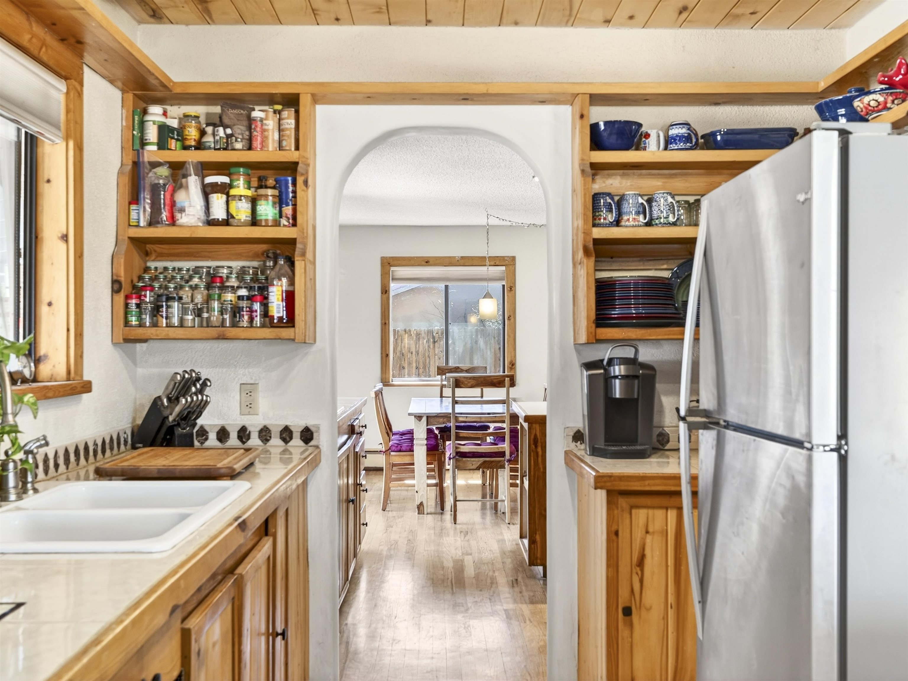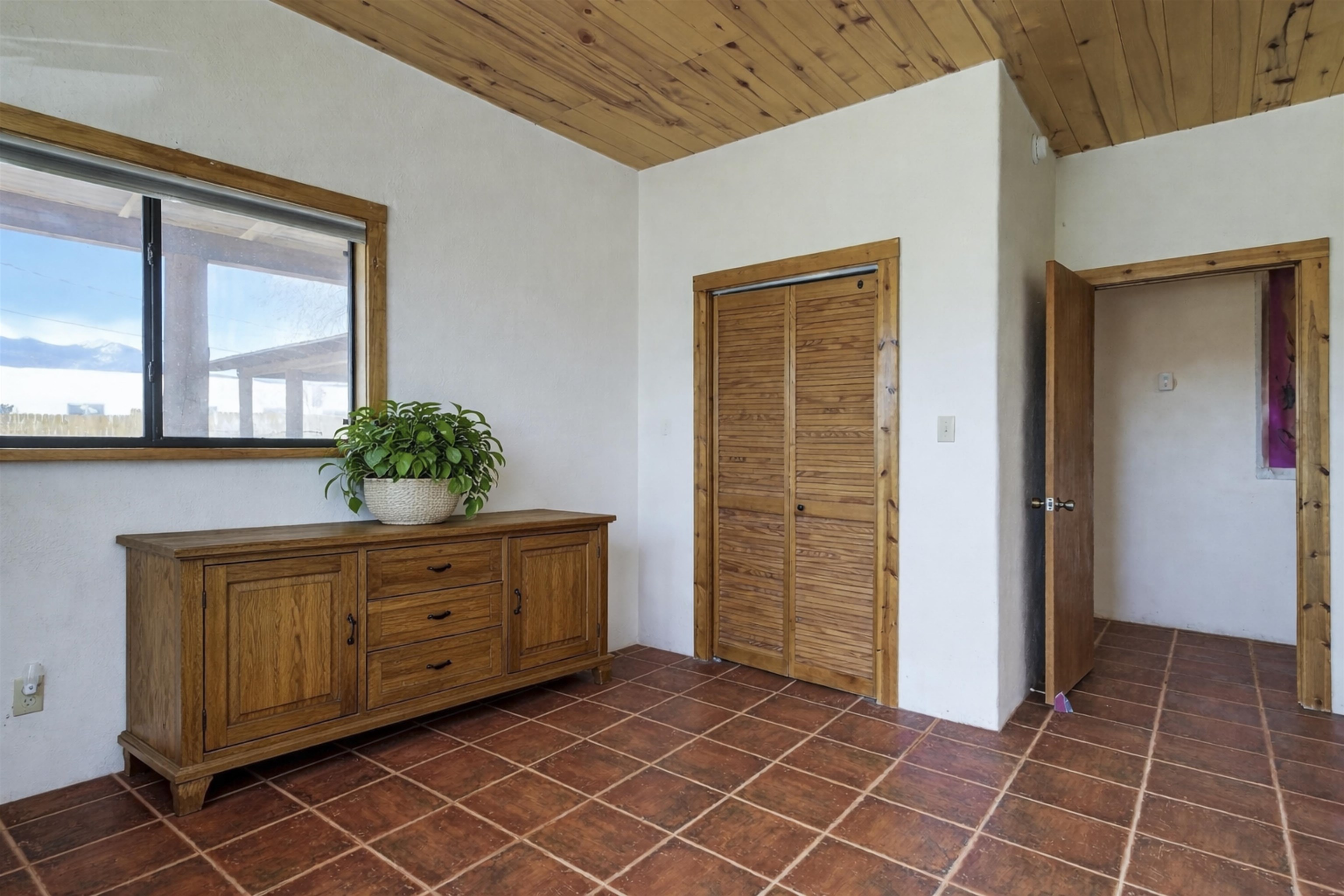 711 Cavalry Court, Taos, NM Centrally located on a quiet .31-acre cul-de-sac lot, this 4-bedroom, 3-bathroom home offers 2,163 sq. ft. of versatile living space with mountain views and a spacious fenced yard. Originally designed as a duplex, the functional layout provides excellent flexibility for multi-generational living, work-from-home professions, or a simple conversion back to a dual-rental investment. The main living area features a wood-burning stove and an open-concept flow between the living, dining, and kitchen areas. The unique kitchen setup is divided into two connected spaces, both featuring islands with breakfast bars, double sinks, and ample storage. Additional features include a primary suite with an ensuite bathroom and large enclosed sunroom, a second living area with a full bathroom nearby, and covered patios perfect for outdoor entertaining.