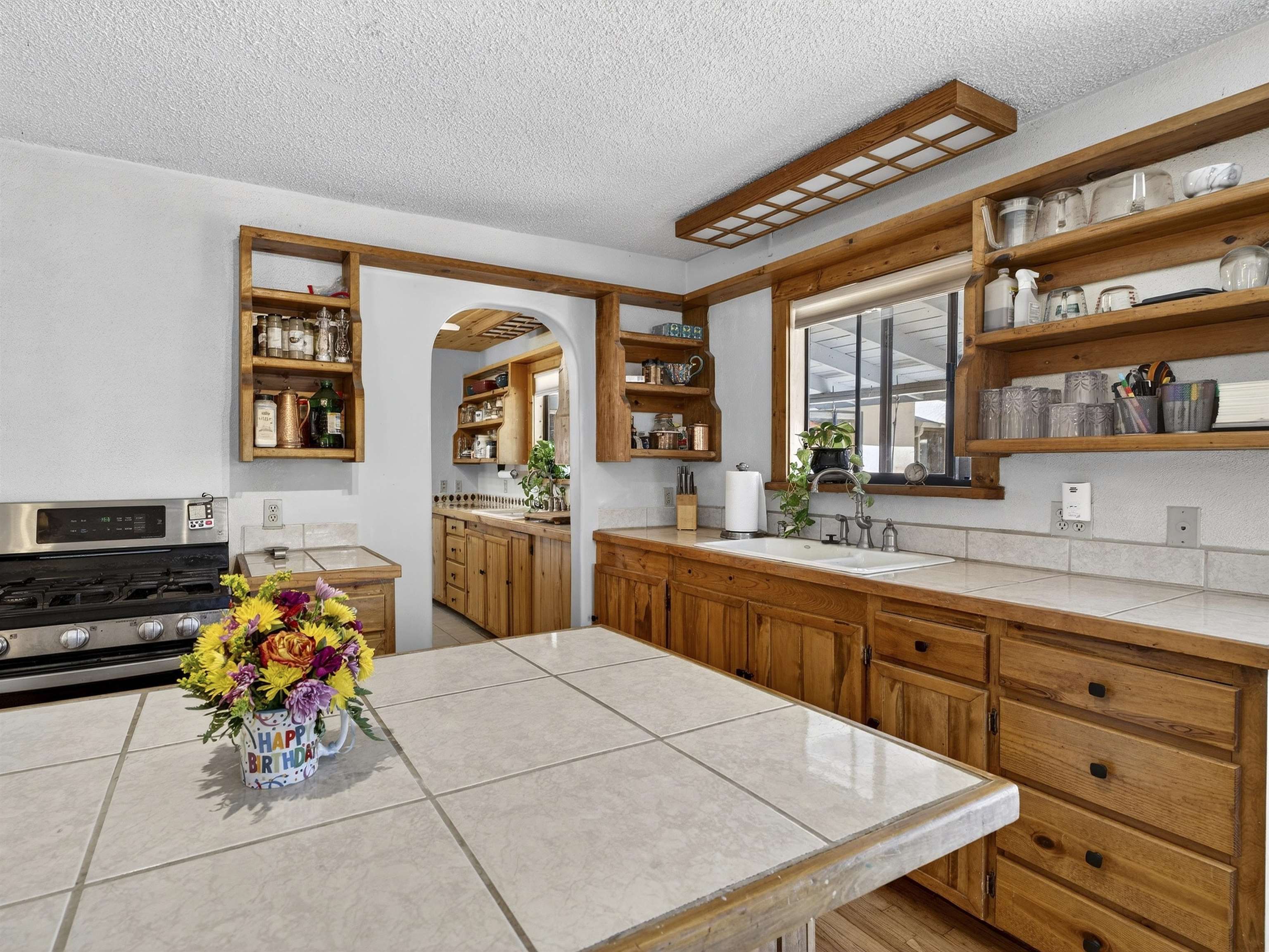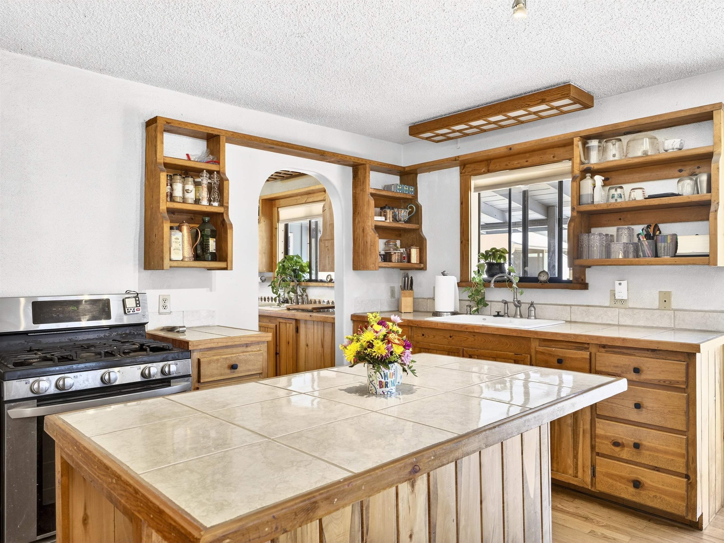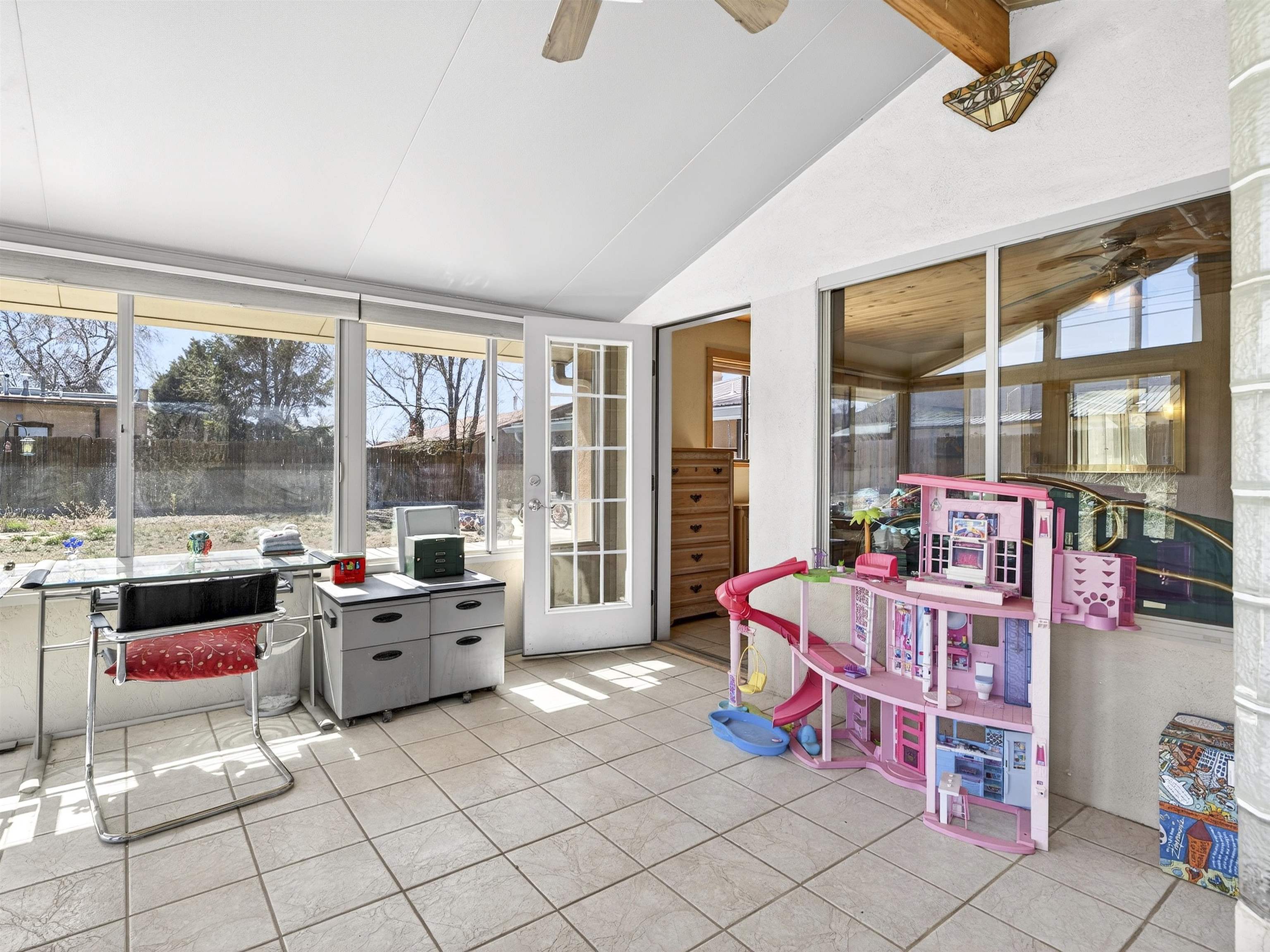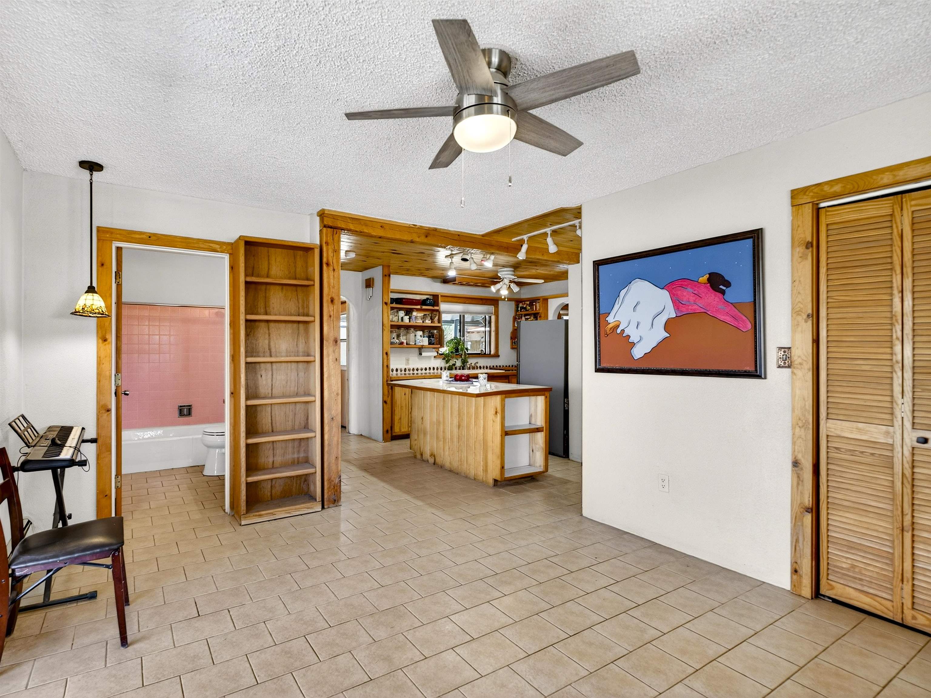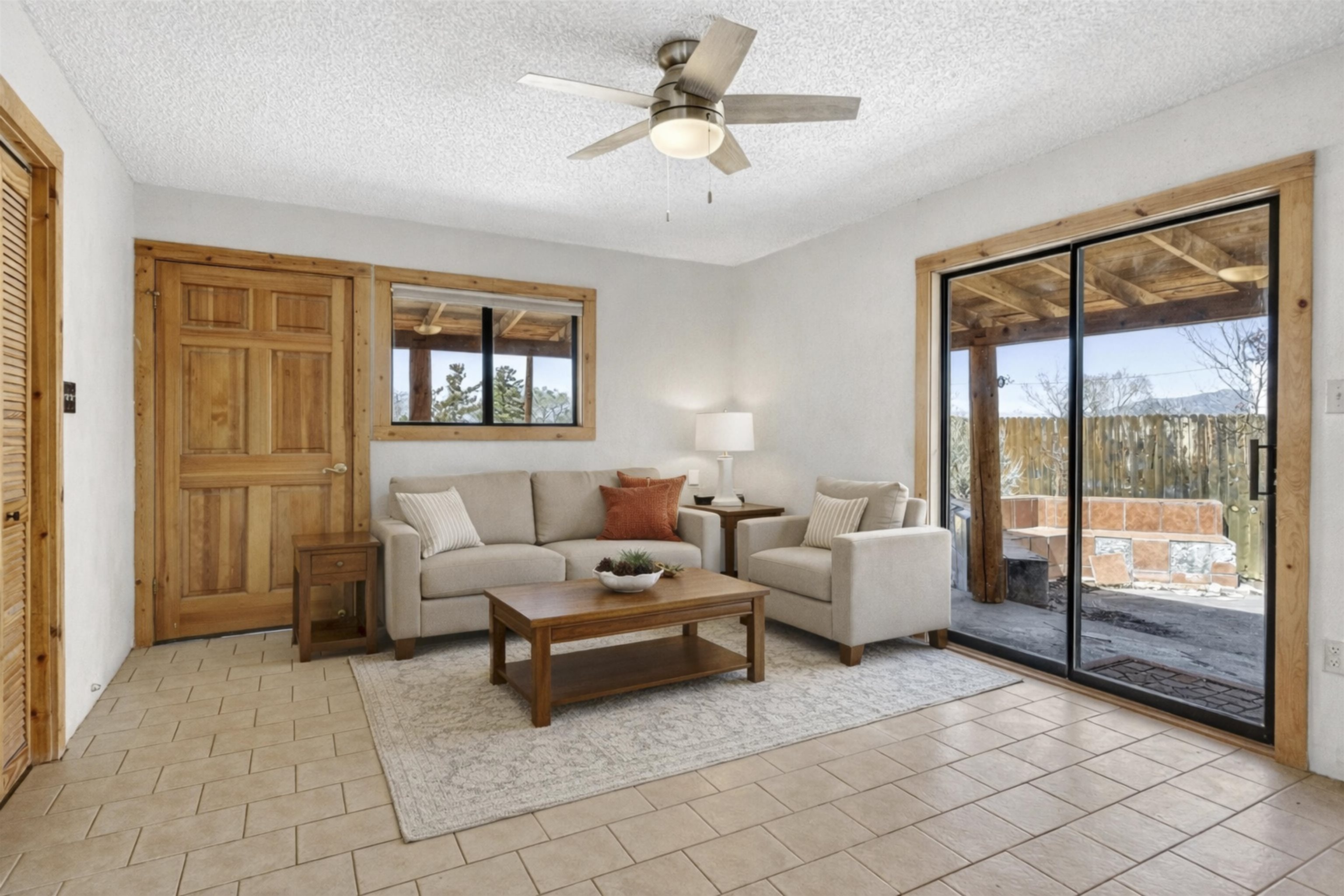 711 Cavalry Court, Taos, NM Centrally located on a quiet .31-acre cul-de-sac lot, this 4-bedroom, 3-bathroom home offers 2,163 sq. ft. of versatile living space with mountain views and a spacious fenced yard. Originally designed as a duplex, the functional layout provides excellent flexibility for multi-generational living, work-from-home professions, or a simple conversion back to a dual-rental investment. The main living area features a wood-burning stove and an open-concept flow between the living, dining, and kitchen areas. The unique kitchen setup is divided into two connected spaces, both featuring islands with breakfast bars, double sinks, and ample storage. Additional features include a primary suite with an ensuite bathroom and large enclosed sunroom, a second living area with a full bathroom nearby, and covered patios perfect for outdoor entertaining.