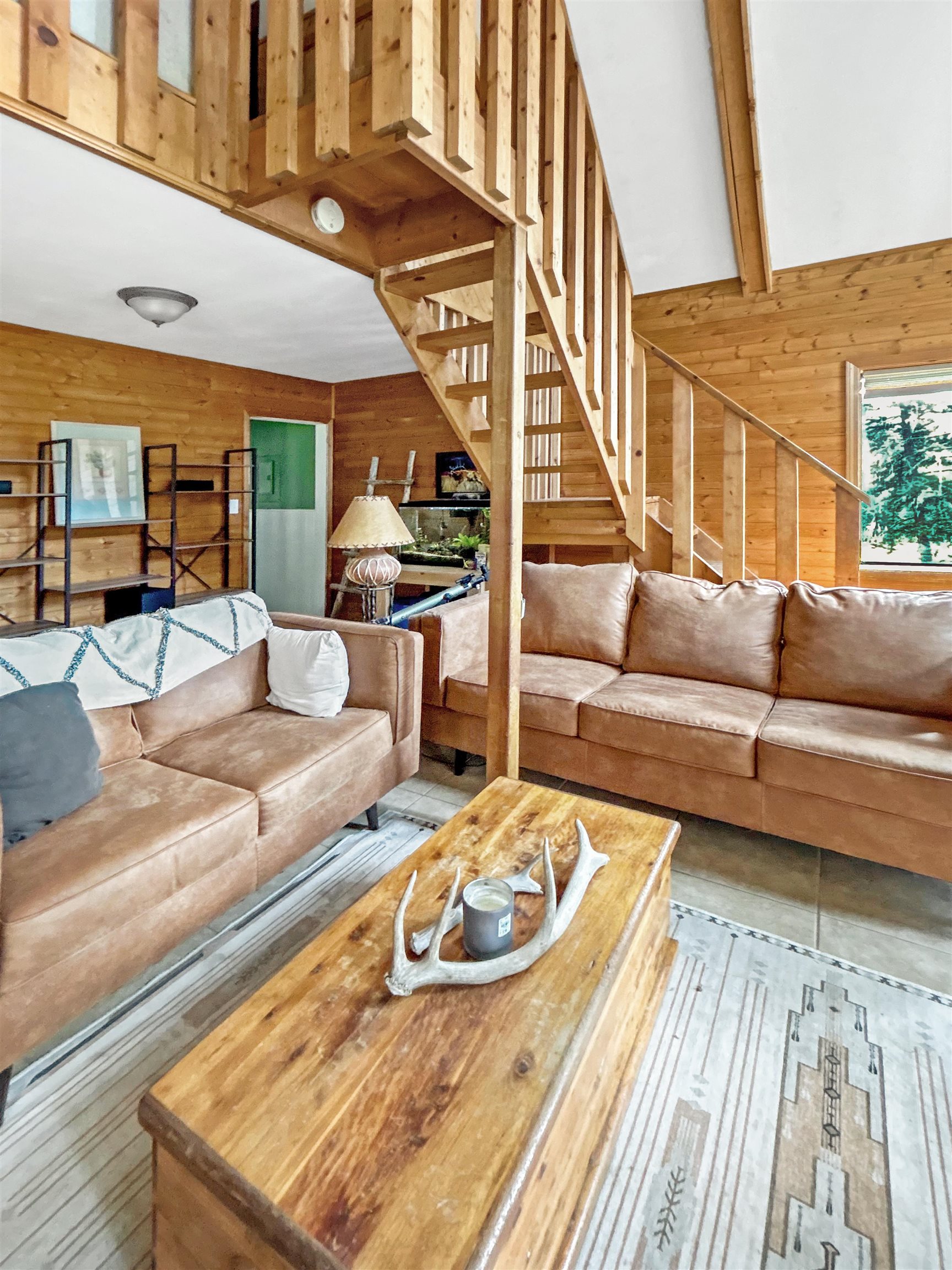 This exquisitely remodeled chalet-style cabin is the perfect mixture of rustic elegance and modern comfort. From the moment you enter, vaulted ceilings, exposed wood beams, and refined design elements create a sense of mountain sophistication. An oversized primary loft with a striking diamond-shaped moon window offers a dramatic architectural focal point, flooding the space with natural light and mountain views. Thoughtfully curated and fully furnished, this home is truly move-in ready. Entertain effortlessly on the expansive deck—ideal for outdoor dining and evening gatherings—or unwind in the generous, landscaped yard surrounded by serene natural beauty. A charming outdoor fire pit adds a cozy ambiance, perfect for star-filled nights in the crisp mountain air. Inside, modern comforts abound. The living area is equipped with built-in surround sound speakers, while the bathroom features a Bluetooth-enabled fan, allowing you to enjoy music throughout the home—every detail designed to enhance your mountain escape. Perfectly positioned just steps from Lady Slipper Trail and Monte Verde Lake, this property offers unmatched access to hiking, fishing, and outdoor adventure. With excellent potential for future expansion and strong appeal as a short-term rental or luxury getaway, this is a rare opportunity to own a truly special piece of Angel Fire. Check out the virtual walk-through! Please note: Listing broker is the property owner.