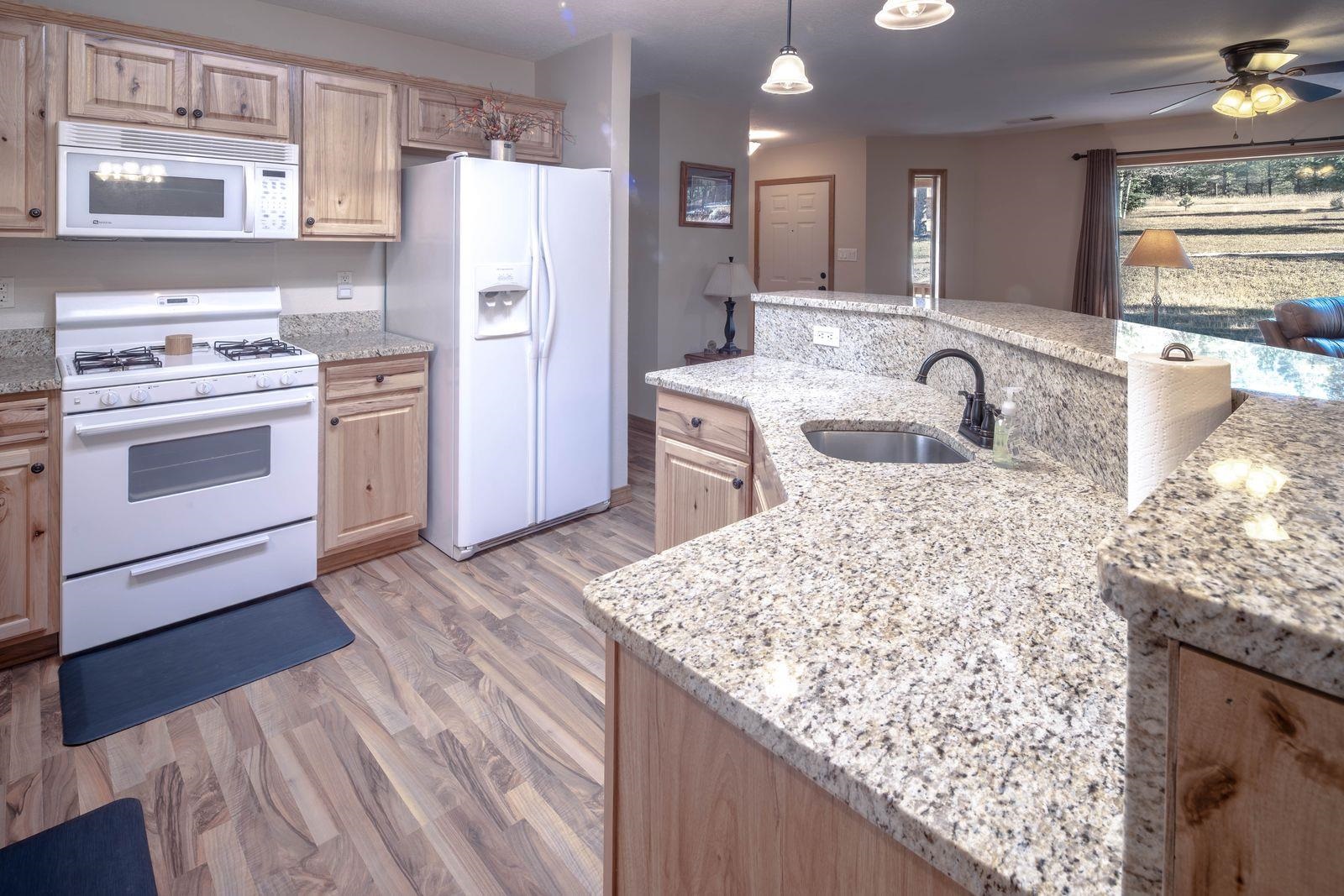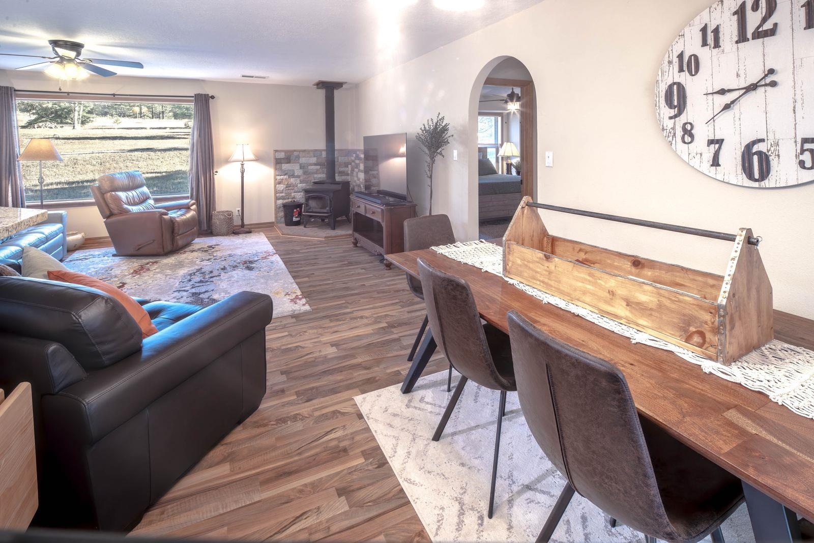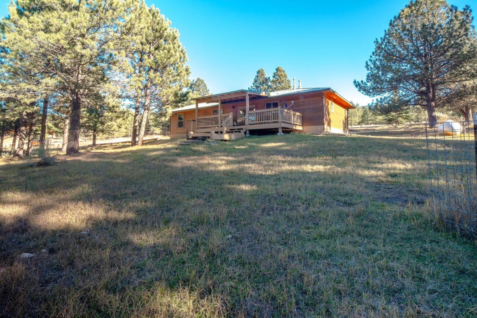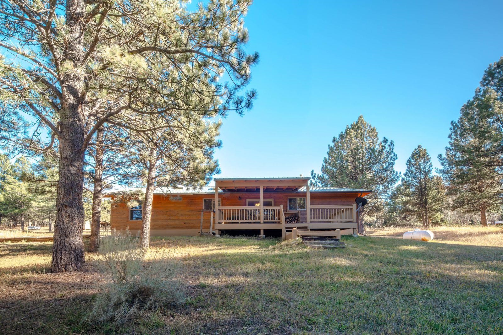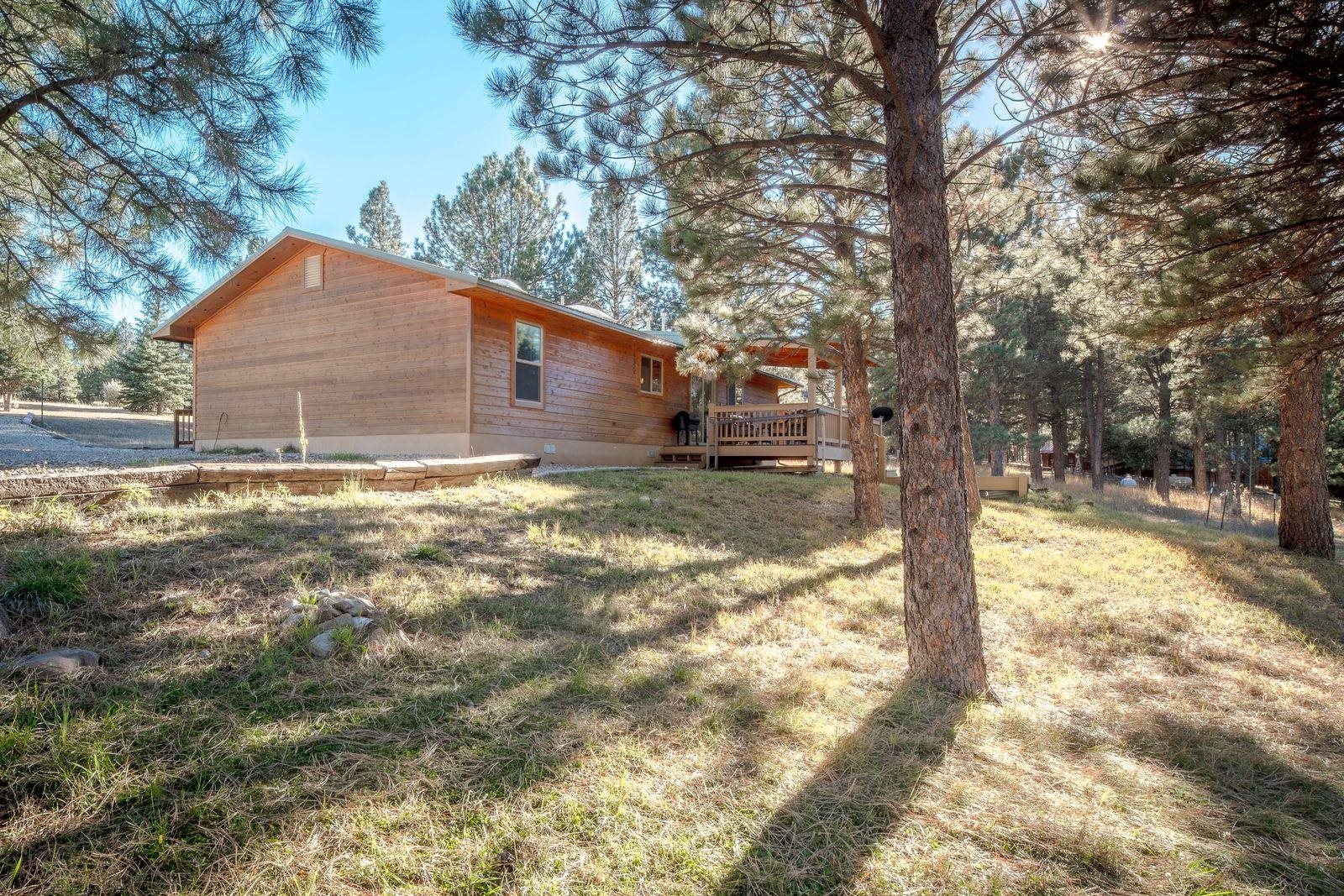 Welcome to this inviting, move-in-ready home that offers everything you’ve been looking for and more. Enjoy comfortable single-level living, easy year-round access, and the bonus of no HOA dues. This home has been extensively improved with a long list of thoughtful upgrades, including enhanced exterior drainage, and front rain gutters for added protection. The metal roof, refreshed lower stucco, and cedar siding with updated trim give the exterior a clean, durable finish. Inside, you’ll find insulated vinyl windows, modern laminate flooring in the kitchen and living areas, and clean carpet in the bedrooms. The interior has been completely refreshed and updated. Additional enhancements include a front walkway, large covered decks, a whole-home water filtration system, insulated crawlspace, and a wood-burning stove, adding efficiency and comfort throughout. The spacious lot provides ample opportunity to add a guest house, garage, and/or workshop. Located just outside Angel Fire Resort, this property offers fewer restrictions, no HOA fees, excellent rental potential, and the perfect place to call home. Don’t miss this move-in-ready mountain retreat!