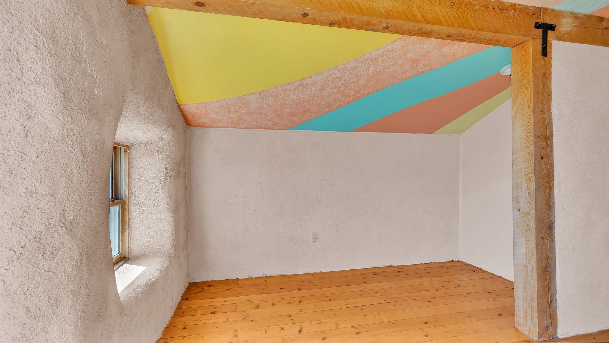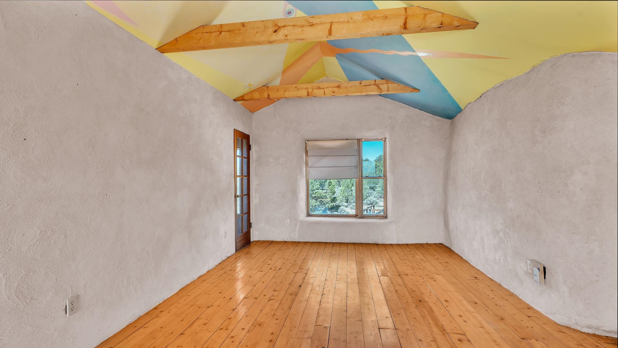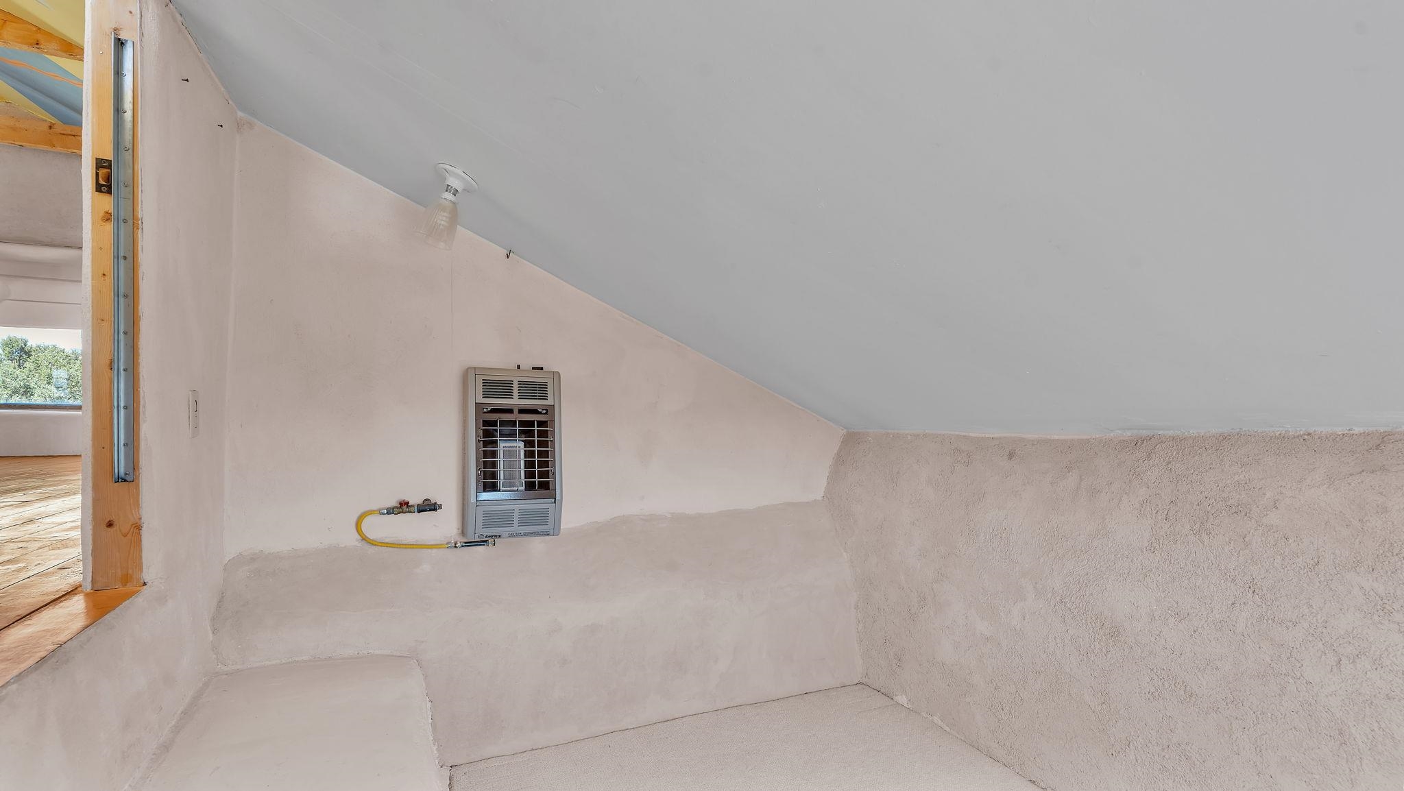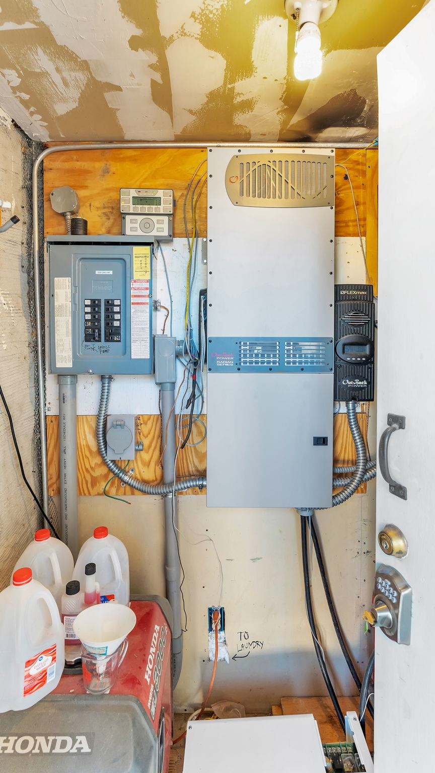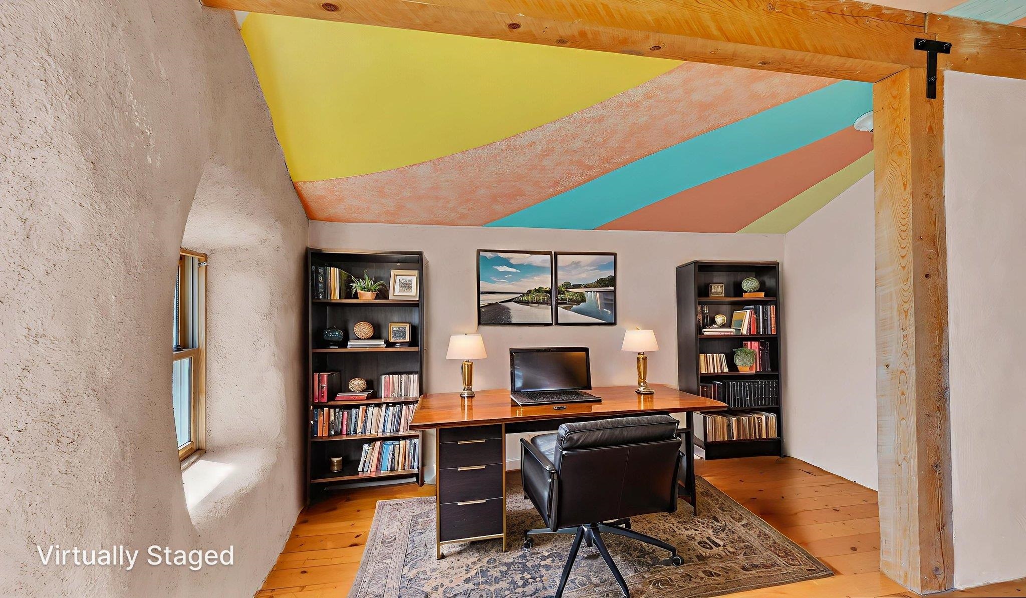 Extraordinary High Desert Property in Carson Near the Petaca ~ 77 North Road is an exceptional off-grid sanctuary in Carson, New Mexico close to the Rio Grande, Ojo Caliente, and minutes from the Petaca. This 2-story Territorial-style home sits on 20 private acres of mature piñon & juniper forest that offers unmatched tranquility. The home is powered by solar photovoltaics with brand new lithium batteries, and its very own private water Well. A rare find in this part of the world. Downstairs you have expansive South and East-facing windows that maximize passive solar warmth while also showcasing stunning views of Taos Mountain and the Sangre de Cristo Mountain Range. The open living-dining area boasts massive ceiling beams, flagstone, and tile floors with a stunning stair case that is art of its own. The kitchen includes a propane range, oven and refrigerator, with desirable wood cabinetry; a space the chef in the household will adore. The primary heat source comes from hot water in-floor heating, baseboards, and supplemental heat from a powerful wood-burning stove. Upstairs, the spacious primary bedroom features pine wood floors, a walk-in closet, and bonus meditation, office, or additional storage space. The half-bath upstairs includes a lovely clawfoot bathtub beside a window with the best views yet, and downstairs you'll find the shower. Walk outside under a covered portal beside the enclosed battery and generator room, and a detached laundry room. The front of the home features a low-walled lush courtyard with more exquisite views, and not far from the home you will find a 15' x 30' straw bale casita that can be transformed to whatever the heart desires. Wildlife, like elk, deer, and coyote, are your neighbors along with numerous bird species that perch up on the bush top daily. Internet is available via TaosNet. The home has been virtually staged to spark design creativity. This is your chance to own a magical 20 acre property in the New Mexico High Desert, don't miss it!