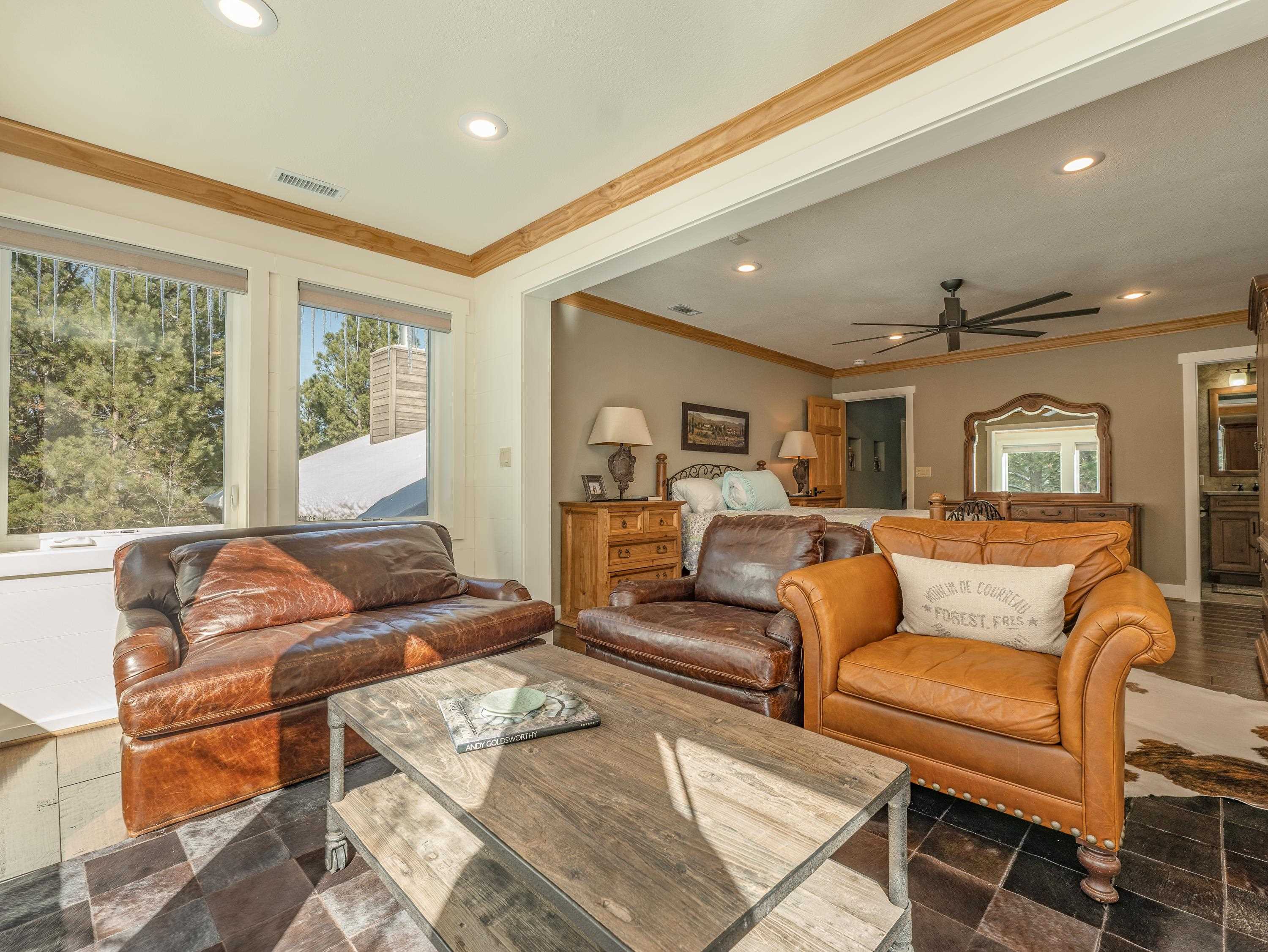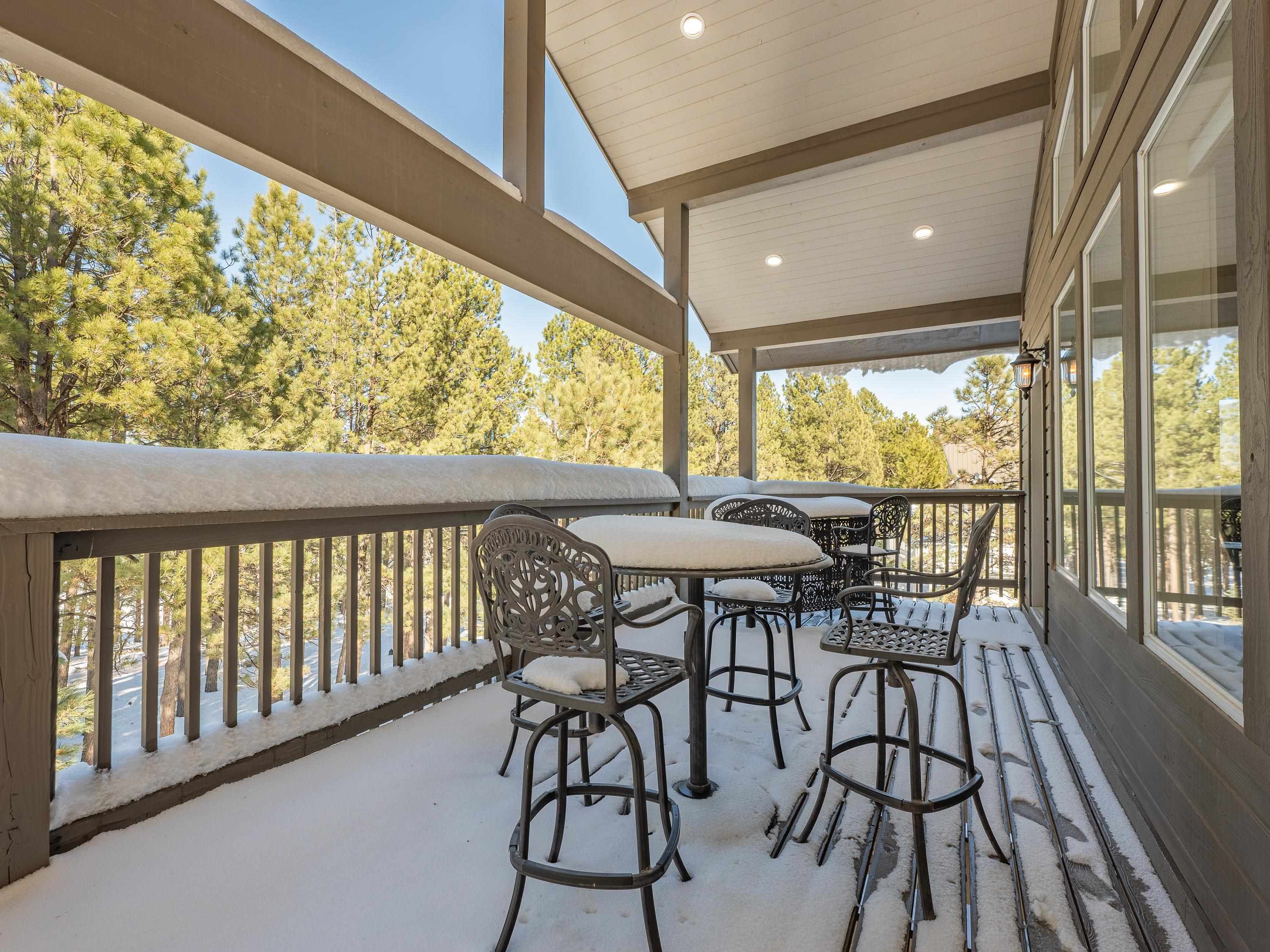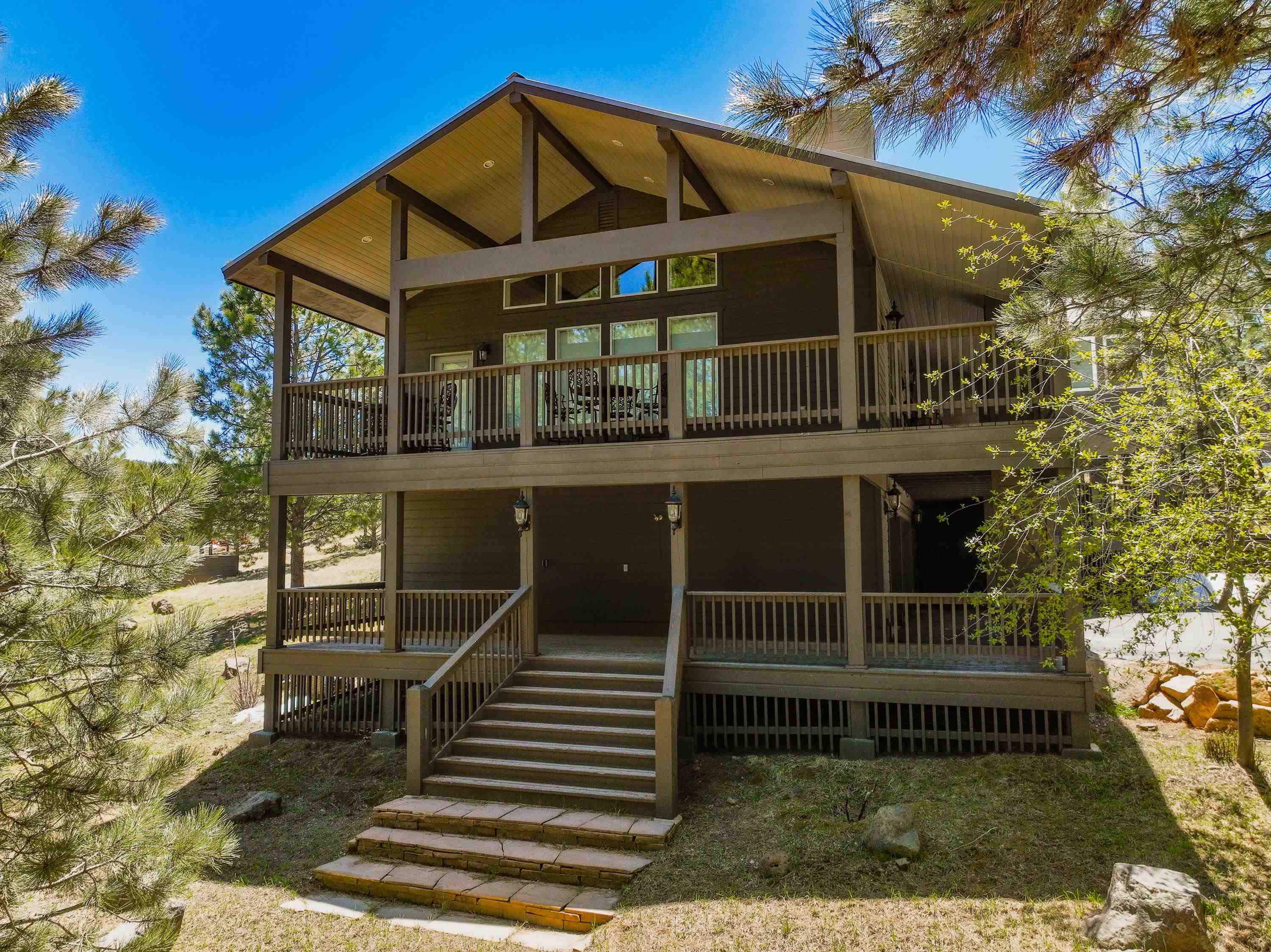 Nestled on an expansive 1.9-acre lot surrounded by whispering pines, this thoughtfully upgraded retreat is just minutes from the Angel Fire Resort Golf Course and Country Club, and a short drive to the ski slopes — offering the perfect year-round mountain escape. Inside, a welcoming great room features a striking window wall framing sunset views of Wheeler Peak and a cozy wood-burning fireplace — the ideal gathering spot after a day of adventure. The upgraded kitchen is generously sized, while the open dining area flows onto a covered deck, perfect for dining al fresco or unwinding under the stars. The spacious primary suite includes a sunny sitting area (or office), updated ensuite bath, and double closets. Two guest bedrooms offer comfort and privacy for family and friends — one with its own ensuite bath. A bonus living space, complete with its own fireplace, is perfect for watching the big game, hosting movie nights, or simply spreading out and relaxing. The attached three-car garage includes a dedicated golf cart bay, storage room, refrigerator, and a bonus bunk room — ideal for a kids’ hideaway, hobby space, or overflow guests. Whether you're entertaining or enjoying some much-deserved R&R, 79 Spyglass Hill Road is the perfect basecamp for mountain living at its finest. Sold fully furnished, decorated, and equipped. This is the home you will come to appreciate more every year due to the Seller's pride of ownership and updates including a new roof, new black-top driveway, remodeled kitchen and bathrooms and more.
