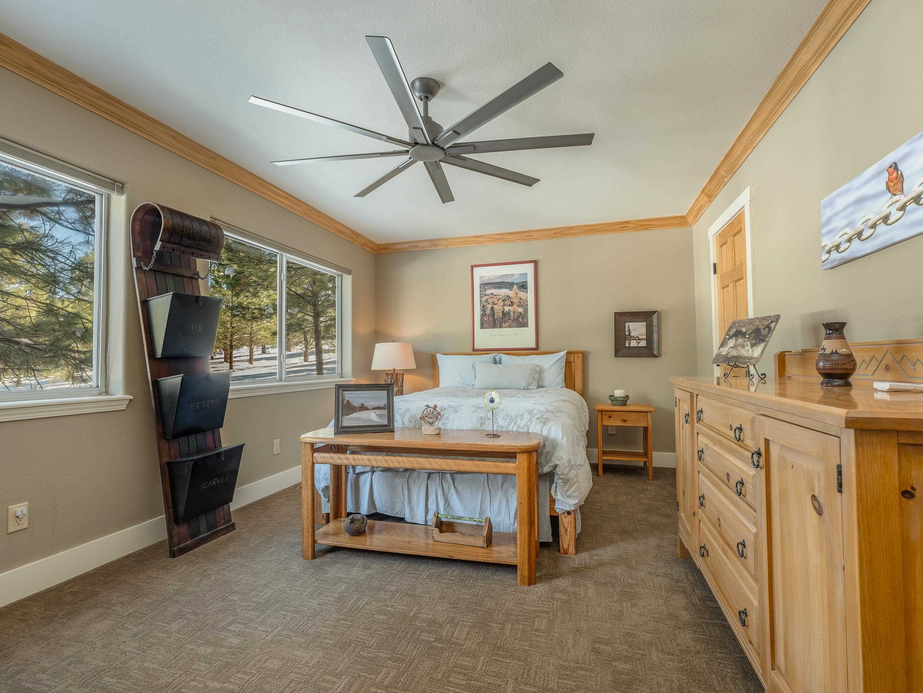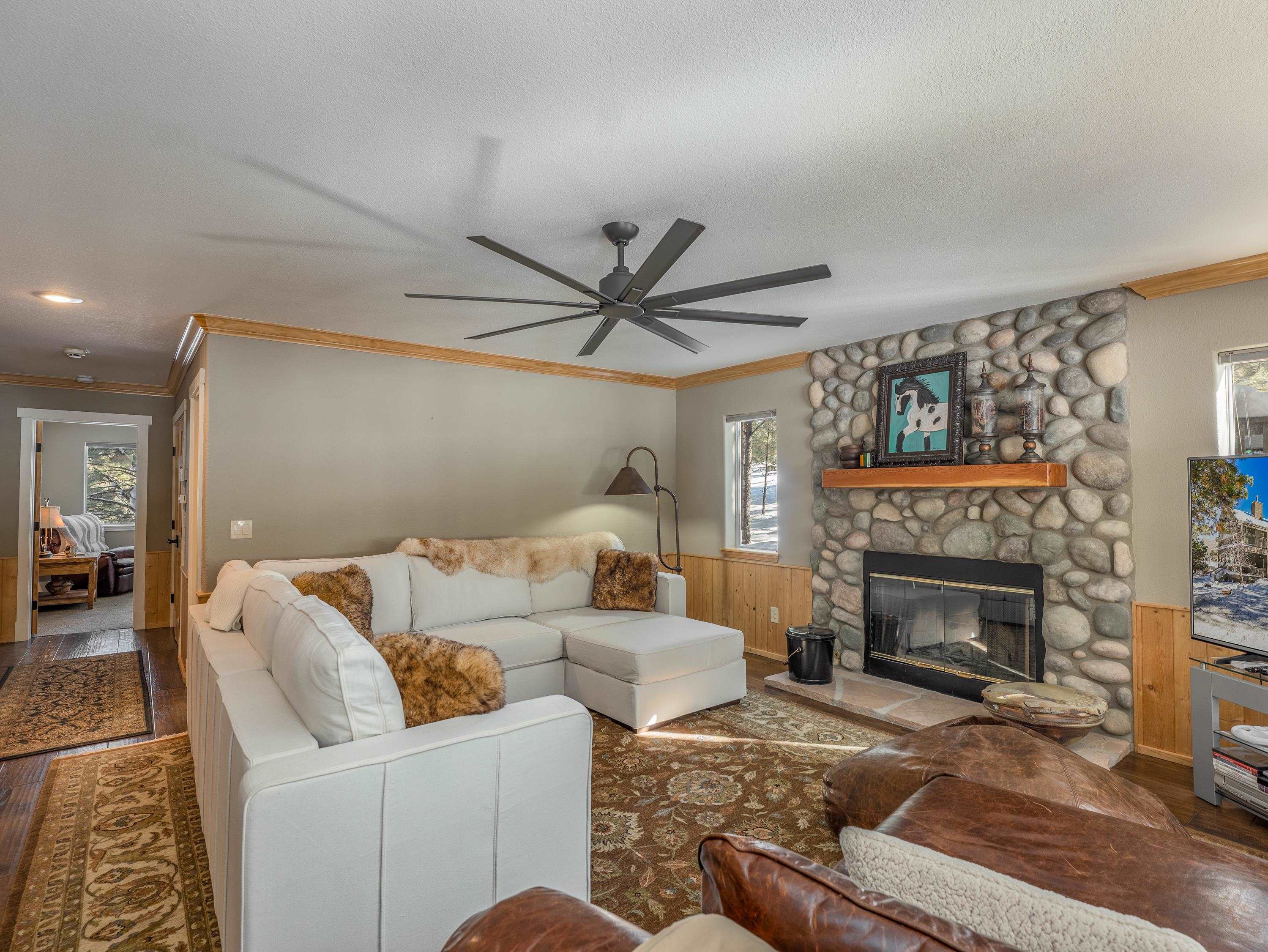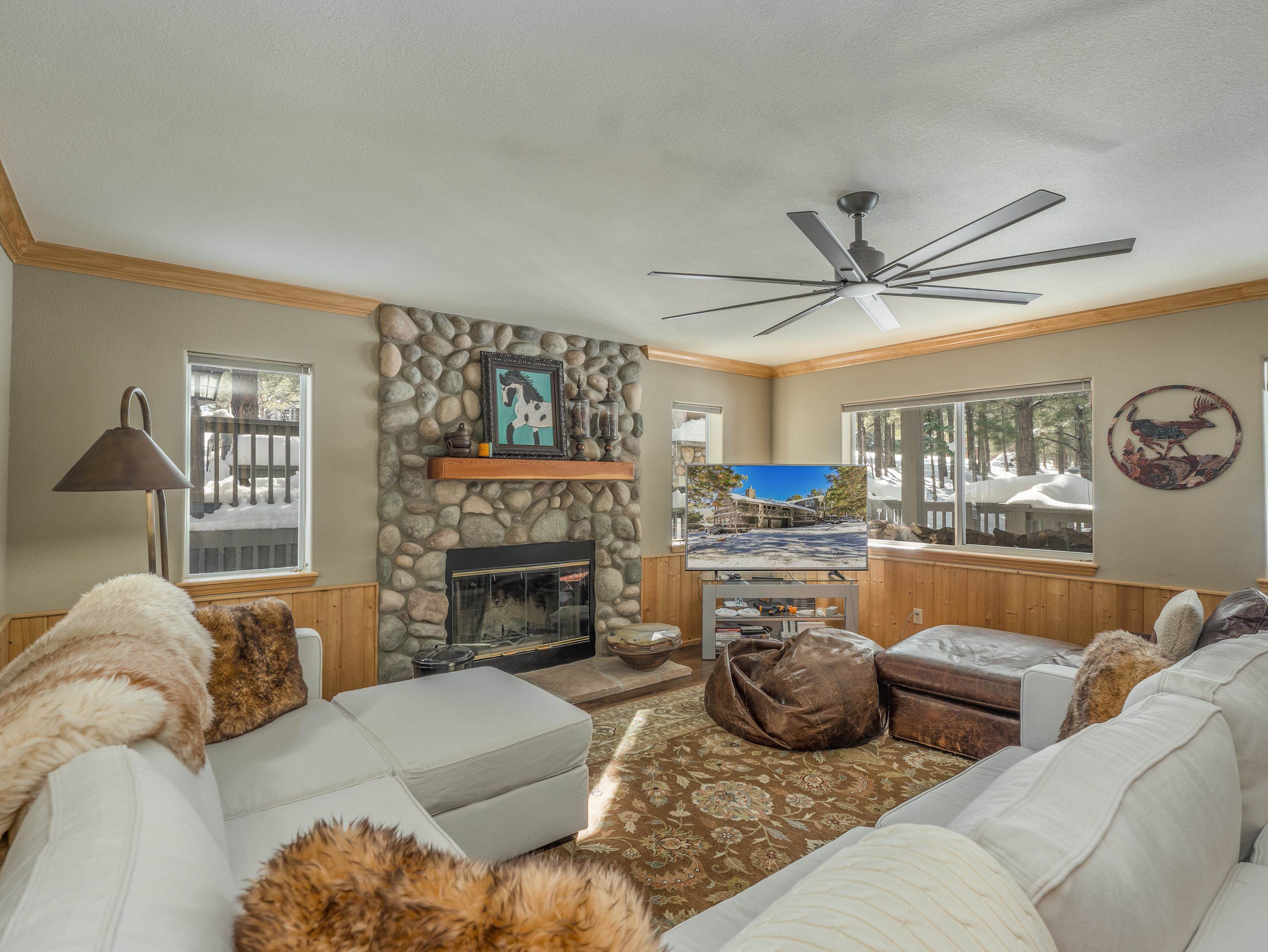 Nestled on an expansive 1.9-acre lot surrounded by whispering pines, this thoughtfully upgraded retreat is just minutes from the Angel Fire Resort Golf Course and Country Club, and a short drive to the ski slopes — offering the perfect year-round mountain escape. Inside, a welcoming great room features a striking window wall framing sunset views of Wheeler Peak and a cozy wood-burning fireplace — the ideal gathering spot after a day of adventure. The upgraded kitchen is generously sized, while the open dining area flows onto a covered deck, perfect for dining al fresco or unwinding under the stars. The spacious primary suite includes a sunny sitting area (or office), updated ensuite bath, and double closets. Two guest bedrooms offer comfort and privacy for family and friends — one with its own ensuite bath. A bonus living space, complete with its own fireplace, is perfect for watching the big game, hosting movie nights, or simply spreading out and relaxing. The attached three-car garage includes a dedicated golf cart bay, storage room, refrigerator, and a bonus bunk room — ideal for a kids’ hideaway, hobby space, or overflow guests. Whether you're entertaining or enjoying some much-deserved R&R, 79 Spyglass Hill Road is the perfect basecamp for mountain living at its finest. Sold fully furnished, decorated, and equipped. This is the home you will come to appreciate more every year due to the Seller's pride of ownership and updates including a new roof, new black-top driveway, remodeled kitchen and bathrooms and more.
