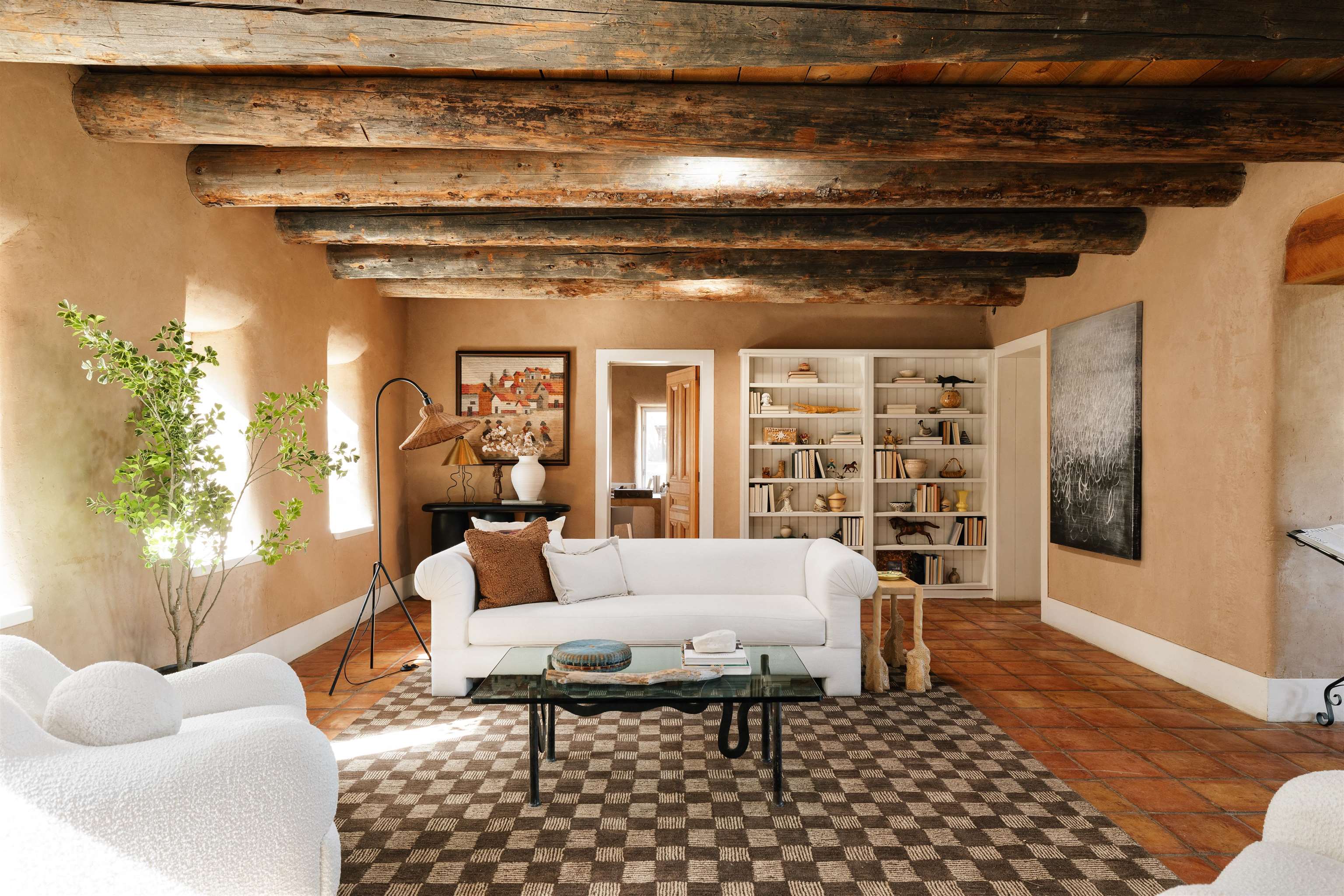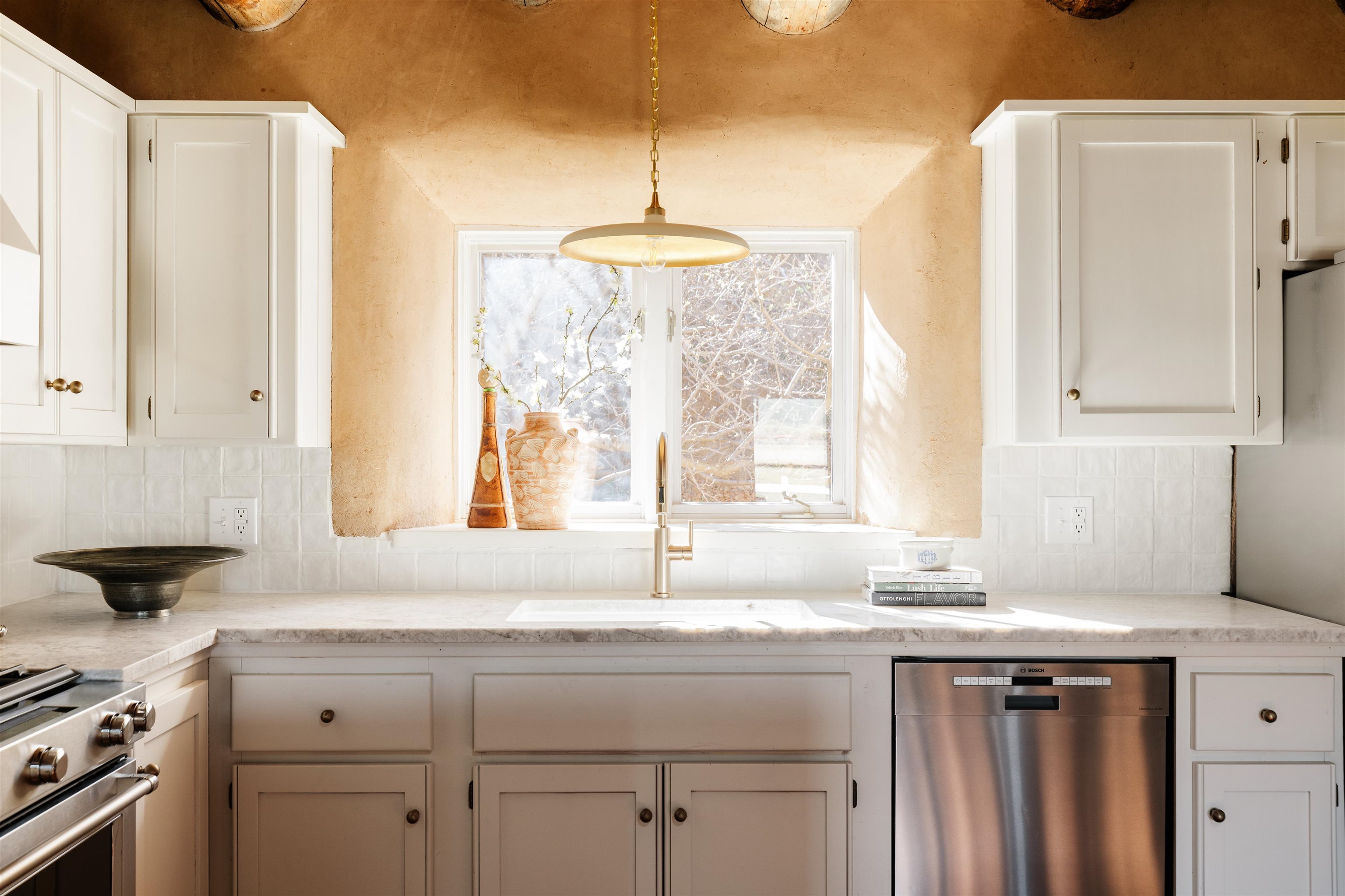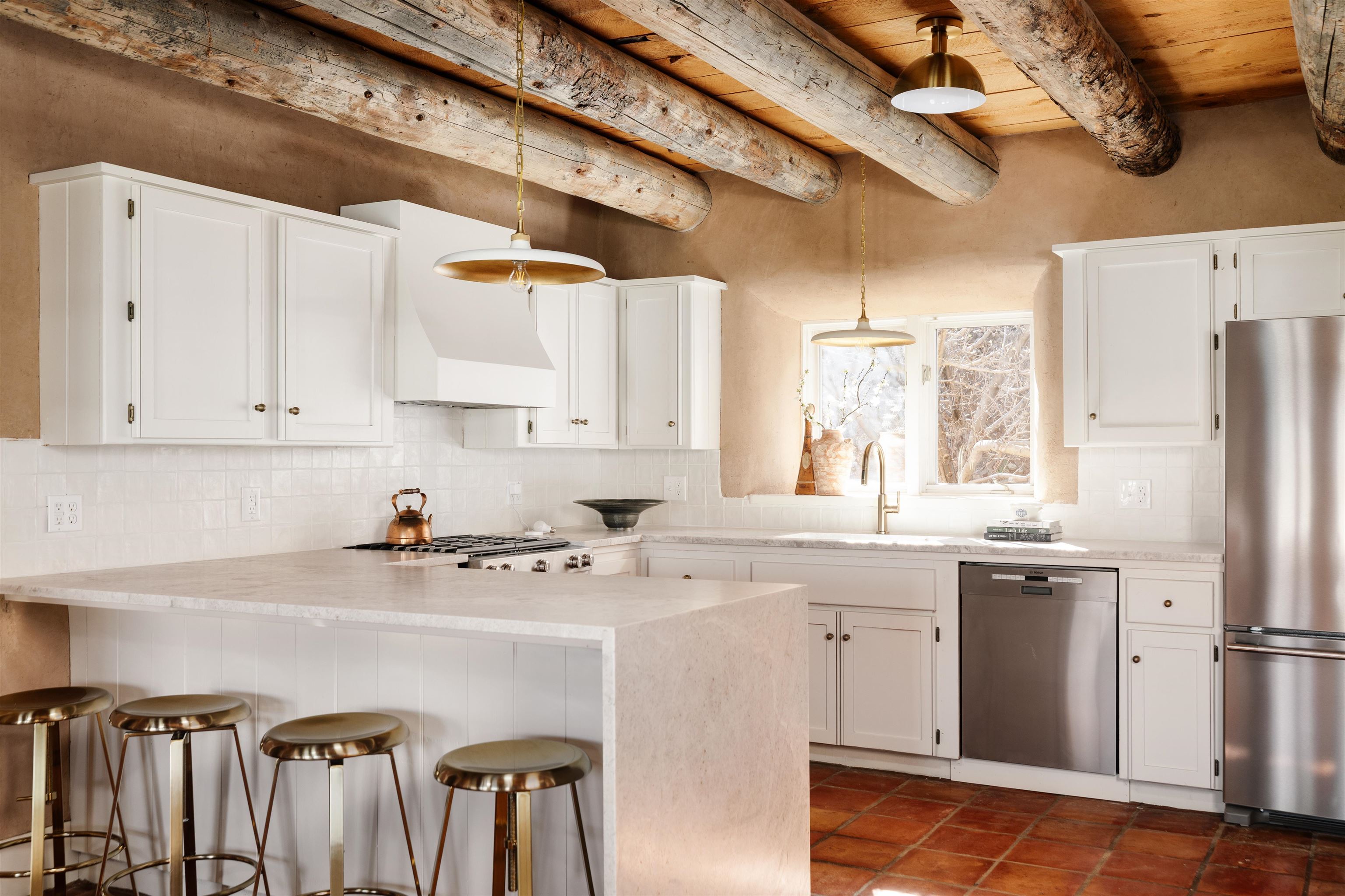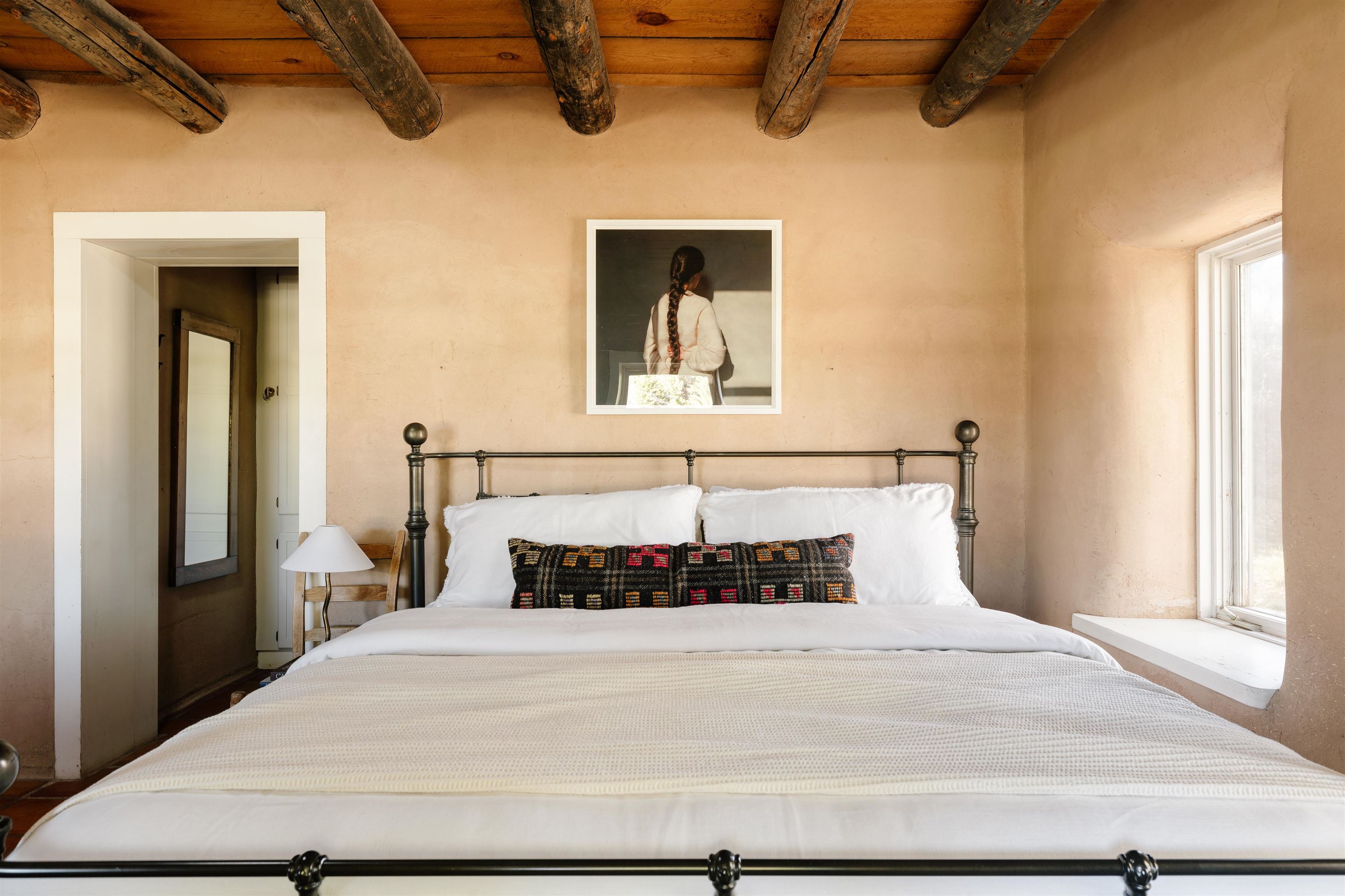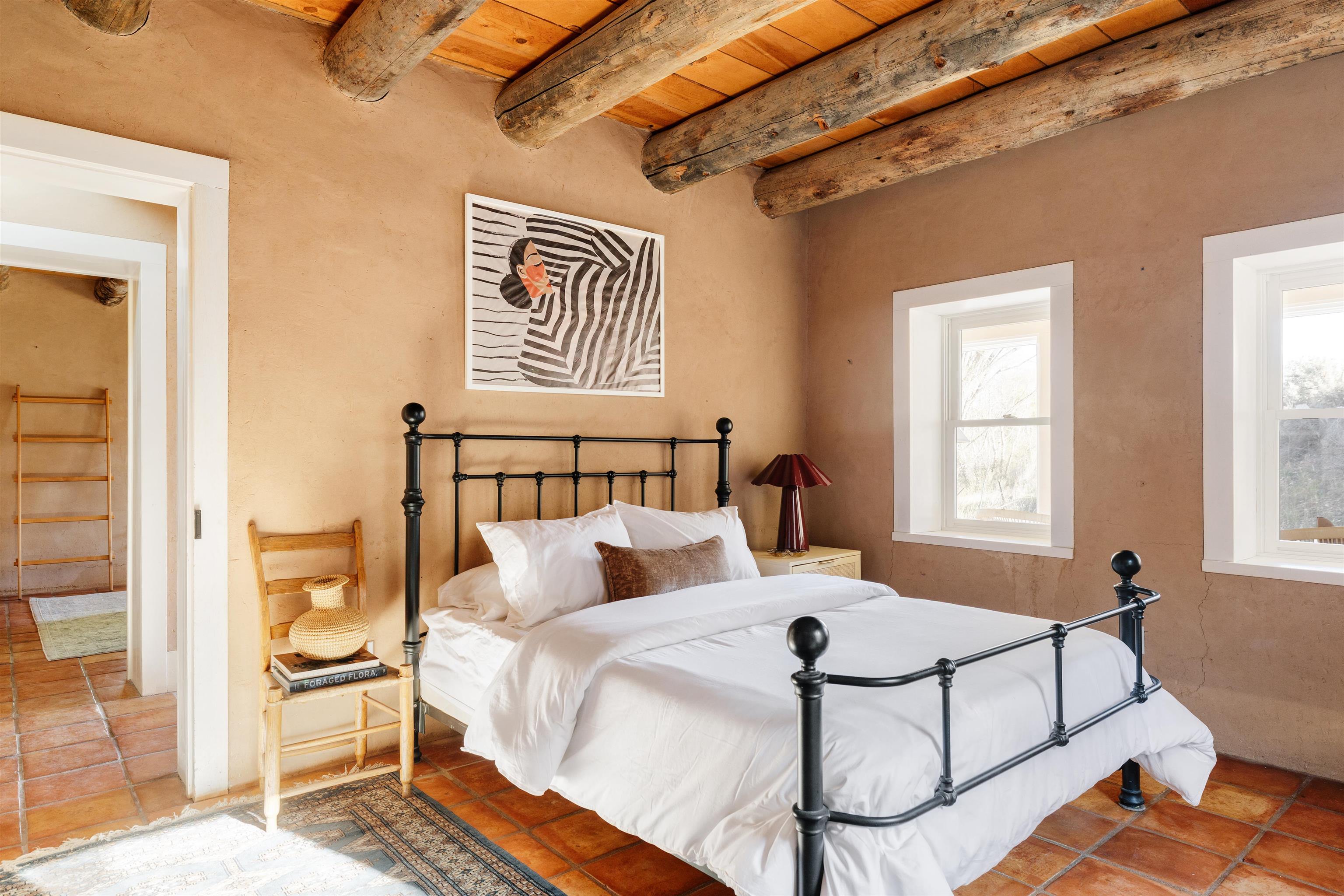 Main Home (4 beds 2 baths) Taos magic is unveiled at the end of a private road on 6.5 sprawling acres, where a fully renovated, turn key residence is wrapped in unobstructed views of Taos Mountain. Bordered by protected horse land, the enchantment of this residence is enhanced by its enduring privacy. The 80-foot covered portal transports visitors from the wild surrounding landscape into remarkable interiors, where Southwestern character blends with modern refinement in the form of upgraded electrical, new hardware, and curated lighting throughout. Radiant heated saltillo tile floors, 18-inch traditional adobe walls, a corner kiva fireplace, and showstopping wood & beam ceilings work in harmony to craft a motif that is both time-honored and luxurious. An easy flow between each of these well-appointed spaces leads to a chef’s kitchen with KitchenAid and Bosch appliances, Aravalli stone countertops with a waterfall edge, a custom high-capacity vent hood, farmhouse sink, and brass hardware, all illuminated by Visual Comfort designer pendants. The bedrooms are a masterclass in Southwestern refinement, and the bathrooms are equally elevated with Carrera marble, Zellige tile, and custom finishes. Floor-to-ceiling, south-facing windows infuse the sunroom with cascades of natural light, setting the stage for mornings with a favorite book, and evenings tending to your own indoor garden. Behind the scenes, thoughtful upgrades include a new additional septic system, freshly painted trim, and smart Nest thermostats throughout that ensure both beauty and functionality. A two-story freestanding shed with a loft provides generous additional storage, while a covered two-car carport with fresh gravel ensures ease and convenience. Guest Home (1 bed 1 bath) Privately situated to capture the same sweeping views, the detached guest house offers a charming 1-bedroom, 1-bath retreat, or rental. With abundant natural light and a sense of quiet independence, it’s ideal for hosting guests or for extended stays. An open kitchen featuring vintage Chambers stove, adds to the guest home’s value. A 300 sqft expansive attached storage and workshop area adds versatility and potential for creative art space, gym, or functional use. Surrounded by sweeping meadows, red willow, and the striking silhouette of the Sangre de Cristo Mountains, the property offers a rare connection to both nature and heritage. With Taos Plaza, the Rio Grande, and Taos Ski Valley just minutes away, the location balances serenity with accessibility. Moments here are defined by shifting light across the mountains, the quiet movement of horses in the distance, and the timeless beauty of the high desert. It is an atmosphere that is both grounding and inspiring.