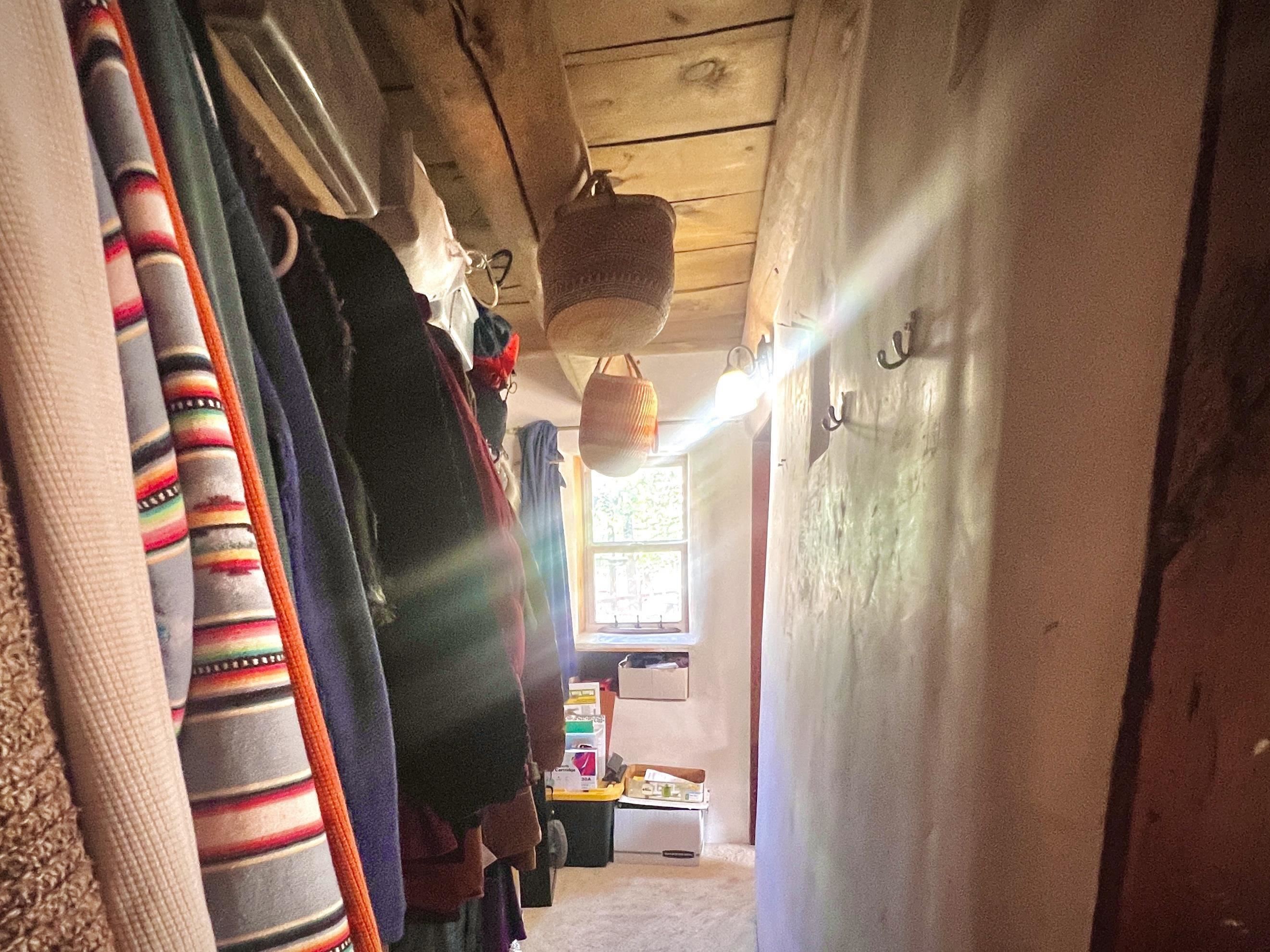 A rare opportunity to own two charming and recently remodeled adobe homes 1+miles from the Plaza, offering over 2,500 sq ft of combined living space, a basement and an attic. The 1950s bungalow style main house (1,400+ sq ft) features original hardwood floors throughout, colorful vintage accents, three bedrooms, one bath, two porches, and practical extras including a carport, basement, attic, and laundry. The eco friendly 1910s casita (1300 sq ft) offers two bedrooms, one bath, remodeled kitchen, bamboo floors, and a high-quality water catchment and filtration system. Cozy wood stoves warm both bedrooms. A deal scenario for a family with room to grow, long-term rental income, multi-generational living, or a flexible live-work space. Outdoors, you’ll find fruit trees, planting beds, storage sheds, and a spacious, secluded yard in a quiet setting that remains conveniently near town. Come see this truly exceptional mix of ease, practicality, and potential.