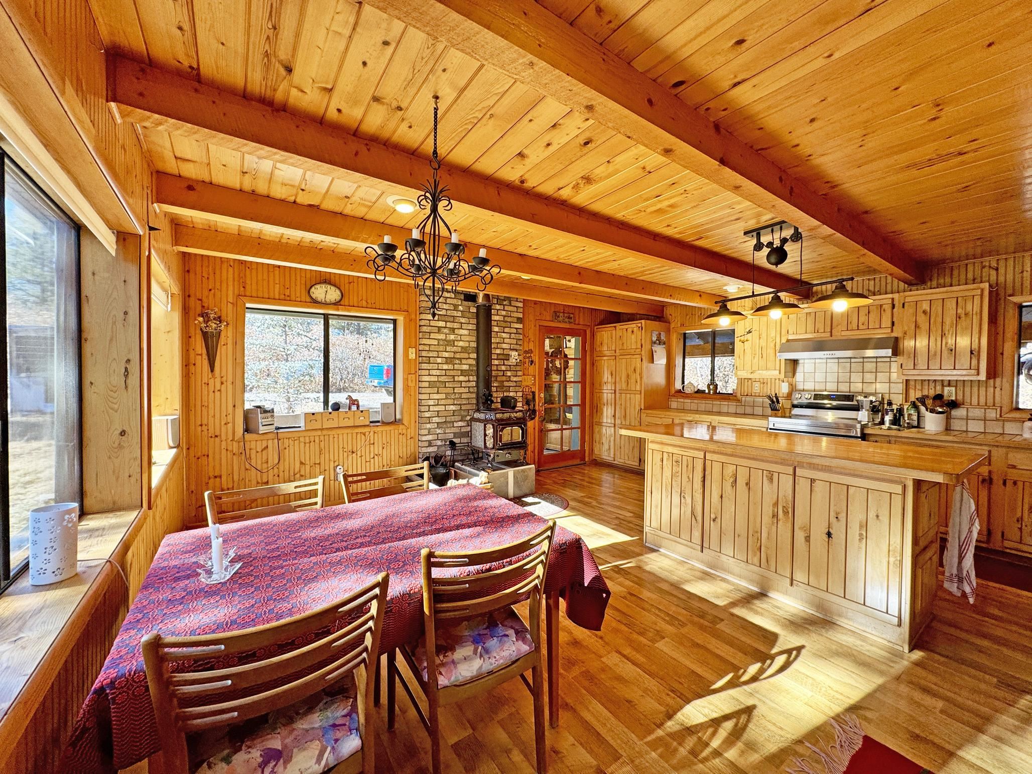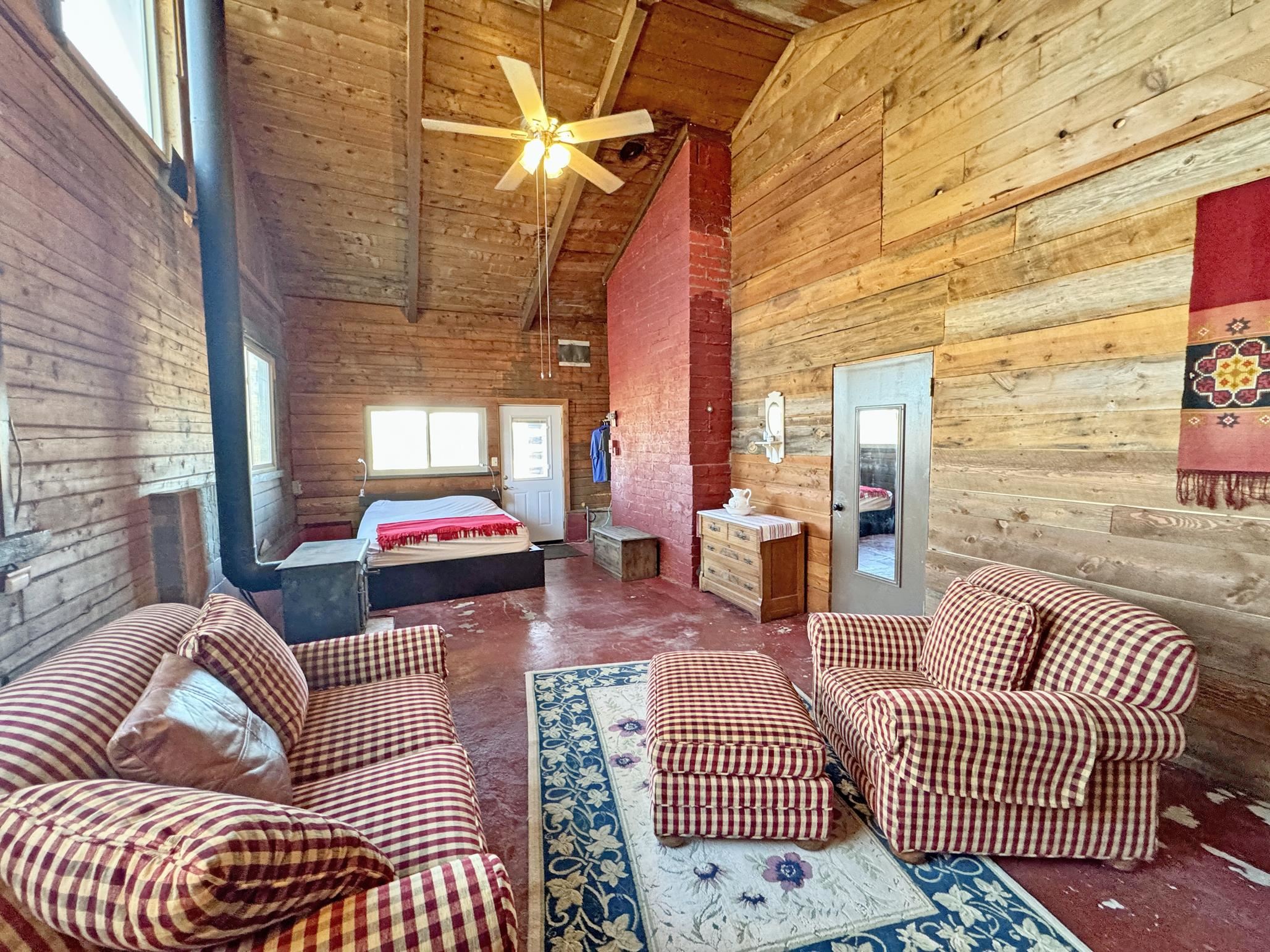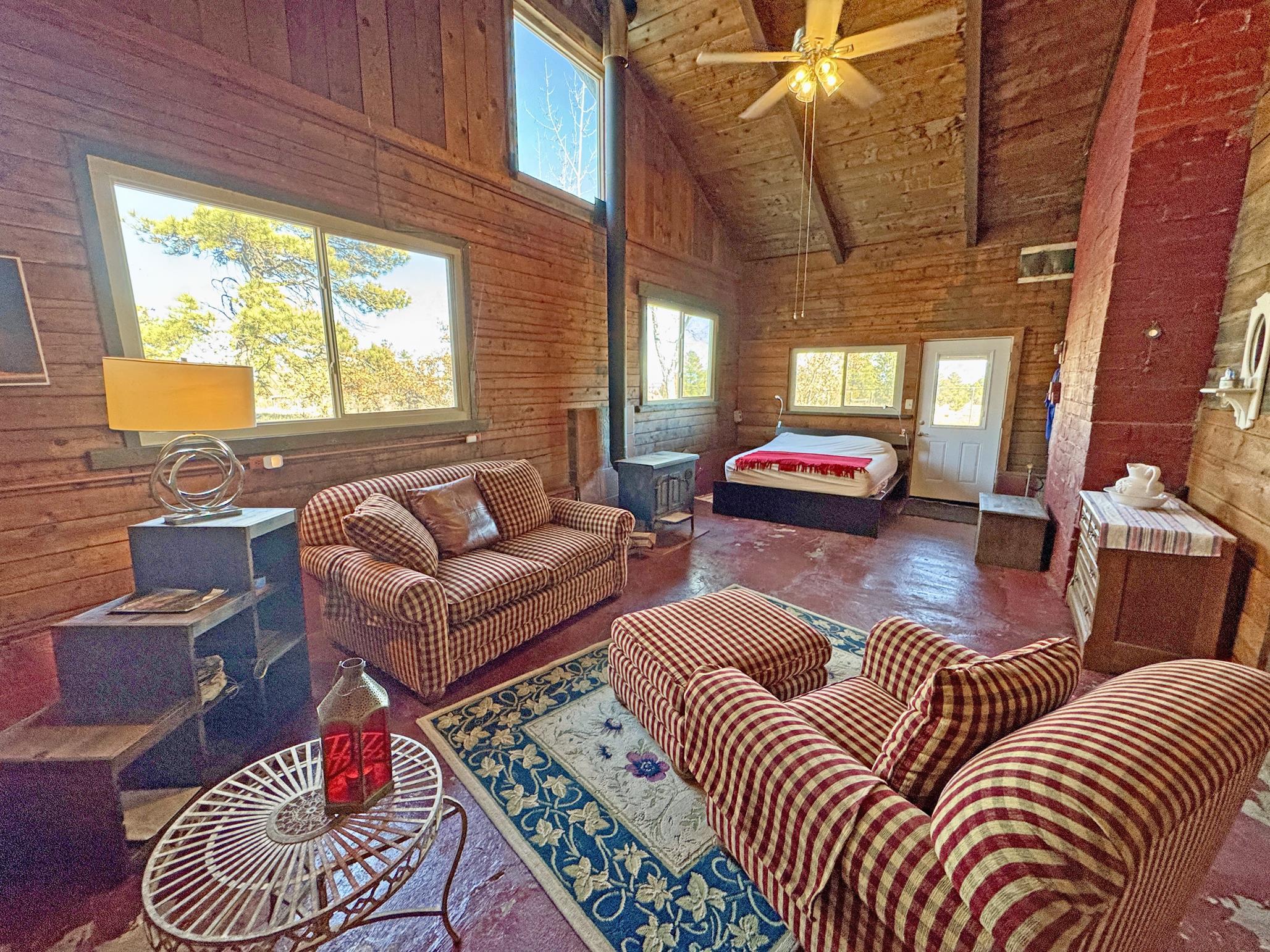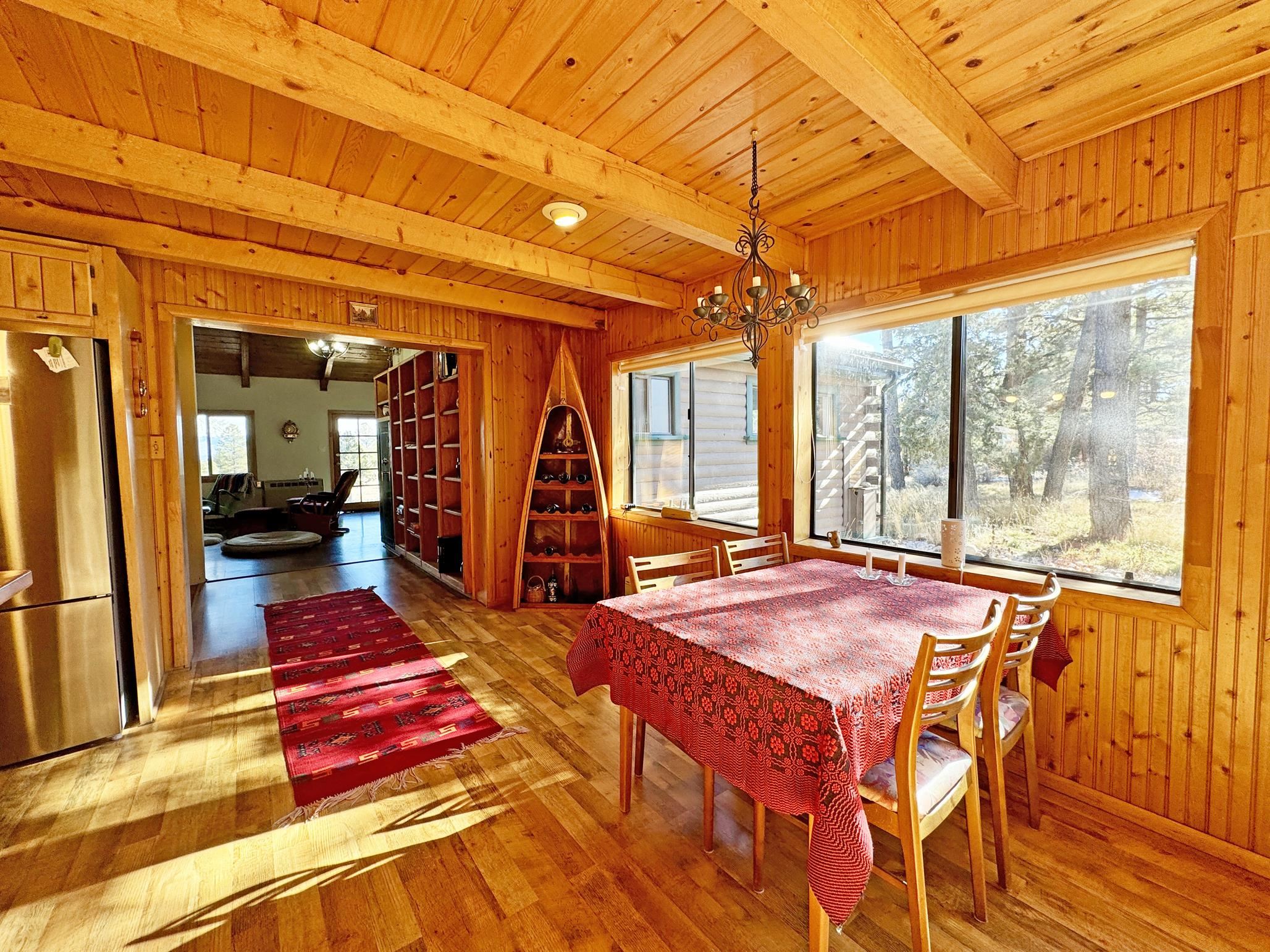 Escape to your own piece of Northern New Mexico paradise! This beautifully maintained split-level premium log cabin in the peaceful Highland Estates subdivision of Tres Piedras offers the perfect blend of rustic charm and modern updates. Surrounded by stunning mountain views, wide-open spaces, and starry night skies, this property is ideal for those seeking privacy and outdoor adventure such as hiking, skiing, rafting and the Rio Grande Gorge. This cabin in the woods is located in the beautiful Tusas Mountains half an hour west of Taos, half an hour north of Ojo Caliente Mineral Hot Springs, and an hour and a half away from Santa Fe. Step inside to vaulted ceilings, warm wood accents, and multiple heating sources for cozy year-round comfort: wood stoves in the kitchen, living room, and expansive primary suite (converted from the original garage), wall heaters in the living room and primary, plus luxurious in-floor radiant heat in the main bathroom. The main level features an open kitchen with hardwood floors and brand-new stainless-steel refrigerator and range, an inviting living room, dining room (currently used as a home office) with authentic Saltillo tiles, a primary suite with cement floors and private wood stove, two guest bedrooms with cork flooring and ceiling fans, and the main bathroom. The fully finished basement adds versatile living space with tile floors throughout, an additional bedroom, 3/4 bathroom, and plenty of room for a family room, guest quarters, or recreation area. Enjoy outdoor living at its finest with two covered porches—one east-facing for morning coffee and one west-facing for spectacular sunsets. The 2-acre property is fully fenced with chain-link for privacy and security, and includes a storage shed, garden shed, and wood shed. Recent upgrades include all-new rain gutters, a new mudroom, a one year old on demand electric water heater, a French drain where water from graveled driveway drains off from and electric heating cables on the roof to effortlessly melt winter snow. Practical features abound: propane tank for gas heating/cooking, septic system, community water, reliable cell service and high-speed fiber optic internet already on the property. This turnkey mountain retreat is ready for you to move in and start living the serene Tres Piedras lifestyle.