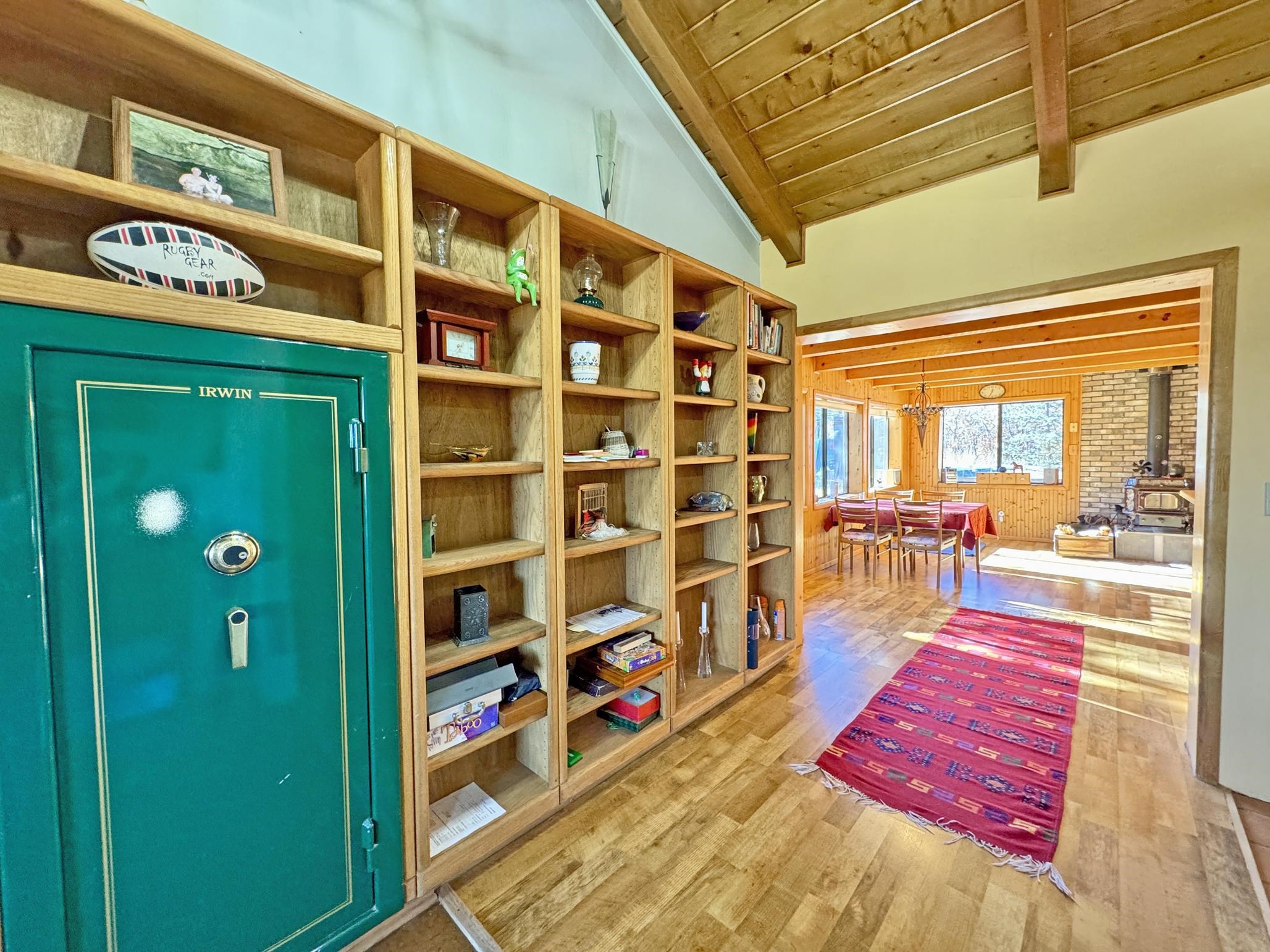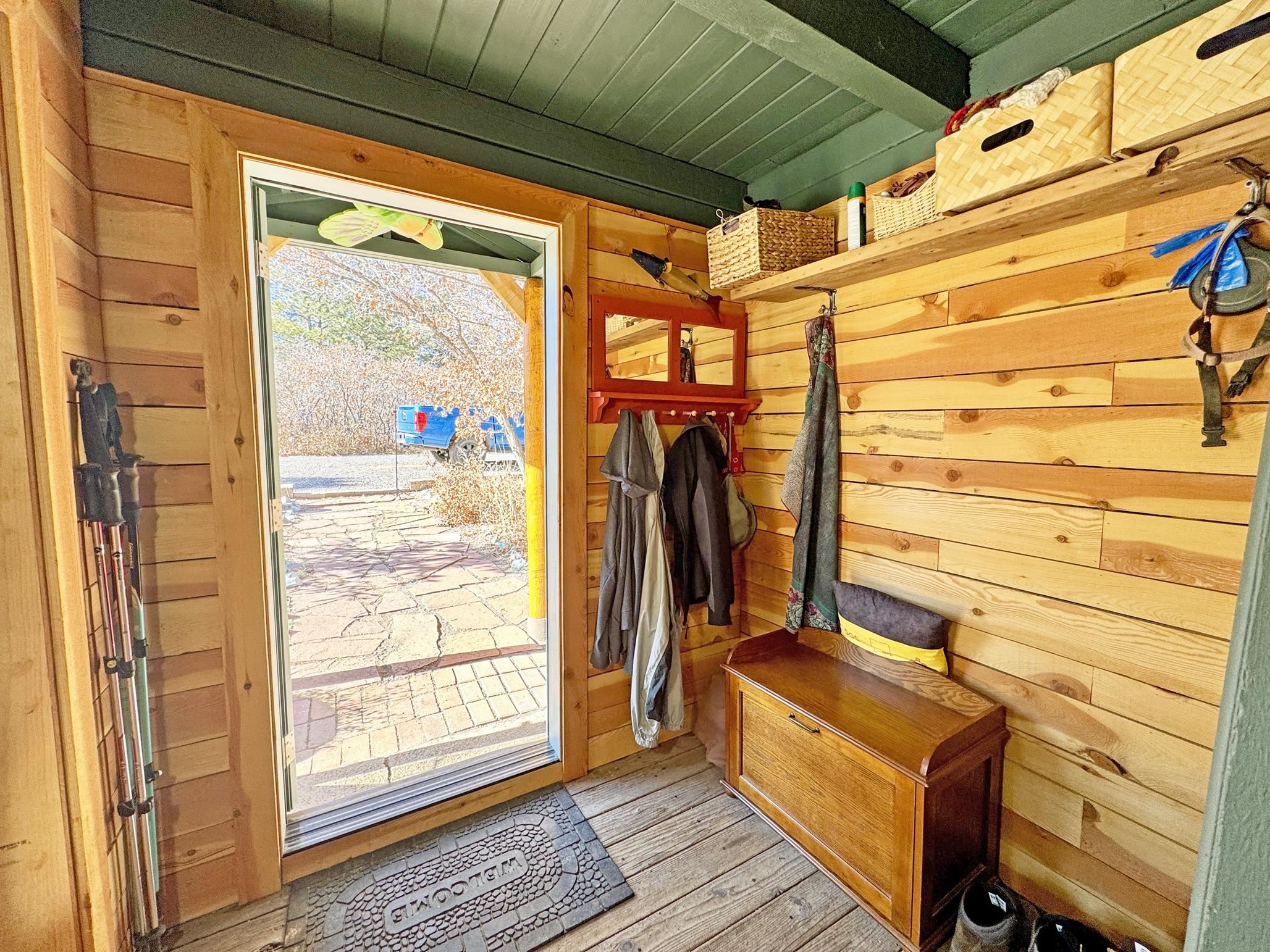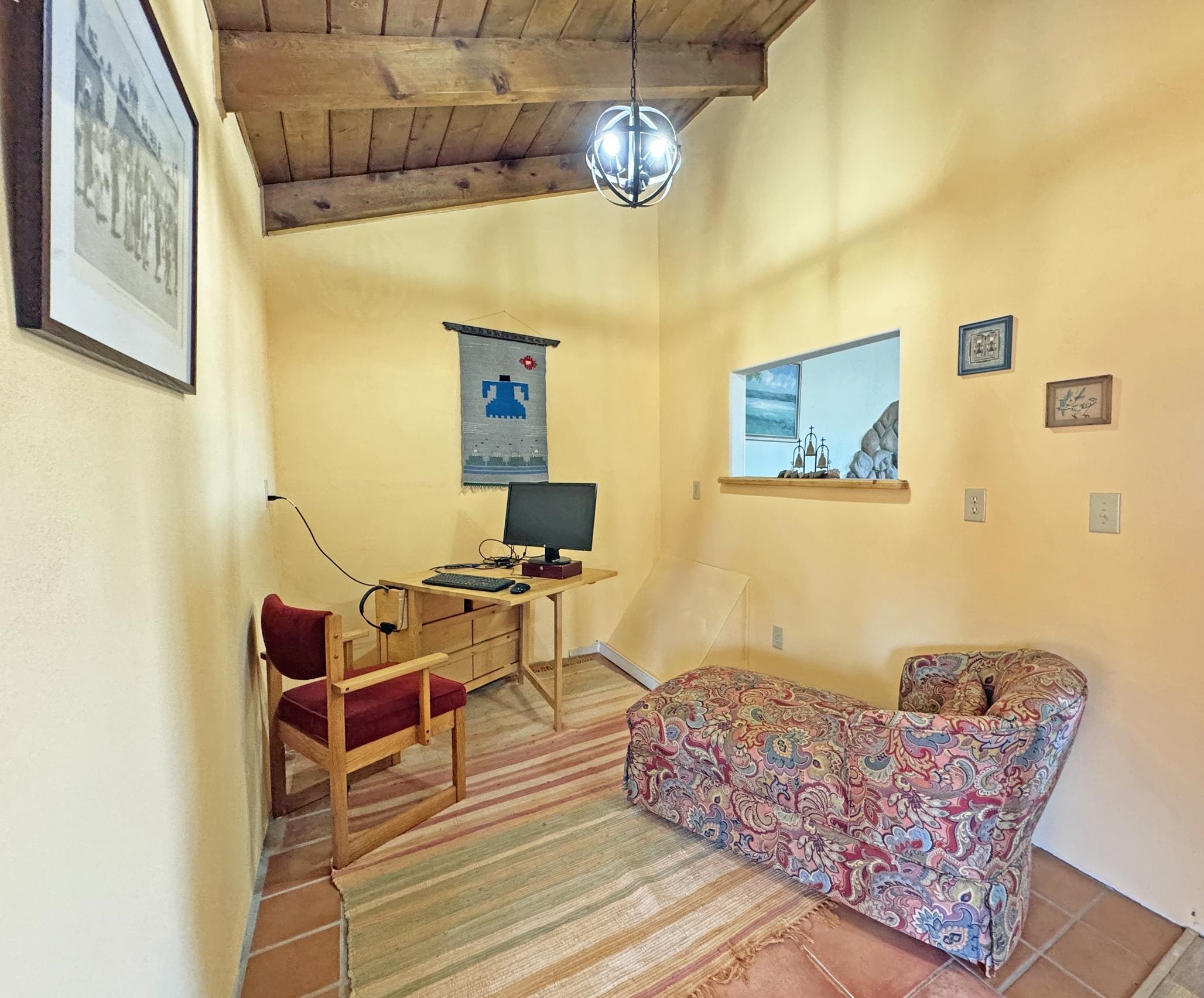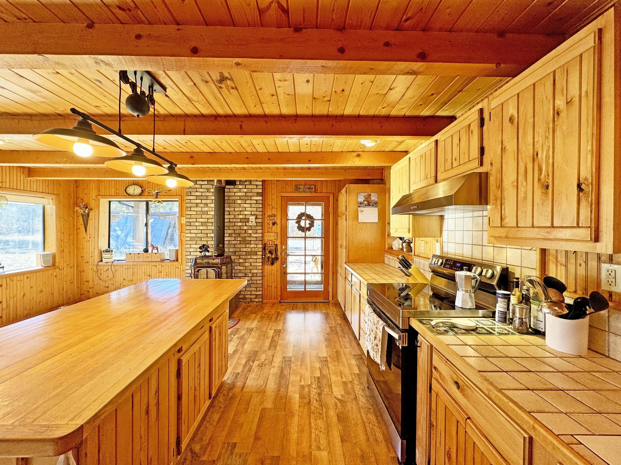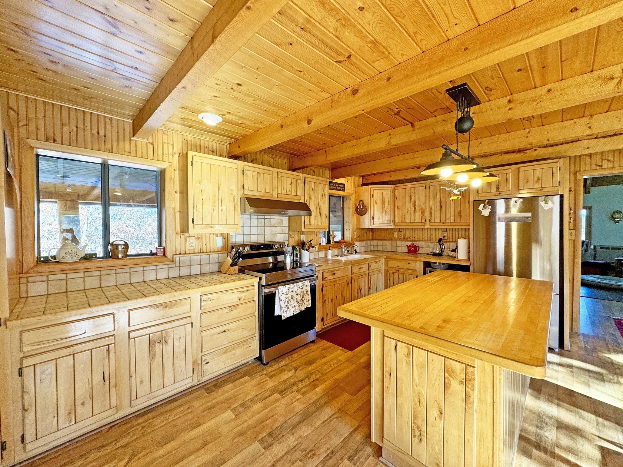 Escape to your own piece of Northern New Mexico paradise! This beautifully maintained split-level premium log cabin in the peaceful Highland Estates subdivision of Tres Piedras offers the perfect blend of rustic charm and modern updates. Surrounded by stunning mountain views, wide-open spaces, and starry night skies, this property is ideal for those seeking privacy and outdoor adventure such as hiking, skiing, rafting and the Rio Grande Gorge. This cabin in the woods is located in the beautiful Tusas Mountains half an hour west of Taos, half an hour north of Ojo Caliente Mineral Hot Springs, and an hour and a half away from Santa Fe. Step inside to vaulted ceilings, warm wood accents, and multiple heating sources for cozy year-round comfort: wood stoves in the kitchen, living room, and expansive primary suite (converted from the original garage), wall heaters in the living room and primary, plus luxurious in-floor radiant heat in the main bathroom. The main level features an open kitchen with hardwood floors and brand-new stainless-steel refrigerator and range, an inviting living room, dining room (currently used as a home office) with authentic Saltillo tiles, a primary suite with cement floors and private wood stove, two guest bedrooms with cork flooring and ceiling fans, and the main bathroom. The fully finished basement adds versatile living space with tile floors throughout, an additional bedroom, 3/4 bathroom, and plenty of room for a family room, guest quarters, or recreation area. Enjoy outdoor living at its finest with two covered porches—one east-facing for morning coffee and one west-facing for spectacular sunsets. The 2-acre property is fully fenced with chain-link for privacy and security, and includes a storage shed, garden shed, and wood shed. Recent upgrades include all-new rain gutters, a new mudroom, a one year old on demand electric water heater, a French drain where water from graveled driveway drains off from and electric heating cables on the roof to effortlessly melt winter snow. Practical features abound: propane tank for gas heating/cooking, septic system, community water, reliable cell service and high-speed fiber optic internet already on the property. This turnkey mountain retreat is ready for you to move in and start living the serene Tres Piedras lifestyle.