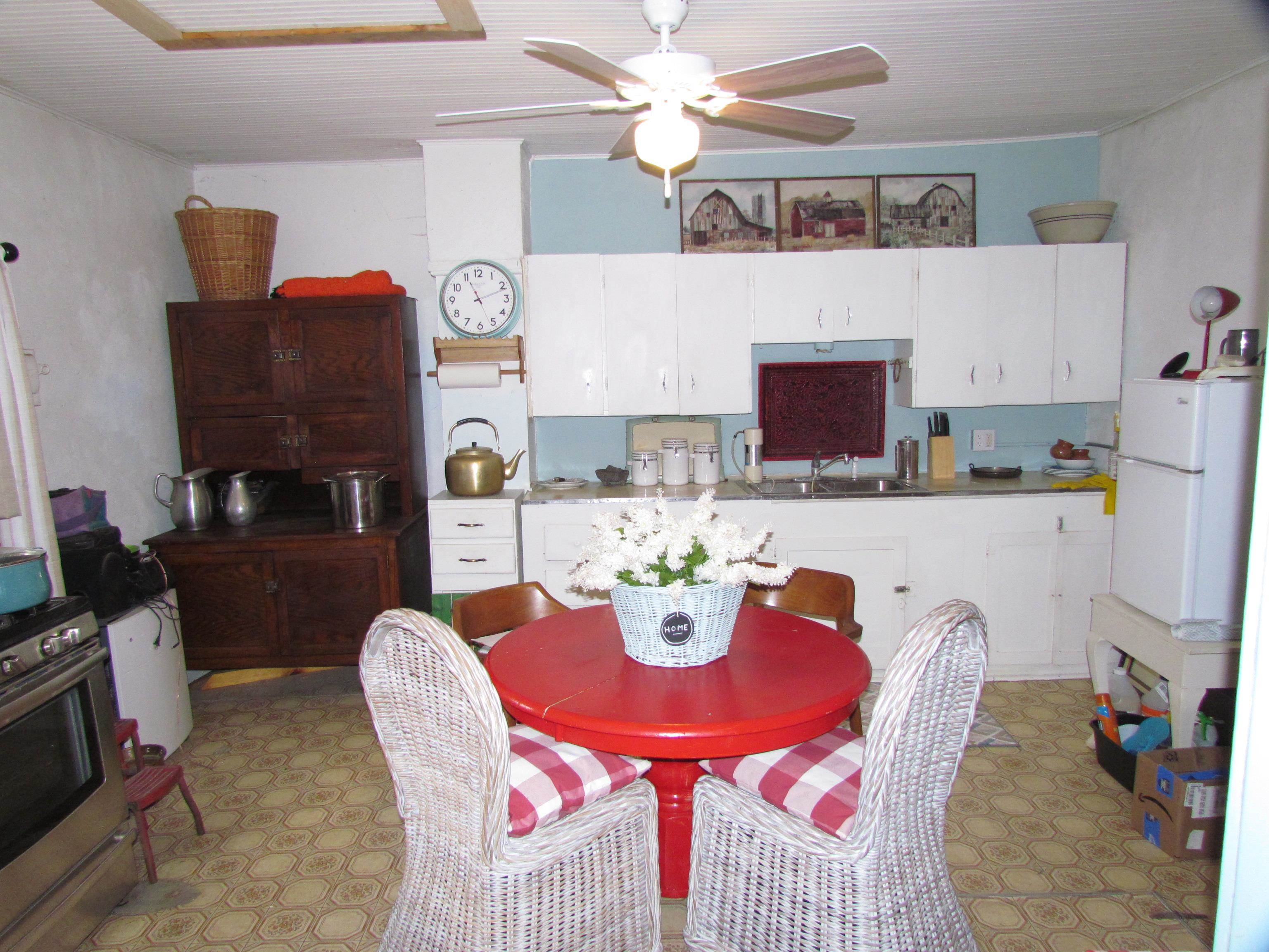 Nice 2 bedroom 1 bathroom 992 +/- sq ft adobe home on almost a third of an acre. Treed lot, on quiet paved street within easy walking distance to restaurants, village hall, library and downtown Springer. Tall ceilings and open spaces make this an inviting home or getaway. Originally estimated to have been built in 1900 this home has had several upgrades in recent years with natural gas, electric, plumbing and sewer. The two bedrooms originally was one large room that has now a dividing wall with each room being approximately 14 ft by 14 ft with separate entry. Both bedroom spaces are currently used as storage for now. The home needs some work, but is livable now. With the adobe walls and tall ceilings, there is a lot of charm to build off. The lot is incredible with a mixture of shade trees, and some plum trees, an older elderberry tree, wild plums, wild spinach and gooseberries. There is a small basement and ceiling accessed through through the kitchen.