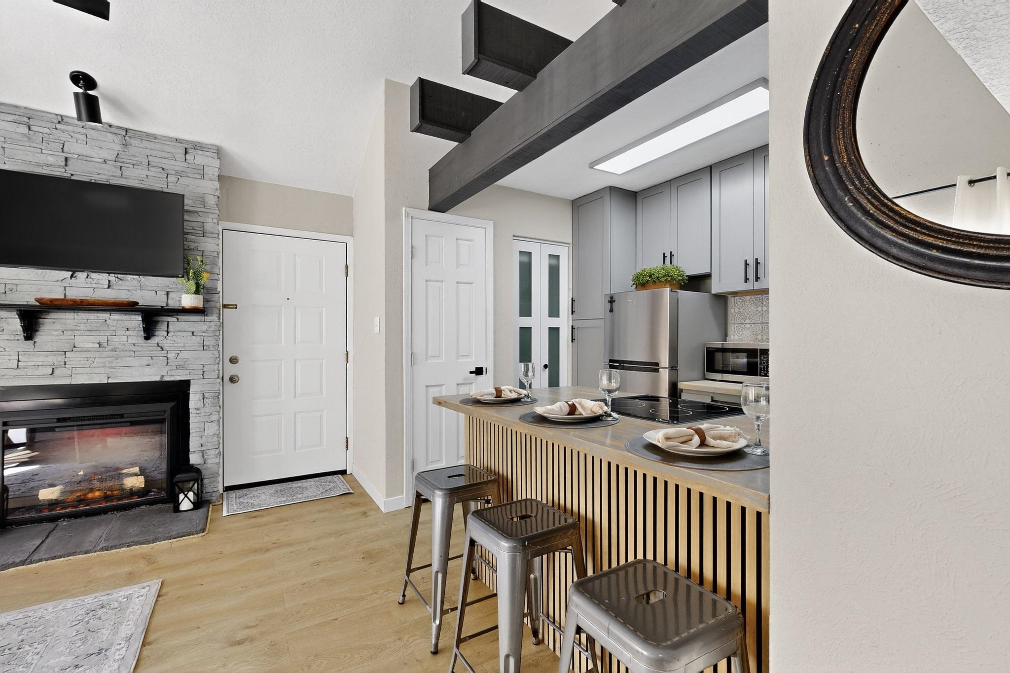 Within walking distance of the Chile Express! This completely updated 1 bedroom, 1 bathroom condo in the popular Angel Fire Chalets is the mountain retreat you’ve been waiting for. Whether you are searching for a cozy personal getaway or an investment property, this unit is perfectly positioned to deliver the best of Angel Fire and the surrounding mountains. The interior has been fully updated with modern finishes that creates a clean and inviting atmosphere. The heart of the home is a cozy living room featuring an electric fireplace, ideal for relaxing after a day on the slopes. The master suite offers plenty of space and includes a private en-suite bath for maximum comfort. To ensure you stay connected, the unit is equipped with fiber-optic internet, making it easy to handle remote work between mountain adventures. Enjoy all four seasons with the slopes just a short stroll from your front door. Winter enthusiasts will love the effortless access to skiing and snowboarding, while nearby trails offer serene snowshoeing, sledding, and cross-country skiing just a short drive away. As the snow melts, the mountain transforms into a premier mountain bike park. Hop on your bike and ride straight to the lift. Beyond the trails, summer days are filled with rounds at Angel Fire Resort's PGA rated 18-hole golf course, pickleball, tennis, hiking, and fishing. Don't miss out on this great opportunity! Call us today to schedule a showing.