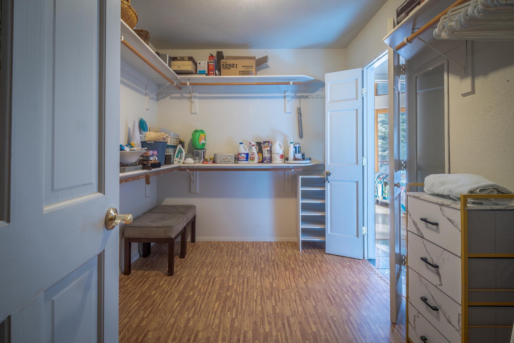 Custom built home with mountain views. The open living, dining, and kitchen area features soaring tongue-and-groove ceilings with large beams, hardwood floors, and a dramatic floor-to-ceiling slate wood-burning fireplace. Spacious living room features a wall of glass with sliding and French doors opening to a large outdoor living area. The kitchen includes maple cabinets, a center island, and black granite countertops. This home offers primary suites on both the main and upper levels, including a main-level suite with a two-story wood-burning fireplace and wall of windows overlooking the aspens. Plus, there is a private office space with high-speed internet to make working from home simple & convenient. There is a bonus suite in garage with its own bathroom. Additional features include an oversized two-car garage with work tables and shelves, a large jacuzzi room and an extra storage room.