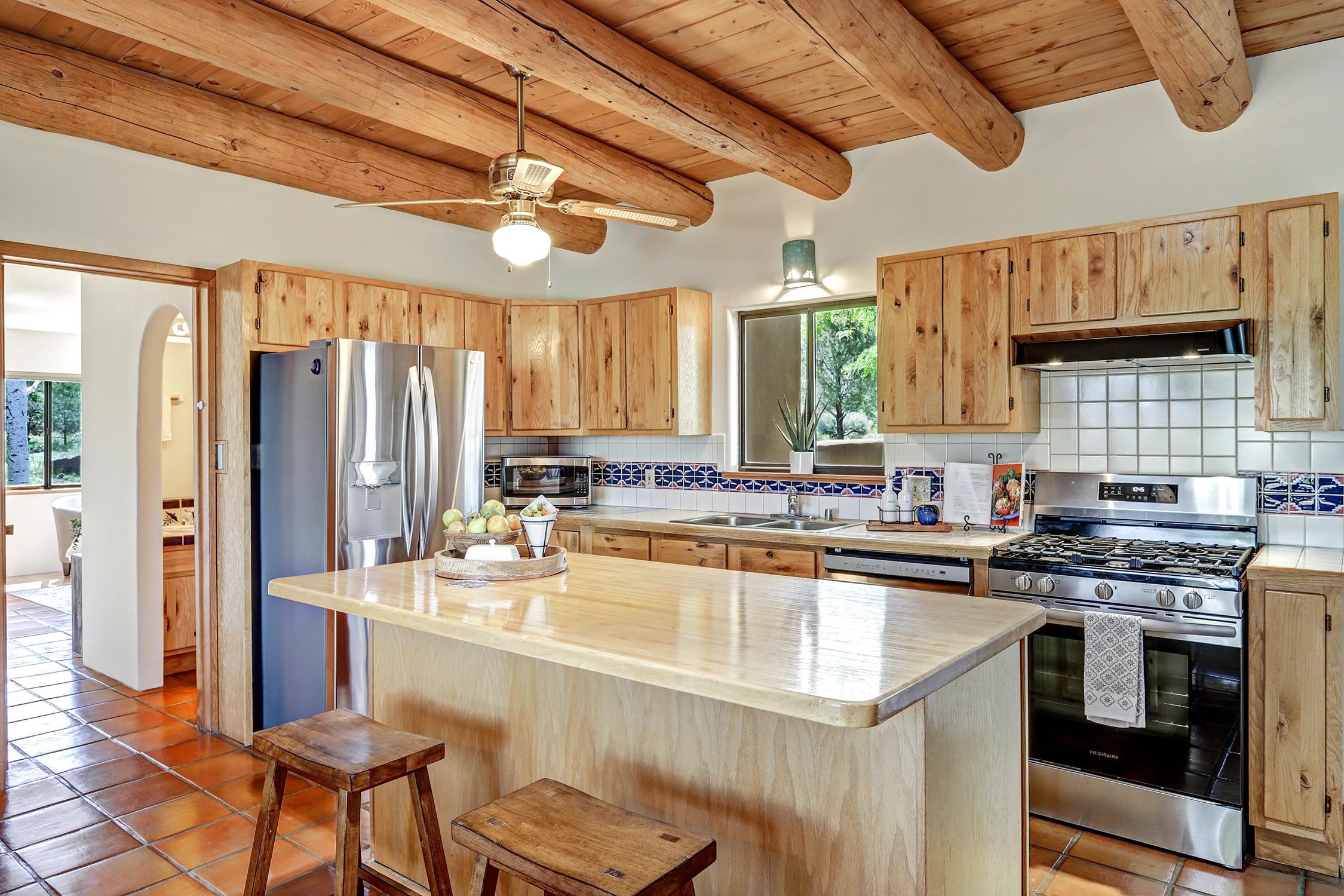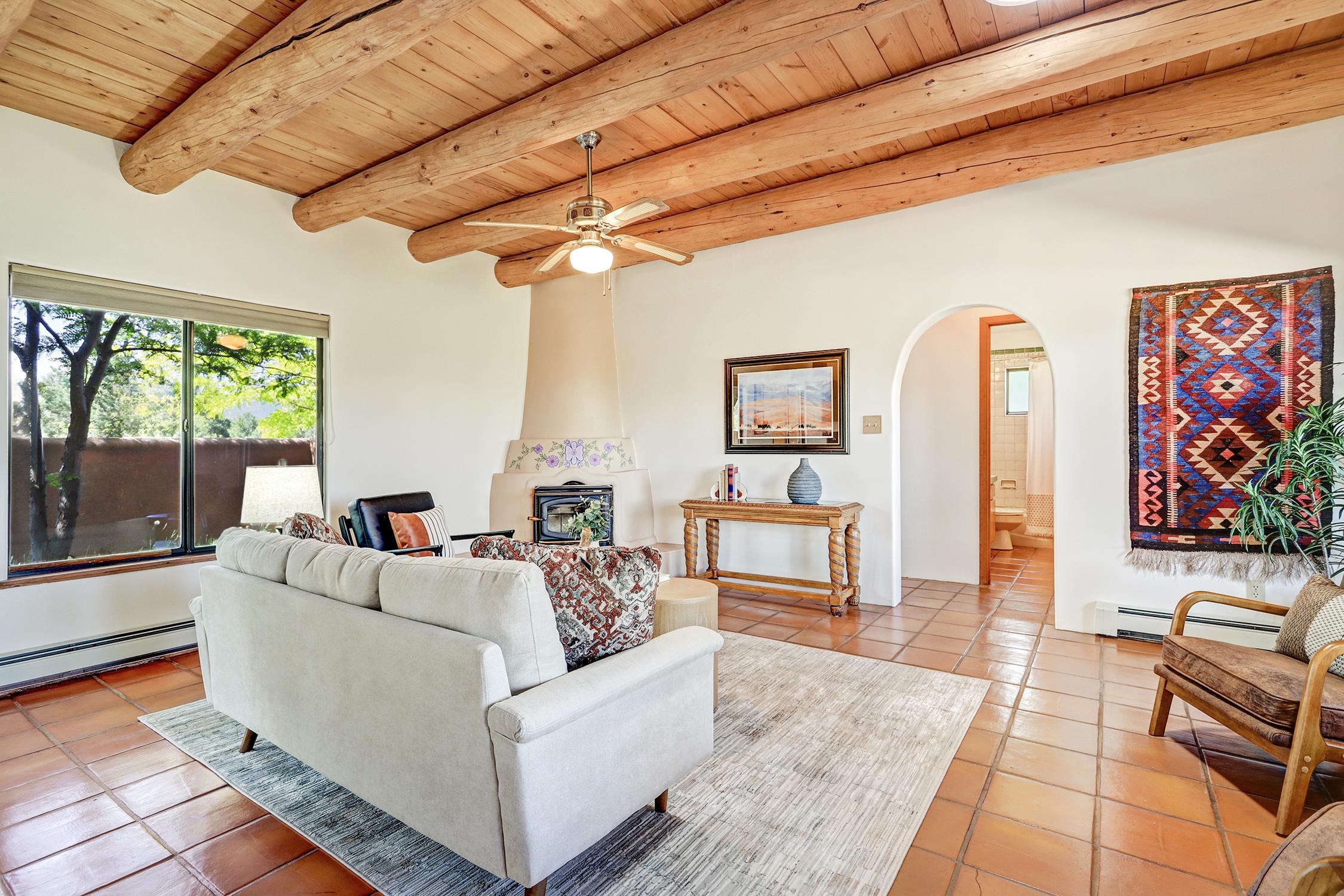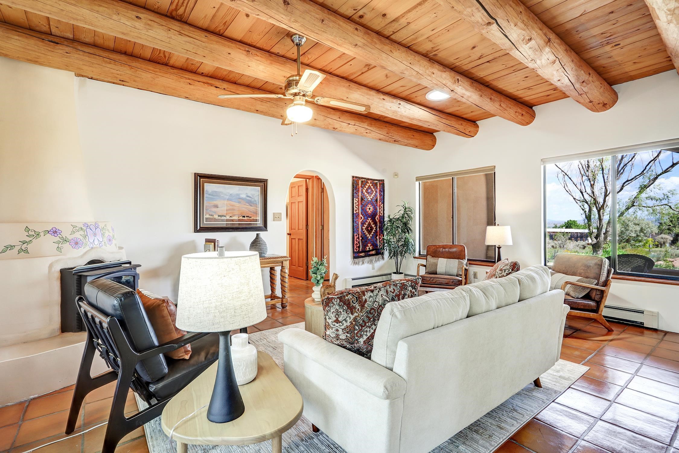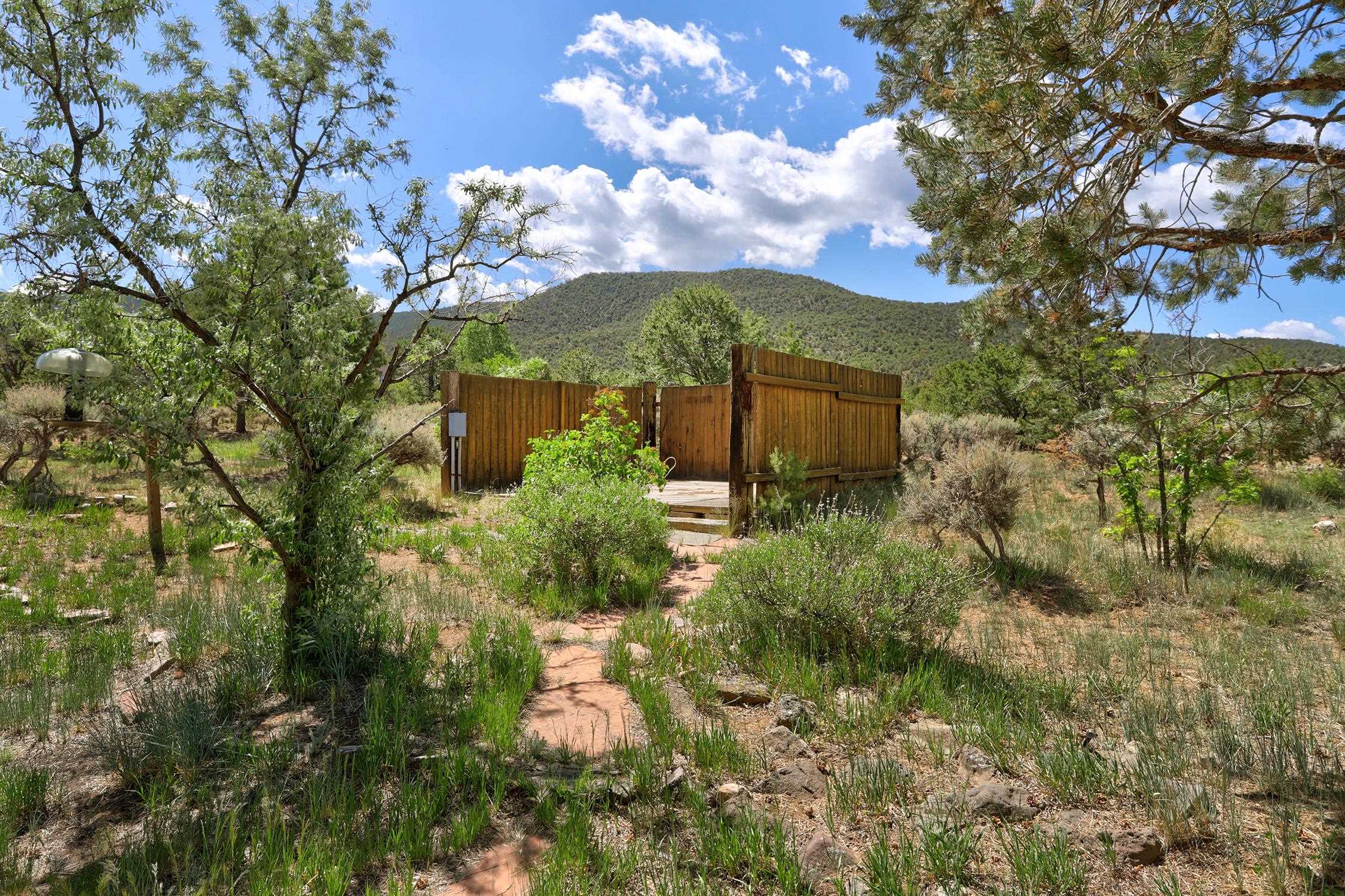 Nestled in the scenic Weimer Foothills, this lovely 3-bedroom, 2-bath home offers 1,674 square feet of comfortable living space on 2 private acres. Inside, you'll find charming Southwest details including Saltillo tile floors, vigas, and tongue-and-groove ceilings that add warmth and character throughout. Enjoy breathtaking views of the mountains, glowing sunsets, and star-filled skies from the deep, covered portal—an ideal space for outdoor dining, entertaining, or simply relaxing out of the elements. The property includes a 2-car garage, a site-built storage shed, and a dedicated deck with electrical already in place—ready for your hot tub. Mature trees and thoughtfully landscaped gardens are supported by a drip irrigation system, creating a peaceful outdoor setting that feels both cultivated and natural. A rare opportunity in one of Taos’ most desirable neighborhoods with easy access to hiking and biking, and a short distance from shopping, dining and all Taos has to offer.