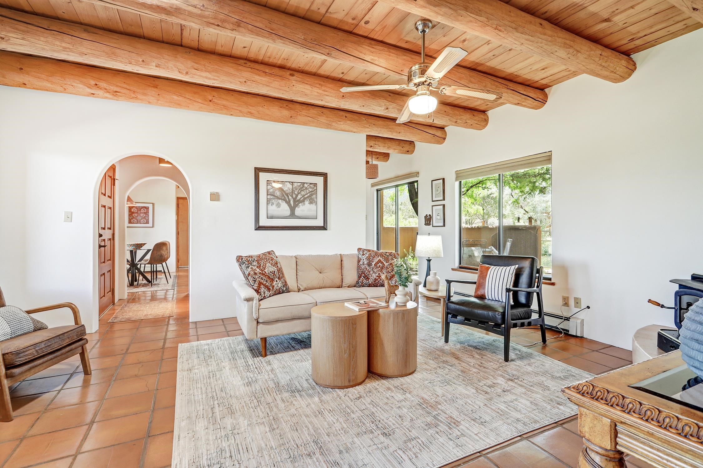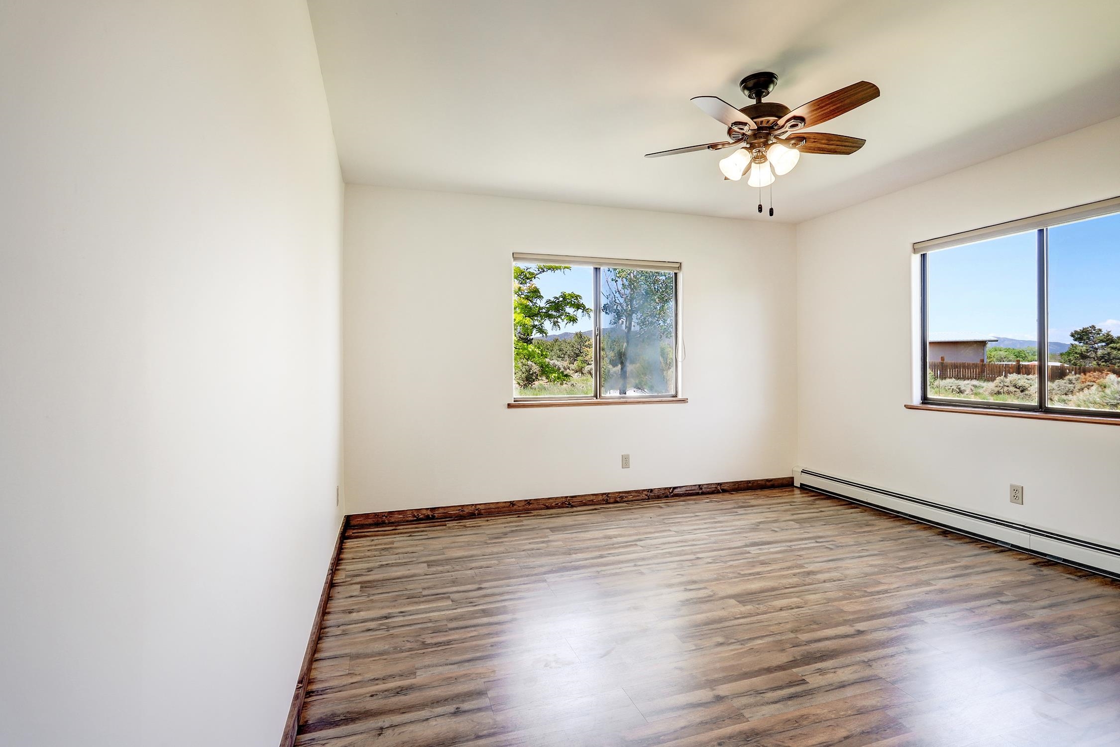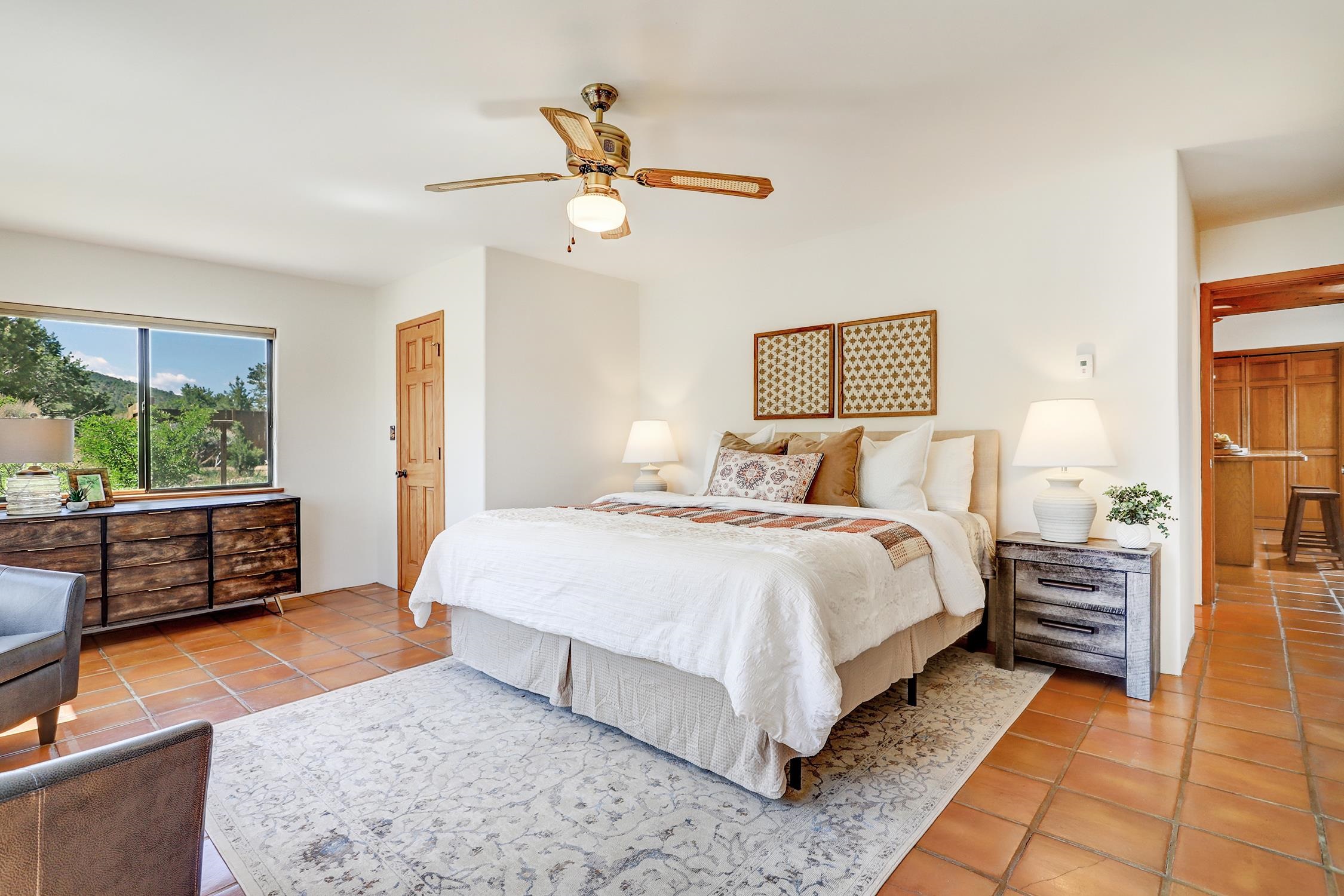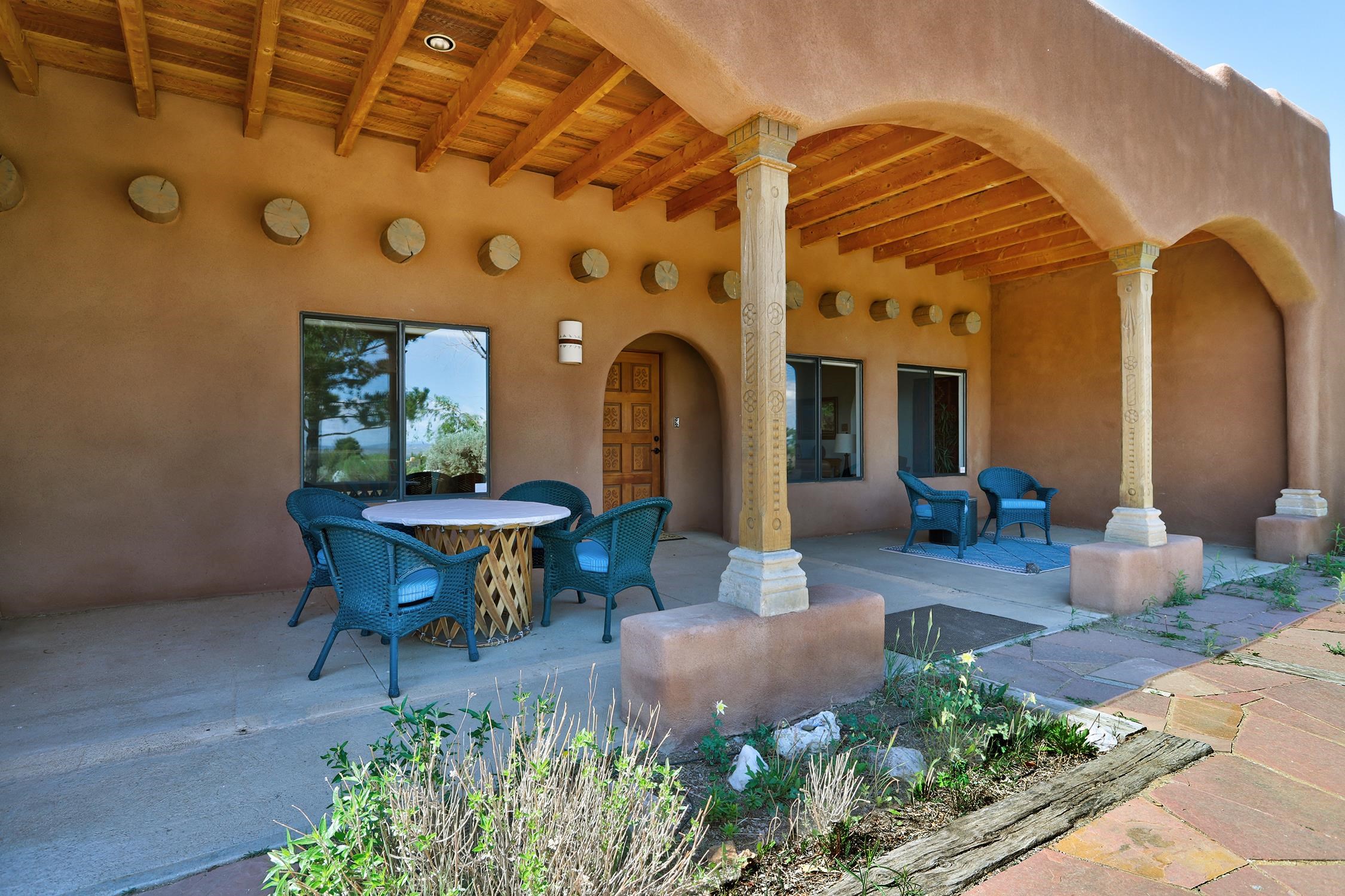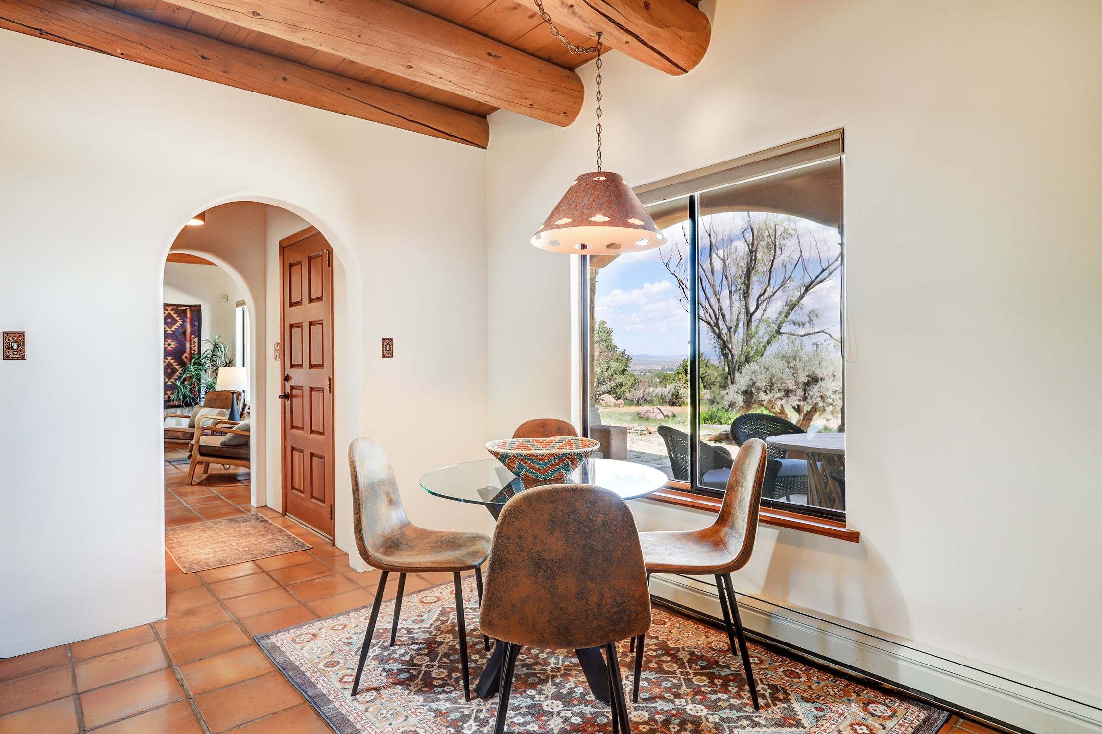 Nestled in the scenic Weimer Foothills, this lovely 3-bedroom, 2-bath home offers 1,674 square feet of comfortable living space on 2 private acres. Inside, you'll find charming Southwest details including Saltillo tile floors, vigas, and tongue-and-groove ceilings that add warmth and character throughout. Enjoy breathtaking views of the mountains, glowing sunsets, and star-filled skies from the deep, covered portal—an ideal space for outdoor dining, entertaining, or simply relaxing out of the elements. The property includes a 2-car garage, a site-built storage shed, and a dedicated deck with electrical already in place—ready for your hot tub. Mature trees and thoughtfully landscaped gardens are supported by a drip irrigation system, creating a peaceful outdoor setting that feels both cultivated and natural. A rare opportunity in one of Taos’ most desirable neighborhoods with easy access to hiking and biking, and a short distance from shopping, dining and all Taos has to offer.