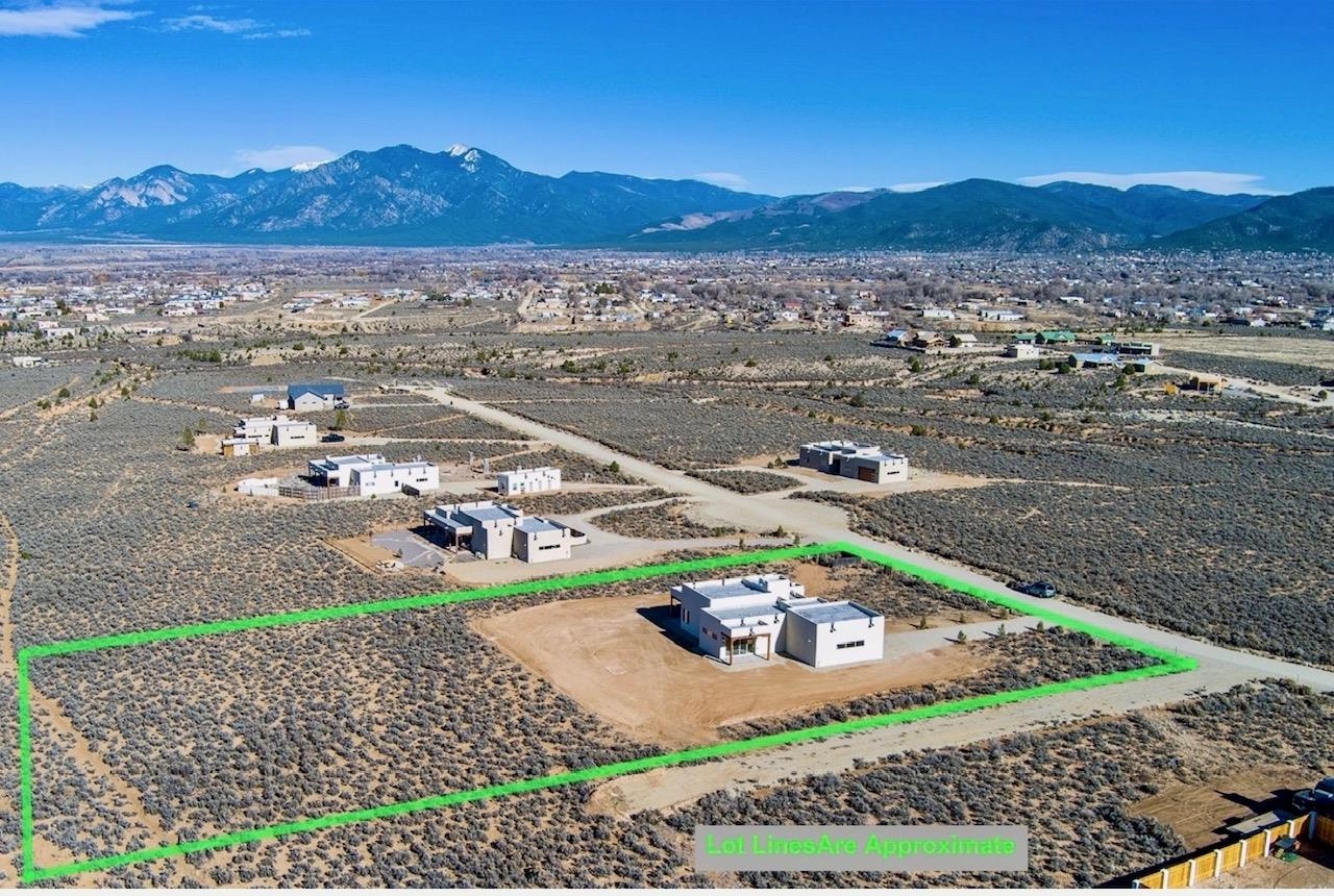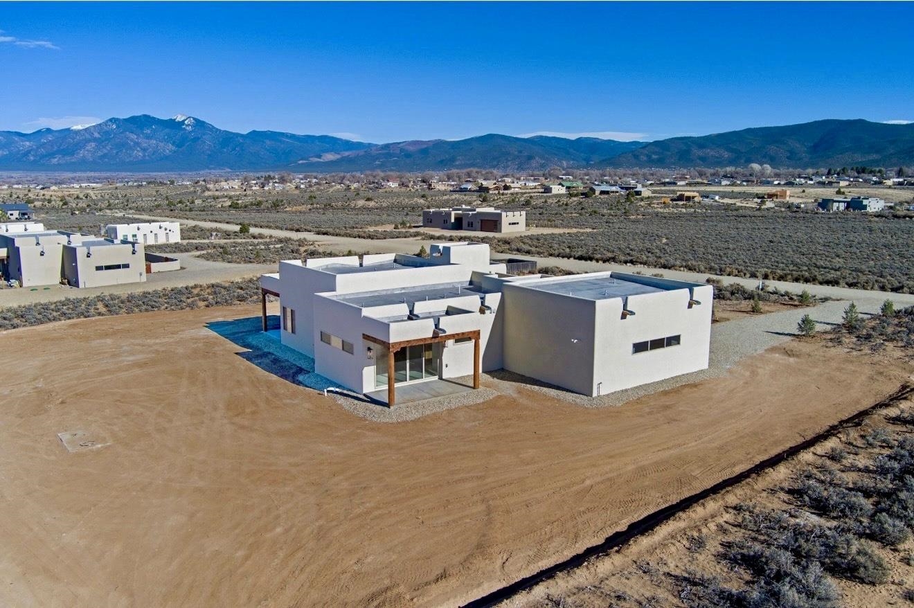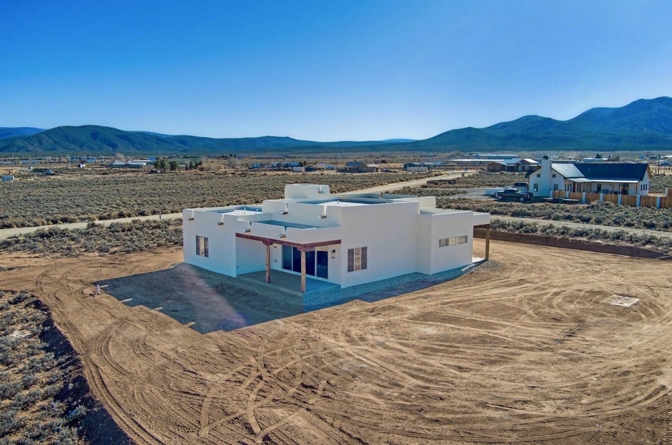 NEW CONSTRUCTION; 100% COMPLETE. Superb craftmanship by one of Taos' best builders, In and Out Plumbing and Construction. Three bedrooms and two bathrooms nicely spread out over 2034 square feet. Has granite tops, semi-custom cabinets, tile, vigas, and stainless steel appliances. The entire house has in slab, radiant heating, including the garage. Features the most amazing views of Taos Mountain.
