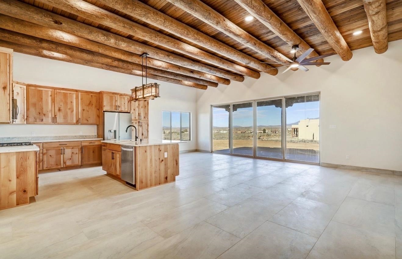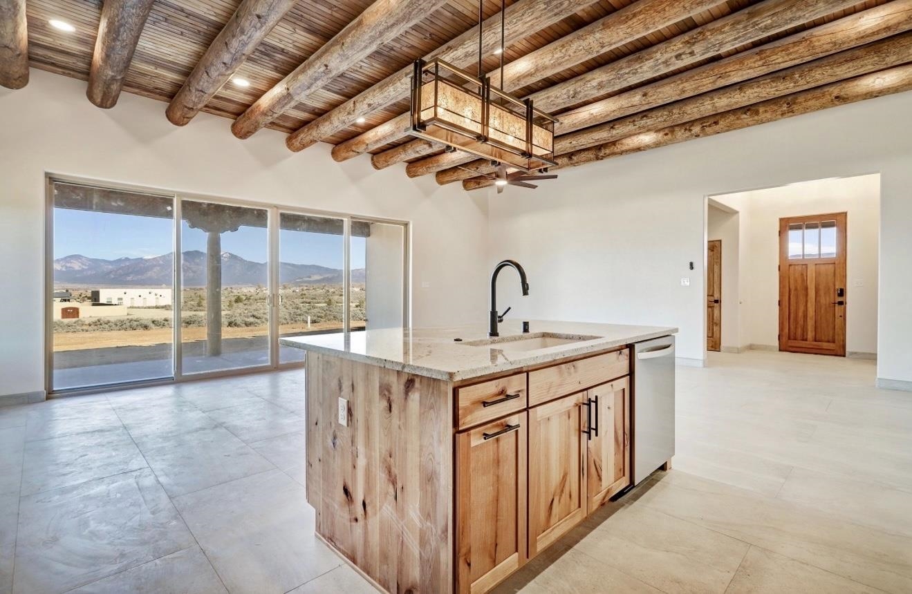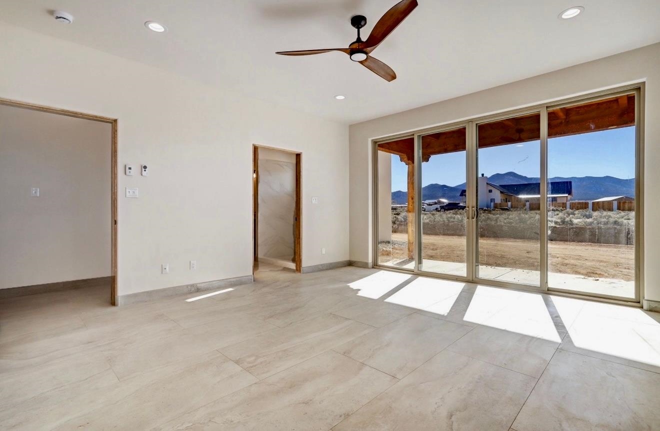 NEW CONSTRUCTION; 100% COMPLETE. Superb craftmanship by one of Taos' best builders, In and Out Plumbing and Construction. Three bedrooms and two bathrooms nicely spread out over 2034 square feet. Has granite tops, semi-custom cabinets, tile, vigas, and stainless steel appliances. The entire house has in slab, radiant heating, including the garage. Features the most amazing views of Taos Mountain.