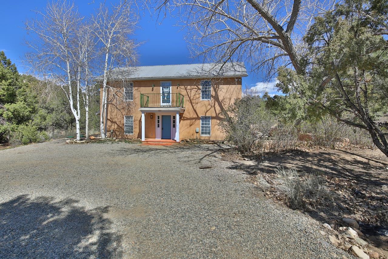 GOODBYE WORLD, HELLO MOTHER NATURE! Tucked at the end of the road in picturesque Sandia Canyon you’ll find a home that offers the epitome in peace, quiet, and privacy yet has fiber optic connections to the real world. Set on 4.3 acres and bordered by Taos Pueblo land this beautiful 3BR/3BA, 2,352 sq ft home with studio and infinity pool offers options for living, creating, or even working - if you have to. This 2-story adobe and frame home features a great room with high ceilings, a grand fireplace, and big windows to take in the views and bring the outside in. An antique wood stove will warm even the coldest of hearts. Cook feasts for a few or many in the country kitchen with lovely pantry and dine watching the deer mosey past. Upstairs you’ll find 2 bedrooms and 2 baths plus a kitchenette which has a separate entrance providing options for the owner. Of course, mountain views abound. Plant vegetables in the raised beds in the Spring and have garden parties in the Summer on the large patio. Invite friends for cocktails on the upper deck and be awed by the mountain views or just relax and take a snooze. Missing water in our high desert? Enjoy the infinity pool year-round and make use of the 410 sq.ft. studio to hone your creative talents or repurpose to suit your lifestyle + 2 car detached carport/garage. (Studio houses infinity pool and is heated with gas wall heater). Say “Hello” to the birds and wildlife and goodbye to neighbors too close and the sounds of the city. Relax, refresh, renew! Convenient access to town and Taos Ski Valley.