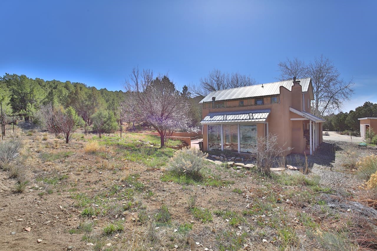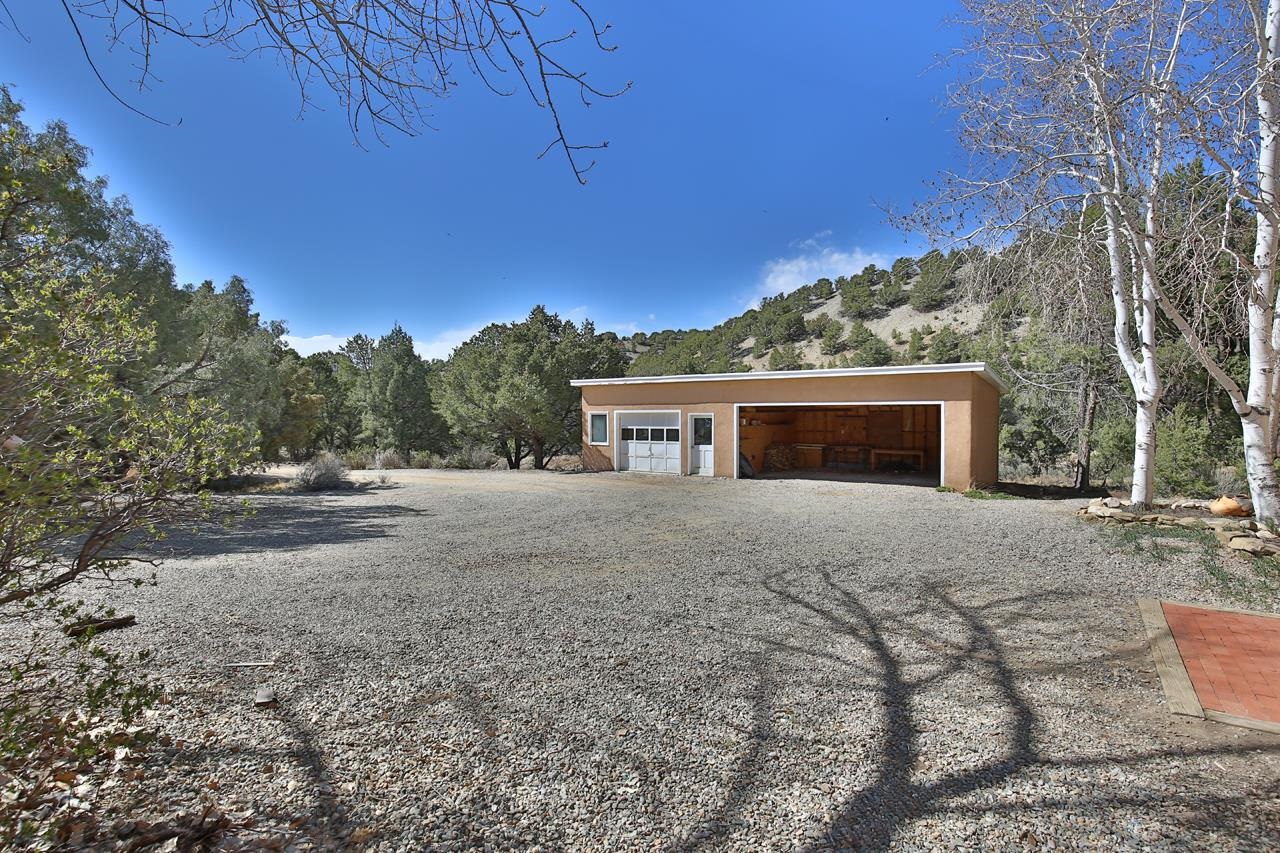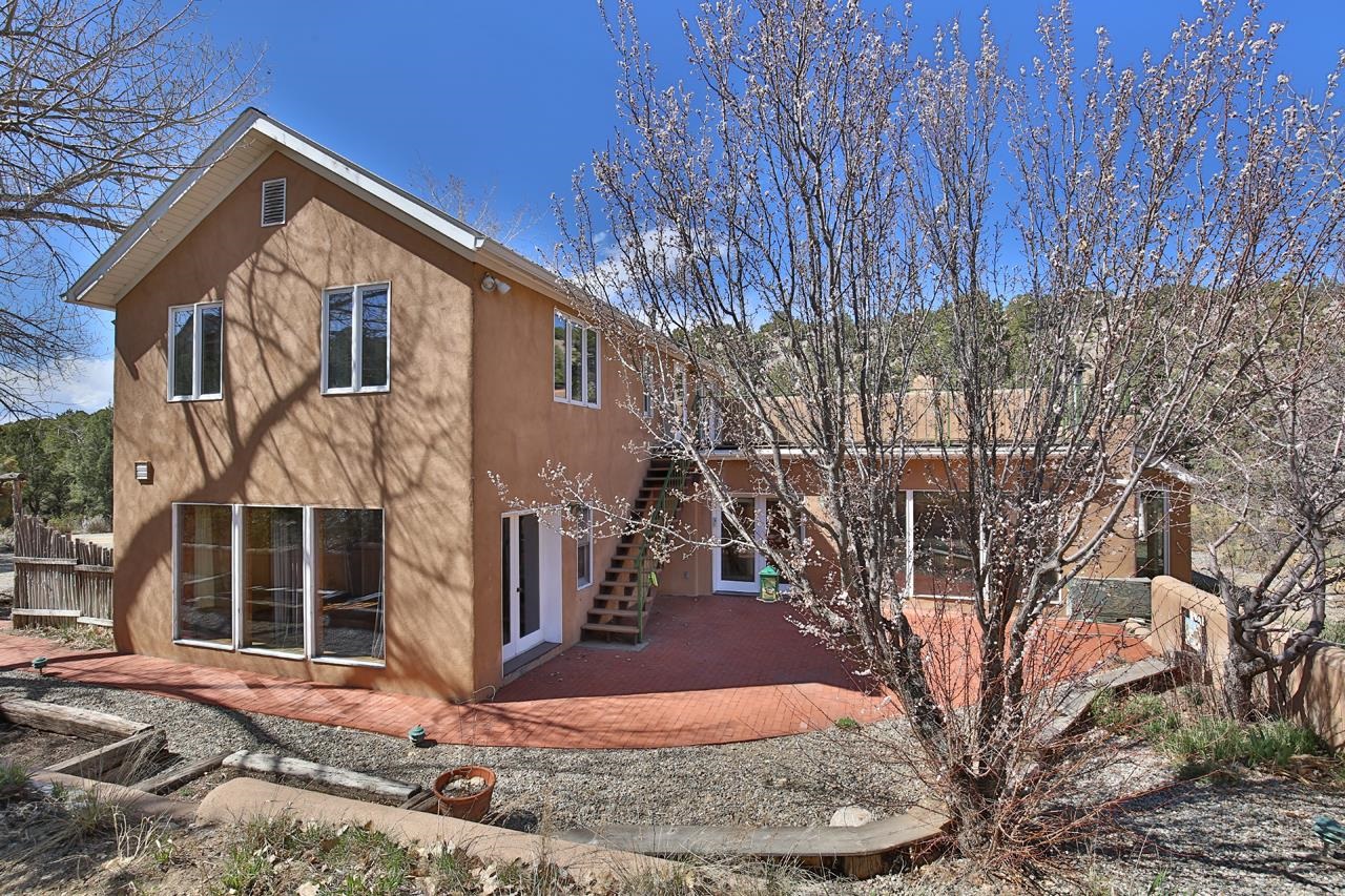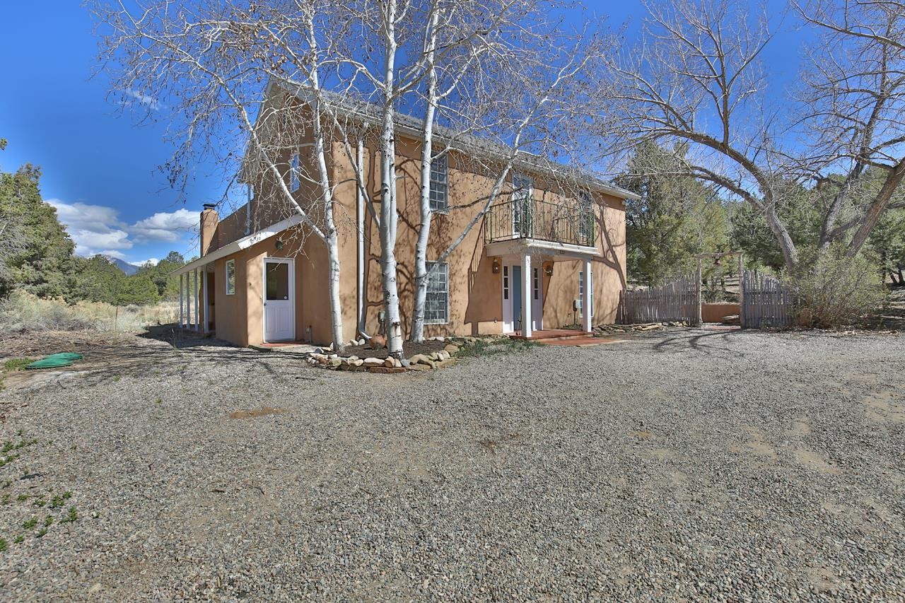 GOODBYE WORLD, HELLO MOTHER NATURE! Tucked at the end of the road in picturesque Sandia Canyon you’ll find a home that offers the epitome in peace, quiet, and privacy yet has fiber optic connections to the real world. Set on 4.3 acres and bordered by Taos Pueblo land this beautiful 3BR/3BA, 2,352 sq ft home with studio and infinity pool offers options for living, creating, or even working - if you have to. This 2-story adobe and frame home features a great room with high ceilings, a grand fireplace, and big windows to take in the views and bring the outside in. An antique wood stove will warm even the coldest of hearts. Cook feasts for a few or many in the country kitchen with lovely pantry and dine watching the deer mosey past. Upstairs you’ll find 2 bedrooms and 2 baths plus a kitchenette which has a separate entrance providing options for the owner. This could offer the flexibility for a multi-generational property. Of course, mountain views abound. Plant vegetables in the raised beds in the Spring and have garden parties in the Summer on the large patio. Invite friends for cocktails on the upper deck and be awed by the mountain views or just relax and take a snooze. Missing water in our high desert? Enjoy the infinity pool year-round and make use of the 410 sq.ft. studio to hone your creative talents or repurpose to suit your lifestyle + 2 car detached carport/garage. (Studio houses infinity pool and is heated with gas wall heater). Say “Hello” to the birds and wildlife and goodbye to neighbors too close and the sounds of the city. Relax, refresh, renew! Convenient access to town and Taos Ski Valley.