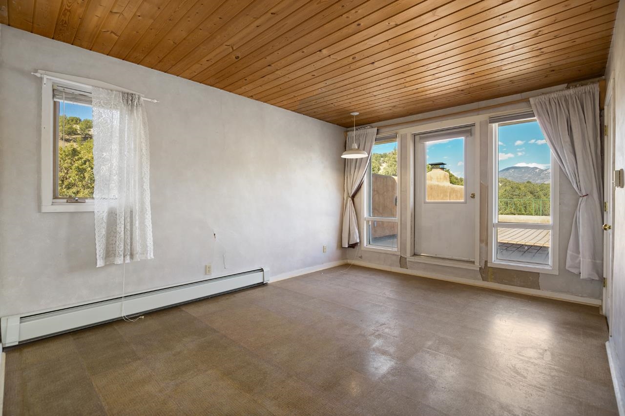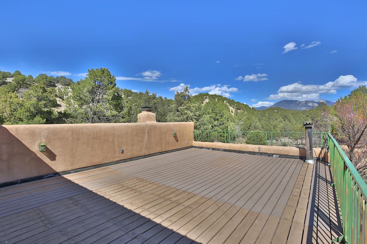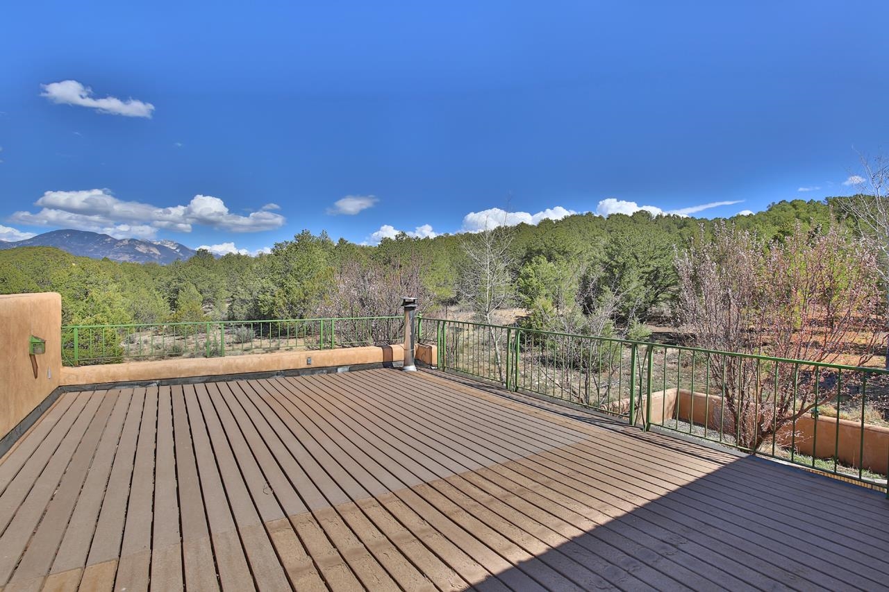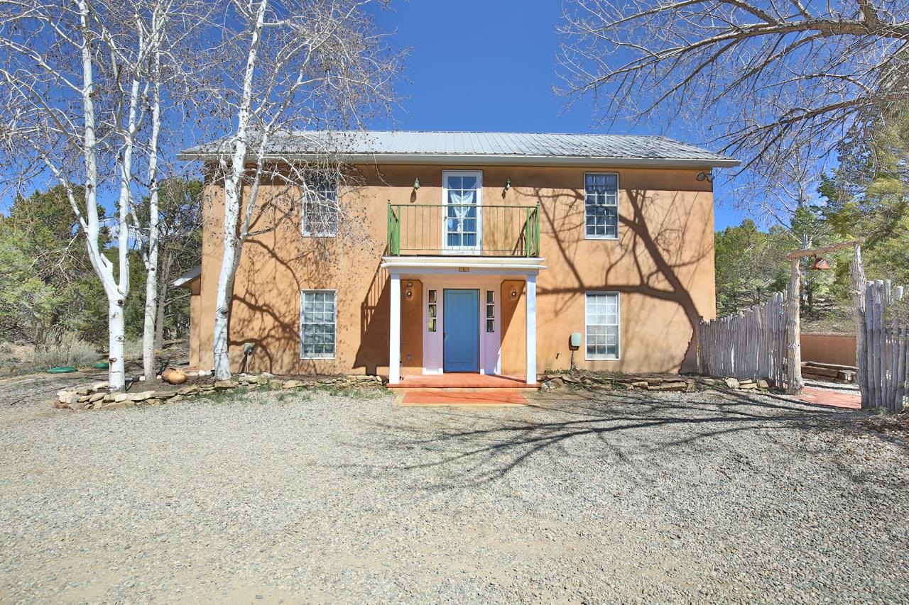 GOODBYE WORLD, HELLO MOTHER NATURE! Tucked at the end of the road in picturesque Sandia Canyon you’ll find a home that offers the epitome in peace, quiet, and privacy yet has fiber optic connections to the real world. Set on 4.3 acres and bordered by Taos Pueblo land this beautiful 3BR/3BA, 2,352 sq ft home with studio and infinity pool offers options for living, creating, or even working - if you have to. This 2-story adobe and frame home features a great room with high ceilings, a grand fireplace, and big windows to take in the views and bring the outside in. An antique wood stove will warm even the coldest of hearts. Cook feasts for a few or many in the country kitchen with lovely pantry and dine watching the deer mosey past. Upstairs you’ll find 2 bedrooms and 2 baths plus a kitchenette which has a separate entrance providing options for the owner. This could offer the flexibility for a multi-generational property. Of course, mountain views abound. Plant vegetables in the raised beds in the Spring and have garden parties in the Summer on the large patio. Invite friends for cocktails on the upper deck and be awed by the mountain views or just relax and take a snooze. Missing water in our high desert? Enjoy the infinity pool year-round and make use of the 410 sq.ft. studio to hone your creative talents or repurpose to suit your lifestyle + 2 car detached carport/garage. (Studio houses infinity pool and is heated with gas wall heater). Say “Hello” to the birds and wildlife and goodbye to neighbors too close and the sounds of the city. Relax, refresh, renew! Convenient access to town and Taos Ski Valley.