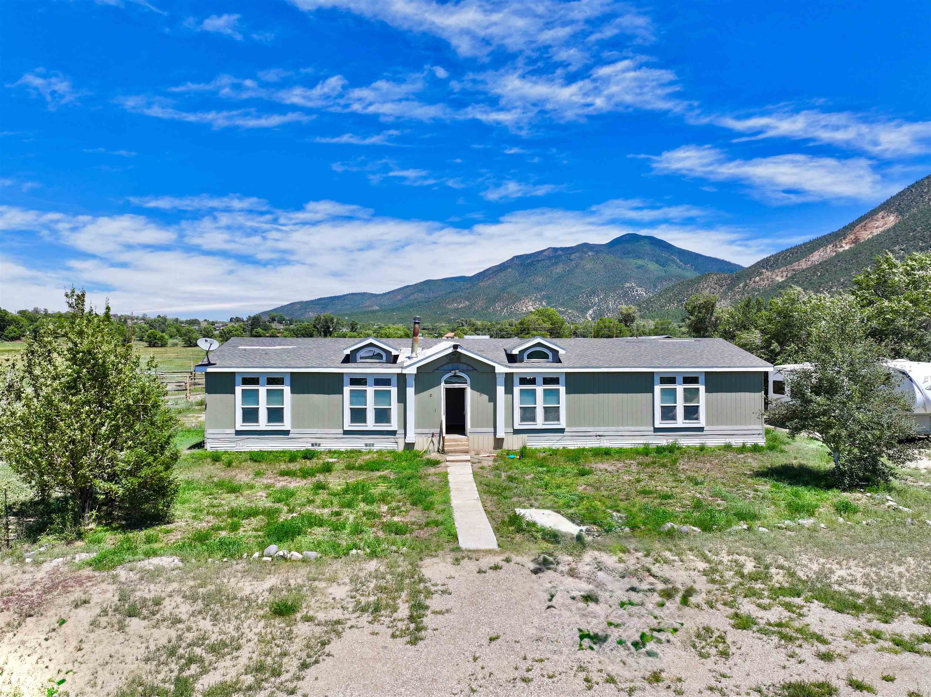This spacious double-wide manufactured home, situated in the picturesque valley of Questa, New Mexico, off Cabresto Road, is now available for your purchase. Boasting an impressive 2,300 square feet of living space and occupying an acre of land, this home features four bedrooms and two bathrooms. Its wide-open layout provides ample storage space, ensuring plenty of room for comfortable living as well as for entertaining. The home is surrounded by the majestic Sangre de Cristo Mountains, offering an array of outdoor activities and adventures. Although this home has lots to offer its future new owners, it also presents some challenges, repairs and finishings in order to call this place home. To learn more about this home and to determine if it is the right fit for you or your family, schedule your showing today!