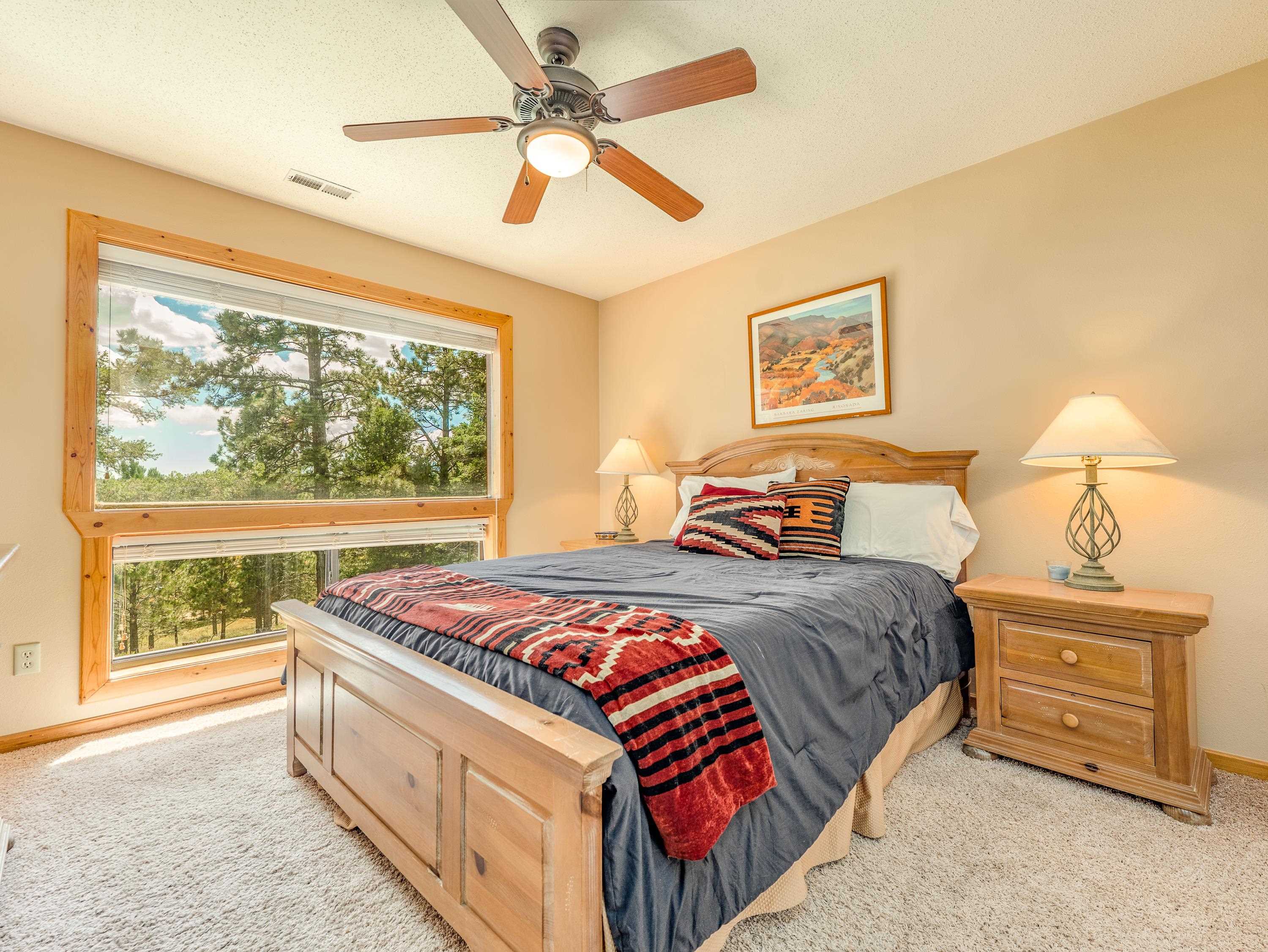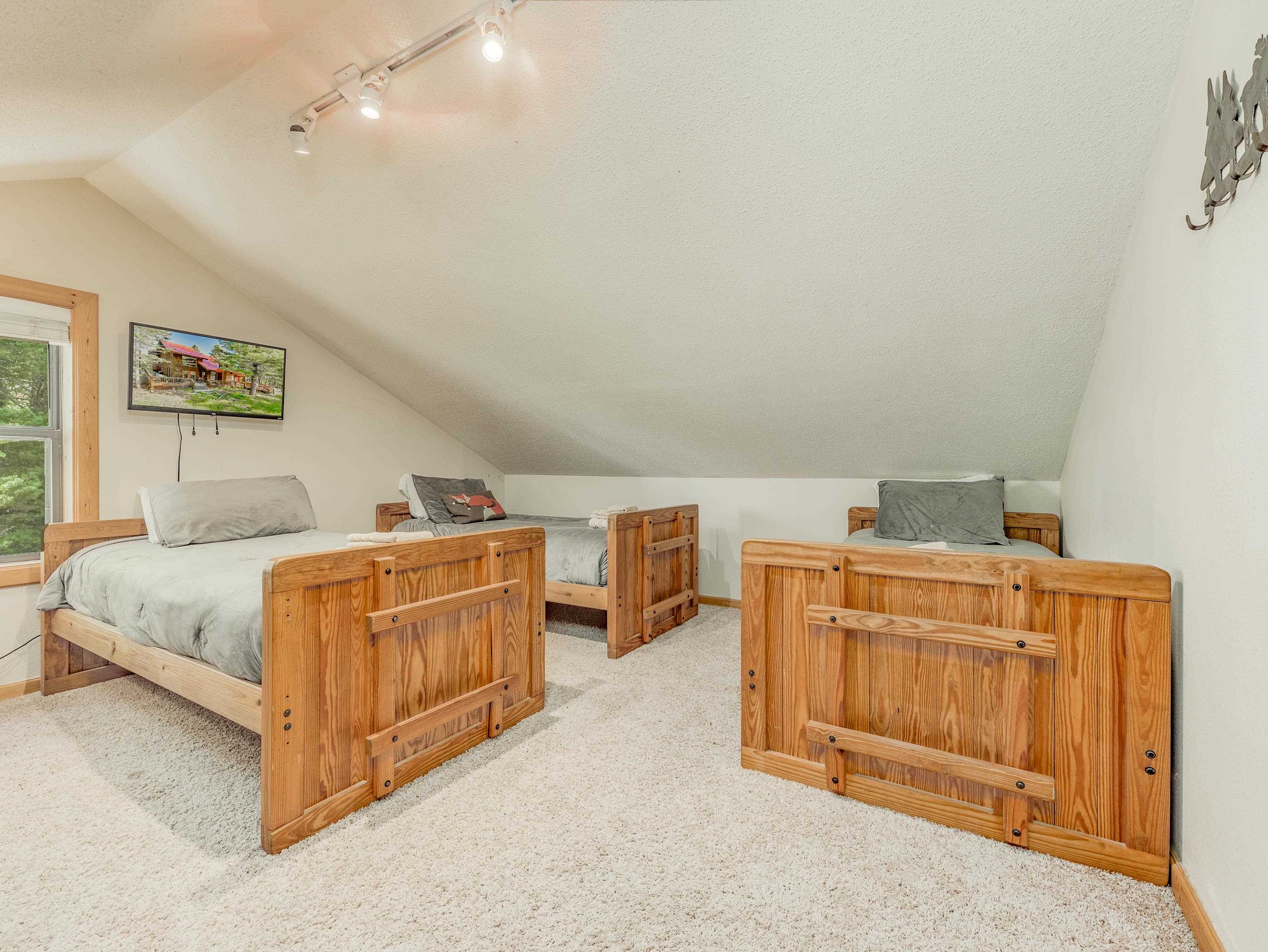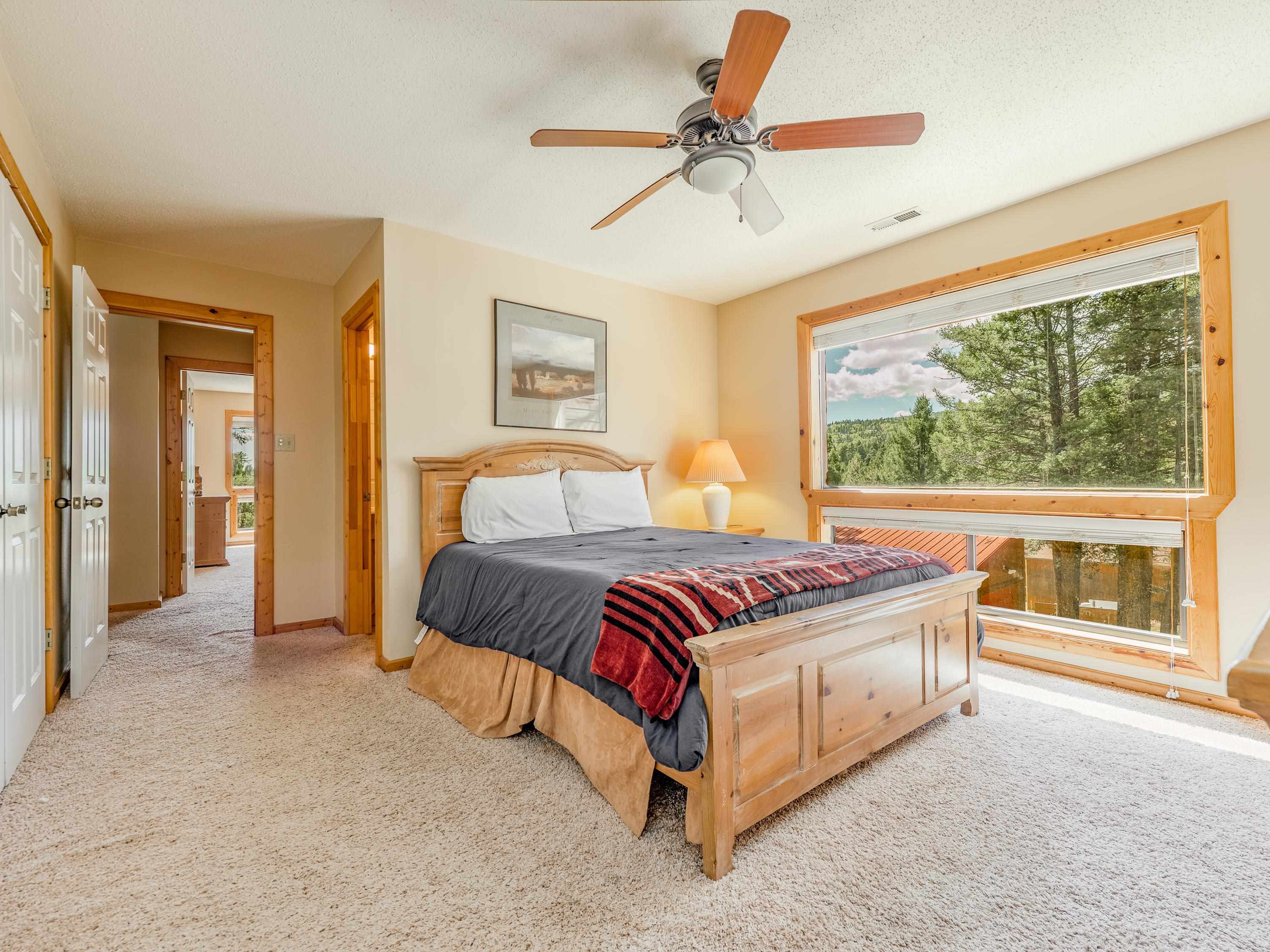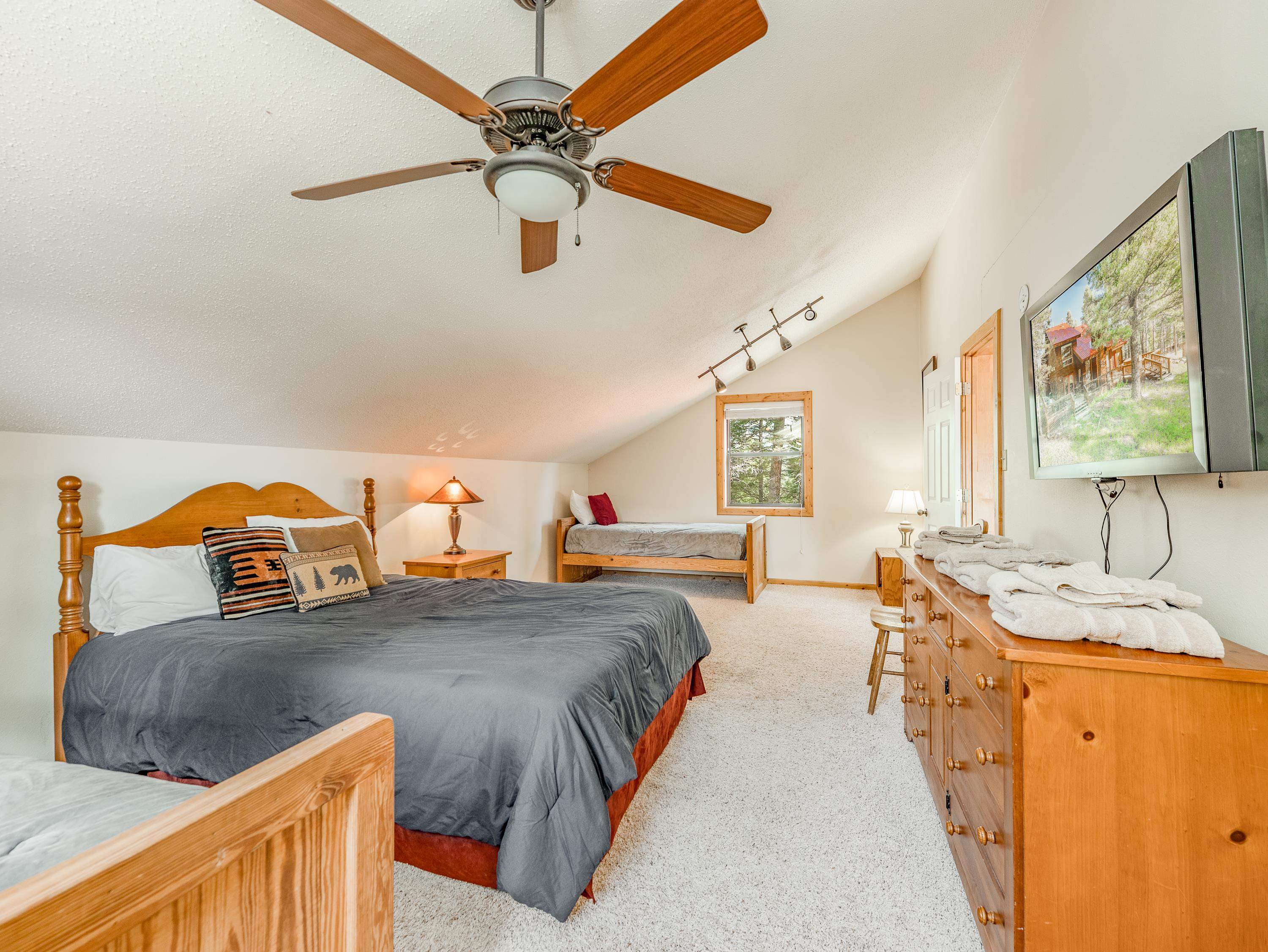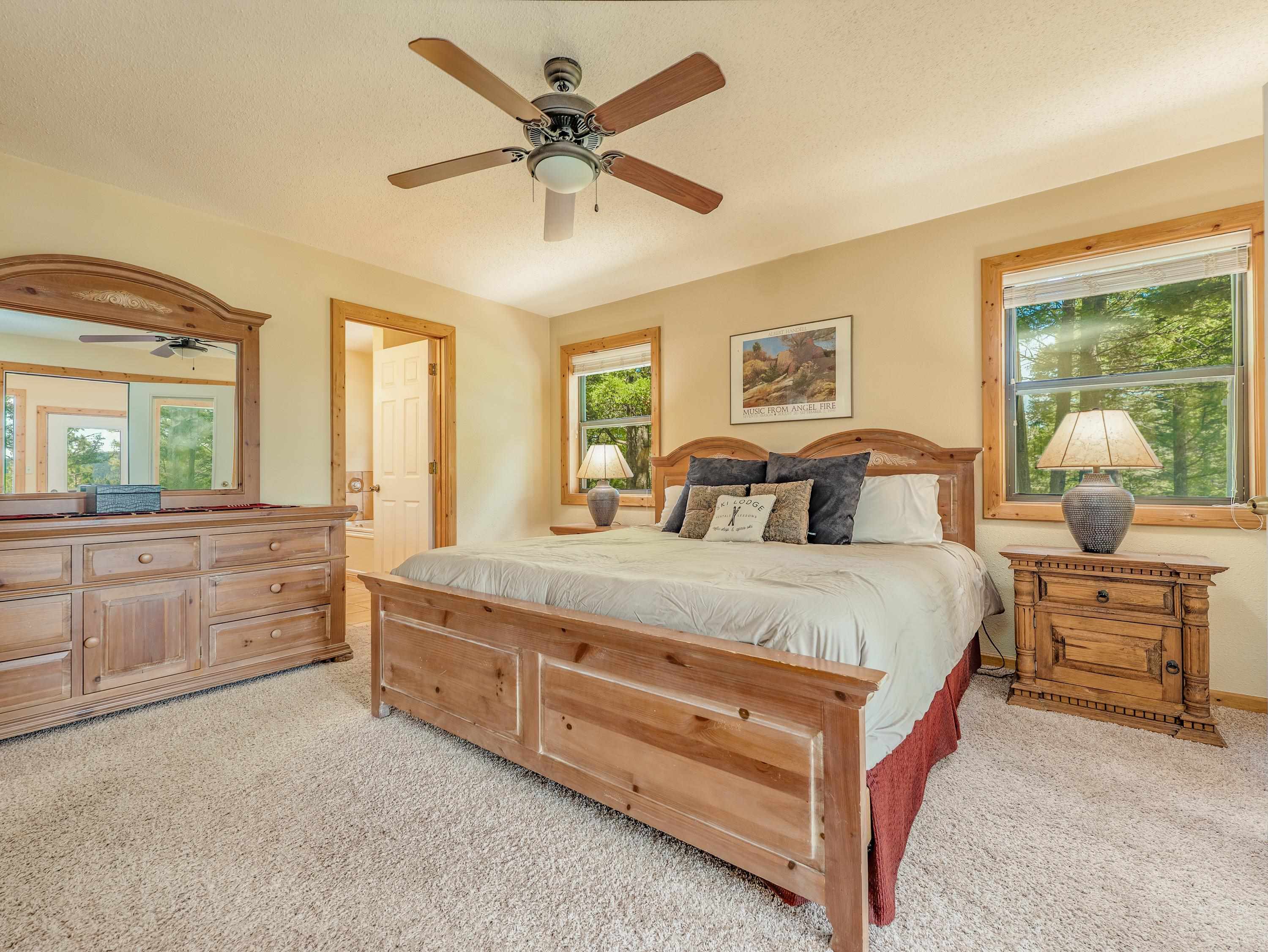 Get ready to create mountain memories with the entire family with 96 Cimarron Trail. With 5 spacious bedrooms, 4 full bathrooms, a half bath, and a bonus den, this home has room for everyone, plus more! Situated on .94 acres with a paved circle driveway, this home can be enjoyed inside and out with a yard that’s perfect for outdoor living and games, large front and rear decks, AND the outdoor hot tub! Inside, relax in the open living area featuring vaulted ceilings, hardwood floors and a wood burning fireplace surrounded by stacked stone. The adjacent kitchen has tile flooring and tongue and groove wood ceilings with a dining area leading to the back deck. Down the hall is the second living area / game room with hardwood floors and ceilings, a fireplace, pool table and a wet bar. The primary bedroom is on the main floor with an attached sunroom and an ensuite bath with a soaking tub and shower. The upstairs features a loft, two full baths, three guest bedrooms and a bunk room (fifth bedroom) that is accessed through the fourth bedroom. 96 Cimarron Trail comes fully furnished and is ready to be your family’s favorite getaway, or a turnkey vacation rental opportunity.