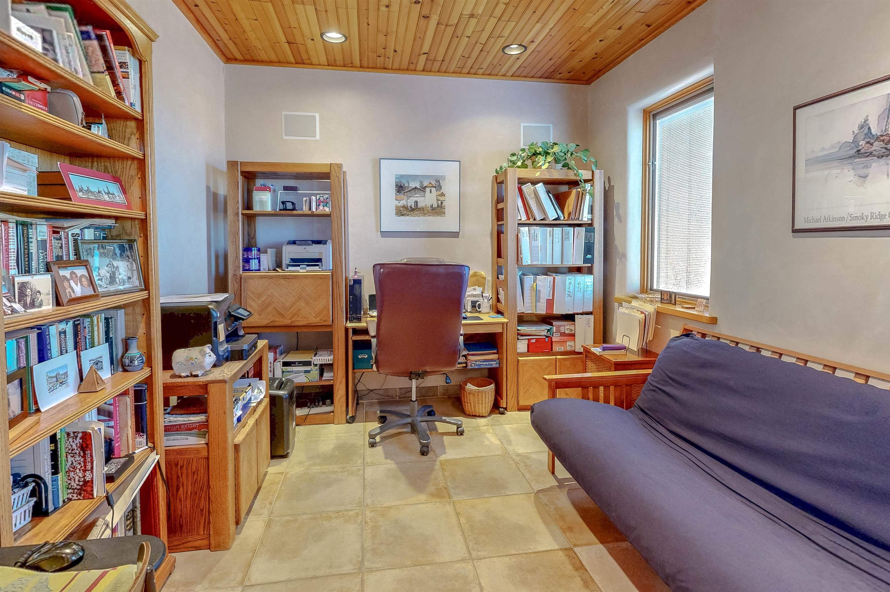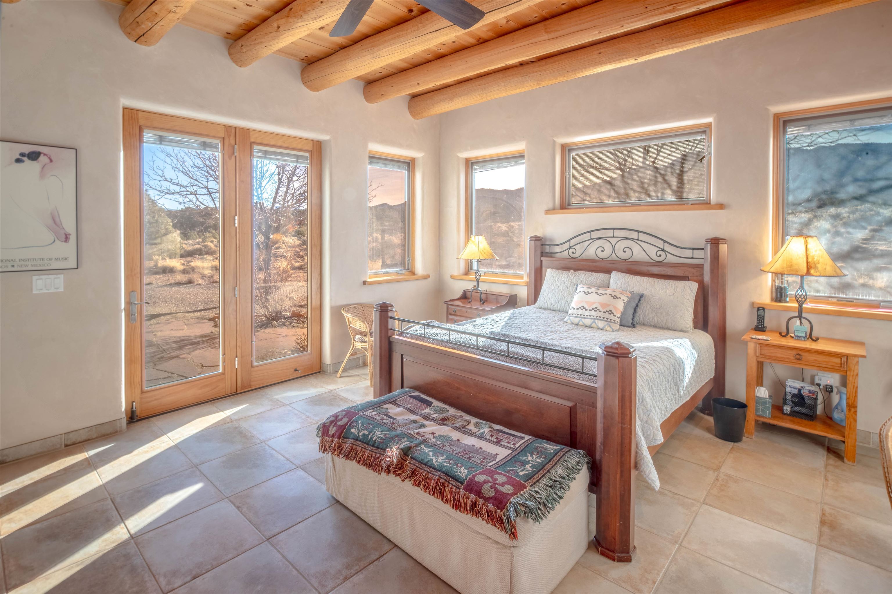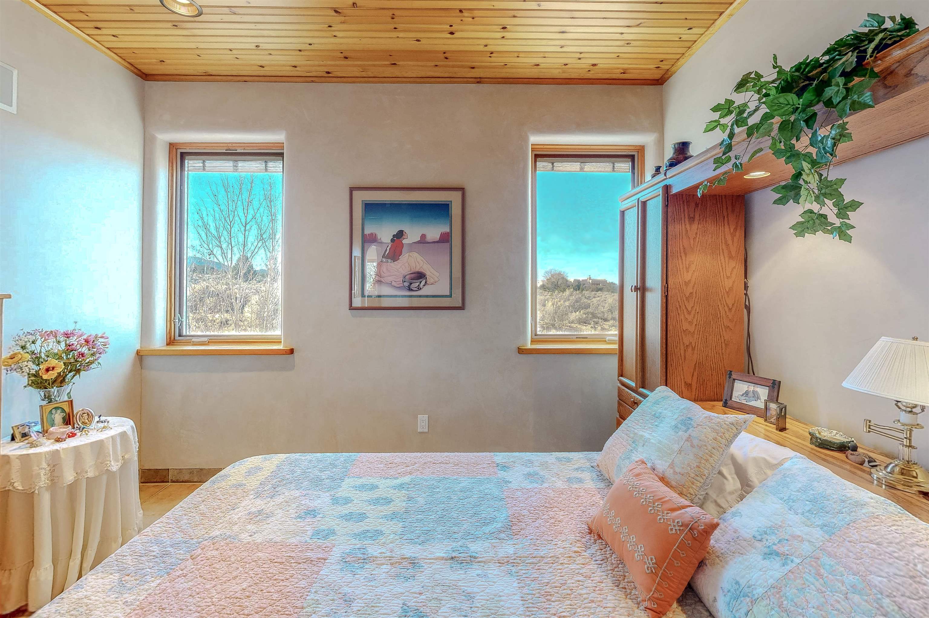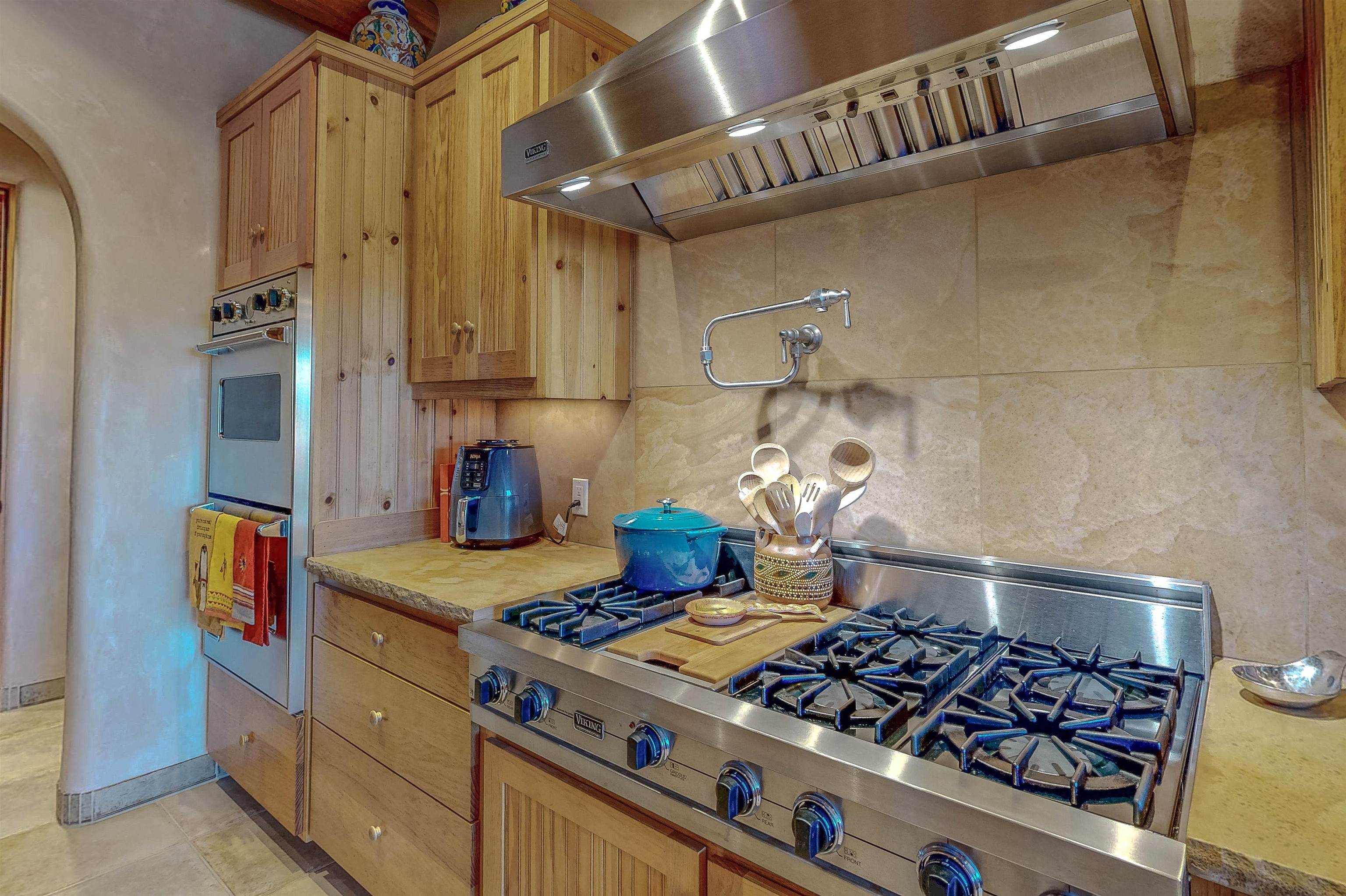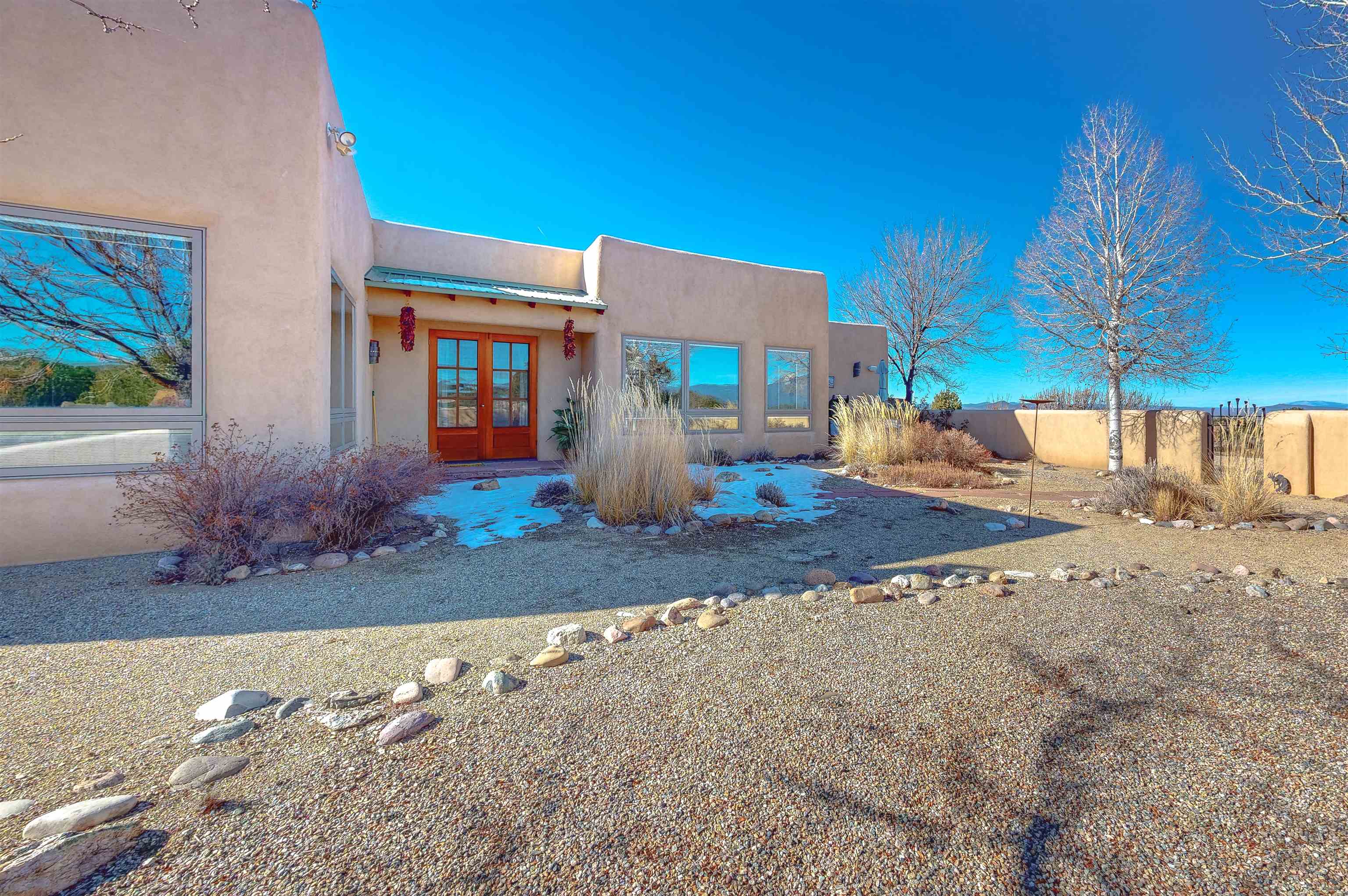 Introducing La Esencia de El Mirador, a home designed for the essence of entertaining: sharing life, good food, and spectacular views. Located in the peaceful county setting of Ranchos de Taos in the exclusive El Mirador subdivision, La Esencia de El Mirador is an exceptional single-level residence offering approximately 2,600 square feet of refined living space, masterfully crafted by respected builder Ken Wolosin - known for his quality construction and meticulous attention to detail. A private security gate welcomes you onto the property, immediately setting the tone for the thoughtful design, elevated finishes, and enduring craftsmanship found throughout. Inside, the open-concept floor plan lives effortlessly with no interior steps, elegant porcelain stone floors, and radiant in-floor heating that extends into the expansive 779 sq ft heated garage with storage areas. The inviting living room is anchored by a cozy fireplace and framed by Pella triple-pane R-4 windows, filling the home with natural light while delivering outstanding energy efficiency and serene comfort. Pella doors and windows are featured throughout, with enclosed blinds for additional insulation, and reinforcing the home’s commitment to quality and performance. The chef’s kitchen is a true gathering space, thoughtfully designed for both daily living and entertaining. Viking appliances - including a gas cooktop with hood and double electric wall ovens - are complemented by stone countertops, a dedicated coffee counter, and a well-planned pantry area complete with a wine fridge and microwave. A separate wine closet adds an extra layer of sophistication and convenience rarely found at this level. The primary suite offers a private retreat, featuring a custom California walk-in closet and a luxurious spa-inspired bathroom with an oversized soaking tub and bidet. Two additional bedrooms and a beautifully appointed full guest bath provide comfort and flexibility for family and guests alike. Additional upgrades enhance both form and function, including a Bry fire-resistant roof, ceiling fans in every room, and a security system installed during construction. The spacious utility room includes a deep sink, cabinetry, ample storage, and a gas dryer. The radiant-heated garage is fully finished and exceptionally well-equipped, offering a workbench, wall organizers, a storage room, and a dedicated mechanical room - ideal for projects, hobbies, or outdoor gear. The roof is a flat roof with a 1/2" per every foot slope instead of the standard 1/4" per foot slope, allowing for the rain to spew out of the canales feeding all the Aspen trees and wildflowers. The home was also built with 2" of foil faced styrofoam insulation on the exterior and beneath the plaster creating an R40 insulation thickness value. The current owner is the original owner of this home and was heavily involved in its construction and has kept meticulous maintenance records for the entire 18 years. The home is also being sold mostly furnished. Set on 11.93 quiet, open acres, La Esencia de El Mirador offers remarkable privacy, sweeping views, and space to savor the surrounding landscape - an increasingly rare opportunity in today’s market. With superior craftsmanship, a thoughtfully designed layout, and high-end finishes throughout, this is a home created to be experienced, shared, and enjoyed. This listing has very detailed exterior and interior videos for your viewing pleasure.