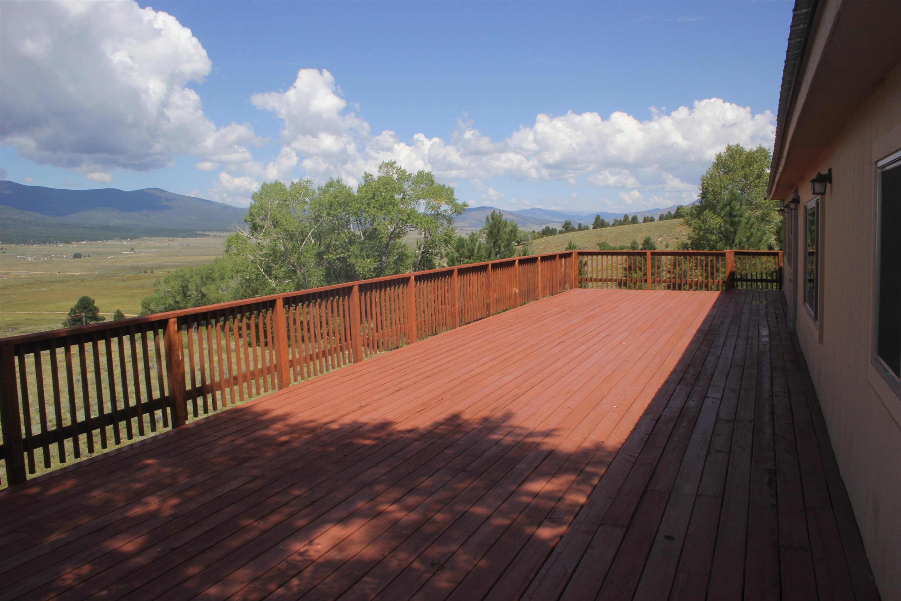 Quiet, panoramic views surround this home in every direction — from Wheeler Peak to the Angel Fire ski slopes, all the way to Eagle Nest Lake. This 3-bedroom, 2-bathroom home offers spacious living with a large kitchen featuring plenty of cabinet storage and a big living room complete with a cozy wood-burning stove. The master bedroom is generously sized and boasts stunning mountain views, while the home’s hillside perch opens up sweeping vistas of the valley below. Additional highlights include a large 3-car garage, a run for your dog, brand-new windows and doors, and a tankless water heater — all upgrades that enhance comfort and efficiency. Step out onto the expansive front deck to enjoy the incredible outdoor living space and take in the spectacular scenery. The home will be mostly furnished and is ready for you to add your personal touches to make it your perfect mountain retreat.
