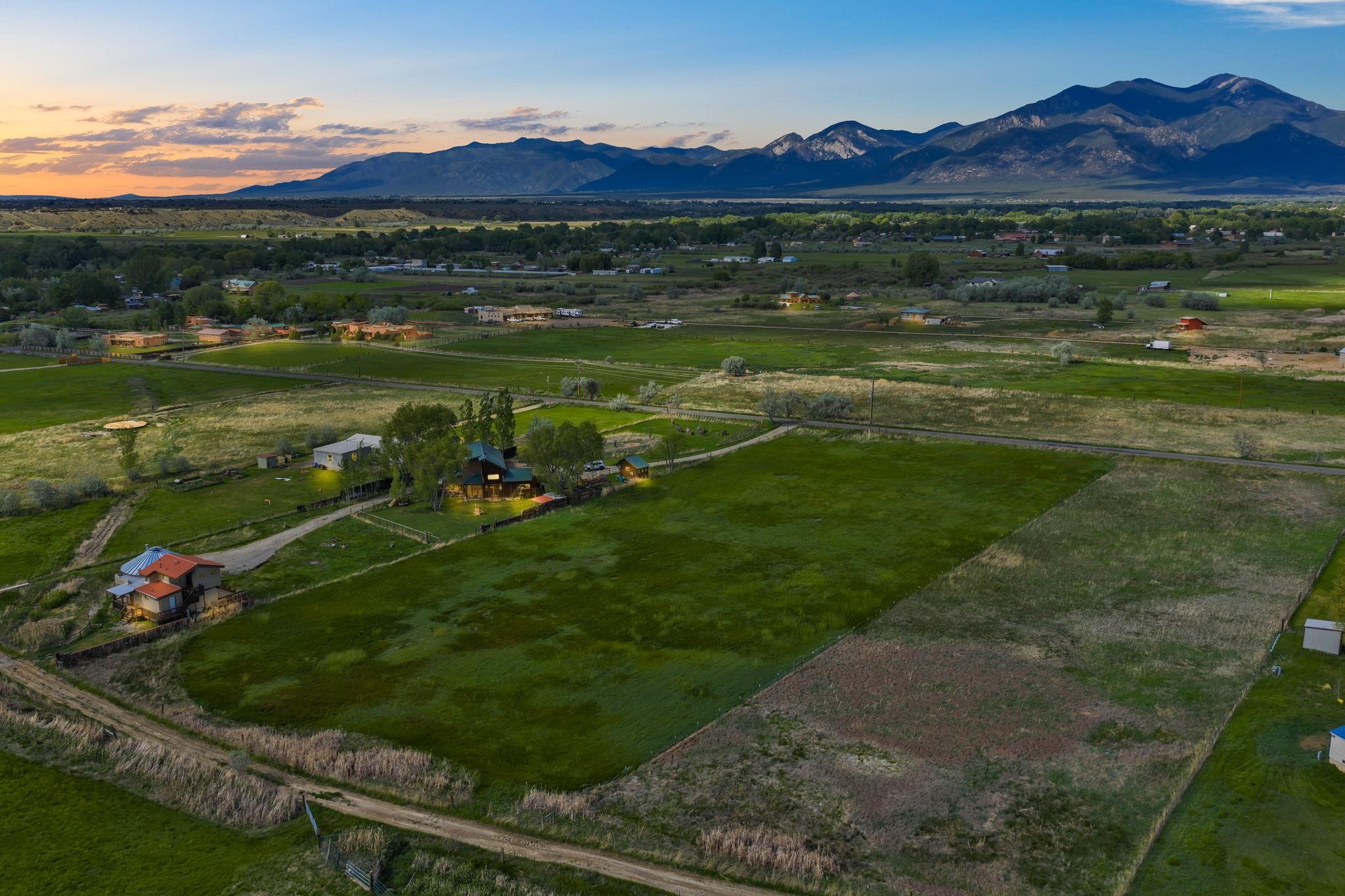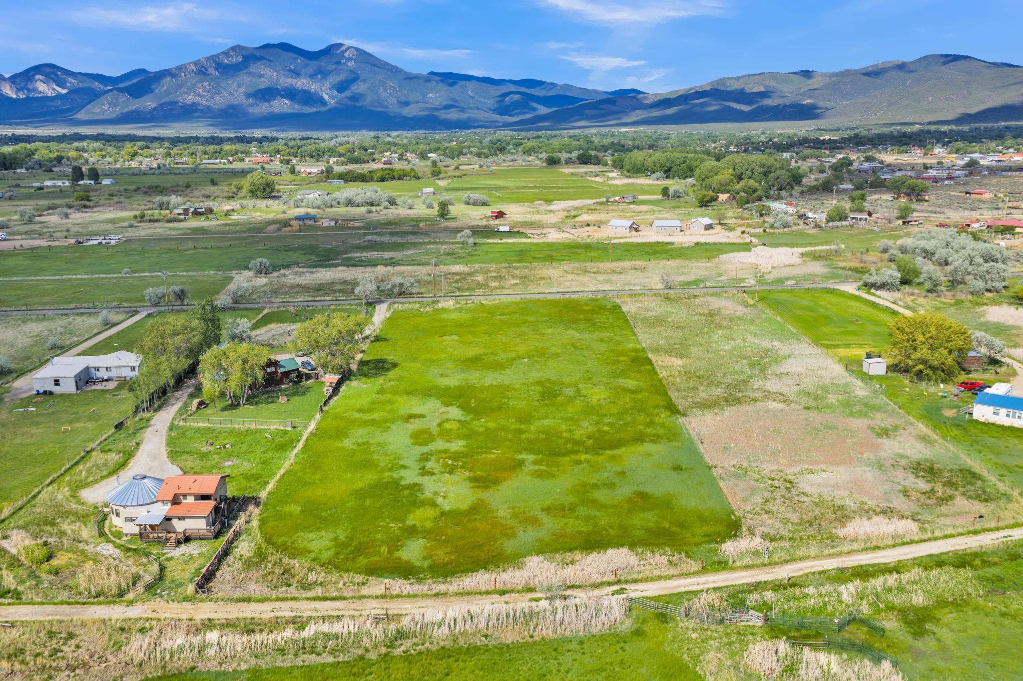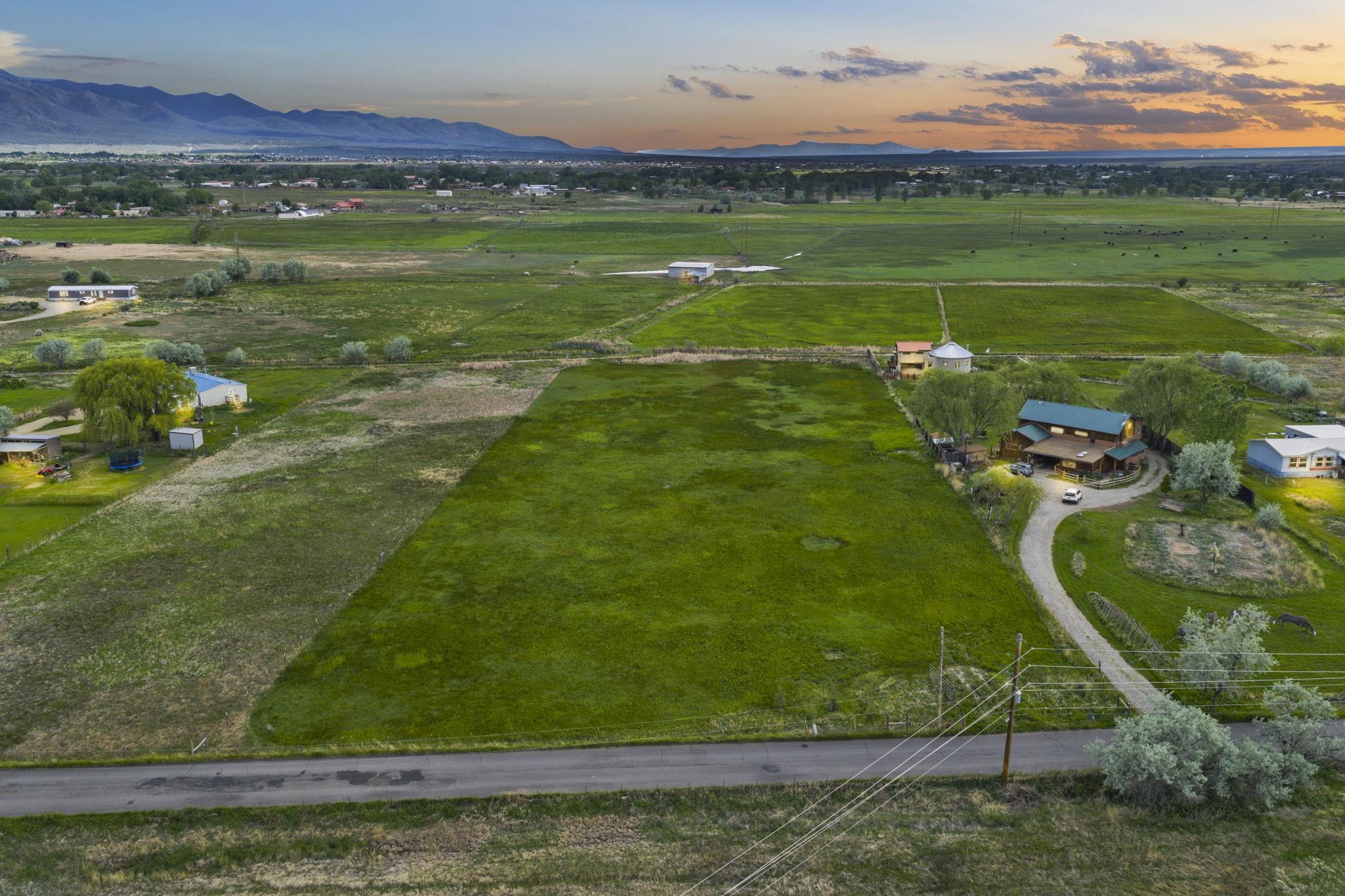 Paradise in the Heart of Taos ~ Perfectly set in a lush green valley pasture within the Taos Valley minutes from Town, you will encounter this incredibly convenient, private, and bountiful 2.98 acres of land ready for you to make HOME. Upon first encounter, you will feel the magic in every sense, and especially so if you're lucky enough to be here for Sunset and Sunrise, then you're in for a show. This private, fully fenced lot with a gate has electric and natural gas ready to go already at the lot, drilling for water won't take much effort, and you have options for septic. If you like gardening and growing things, you love love the topography because things will likely grow fast. Located on a paved road between Lower Ranchitos Road and Camino del Medio, this property couldn't be in a better spot with all of the amenities within minutes, and an easy outlet to recreational activities at Taos Ski Valley, the Rio Grande River, Hiking and Biking at the Slide Trail, and trout fishing all around. A virtual depicted home has been placed in a photo to spark creativity. This property in paradise is special, make it your own.
