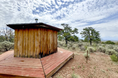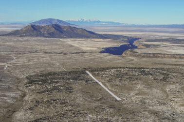 - Directions: Drive west from the Old blinking light, over gorge bridge to Cerro Montoso Rd on right (Also ref to as B-007 on some maps). Turn and Drive east on Montoso Rd.towards gorge ~3.5 miles. Then left (north) on Camino de Lovato (no sign but last turn before you go down hill towards John Dunn Bridge). Follow this road which is maintained for almost exactly 8 miles. You will see the Ranch entrance (in pictures) on right. After first gate you are on property. Follow narrow road to the airstrip. Cross airstrip and continue through second gate up hill to improvements. Views overlook RG Gorge, north to south.