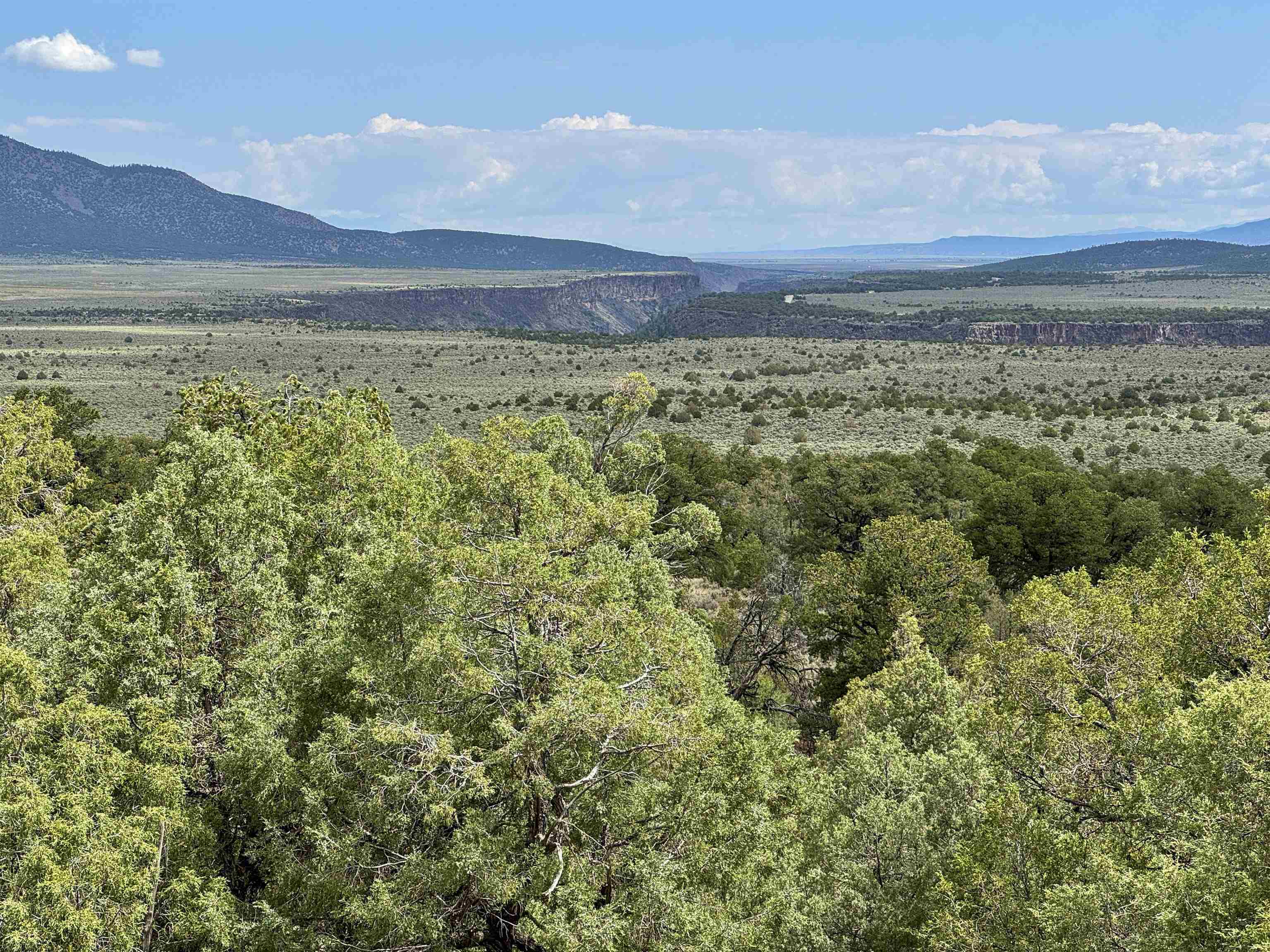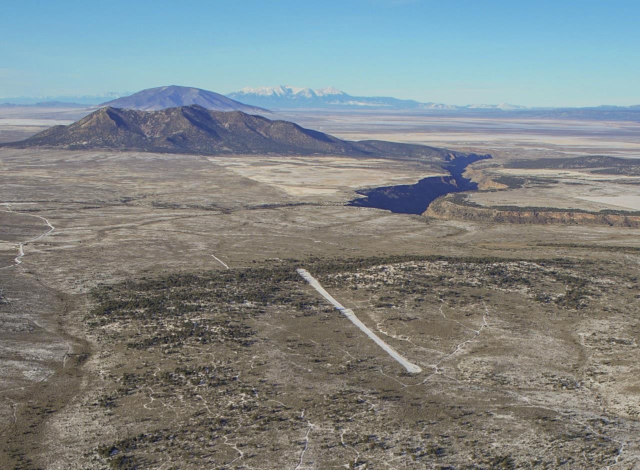 - Directions: Drive west from the Old blinking light, over gorge bridge to Cerro Montoso Rd on right (Also ref to as B-007 on some maps). Turn and Drive east on Montoso Rd.towards gorge ~3.5 miles. Then left (north) on Camino de Lovato (no sign but last turn before you go down hill towards John Dunn Bridge). Follow this road which is maintained for almost exactly 8 miles. You will see the Ranch entrance (in pictures) on right. After first gate you are on property. Follow narrow road to the airstrip. Cross airstrip and continue through second gate up hill to improvements. Views overlook RG Gorge, north to south.