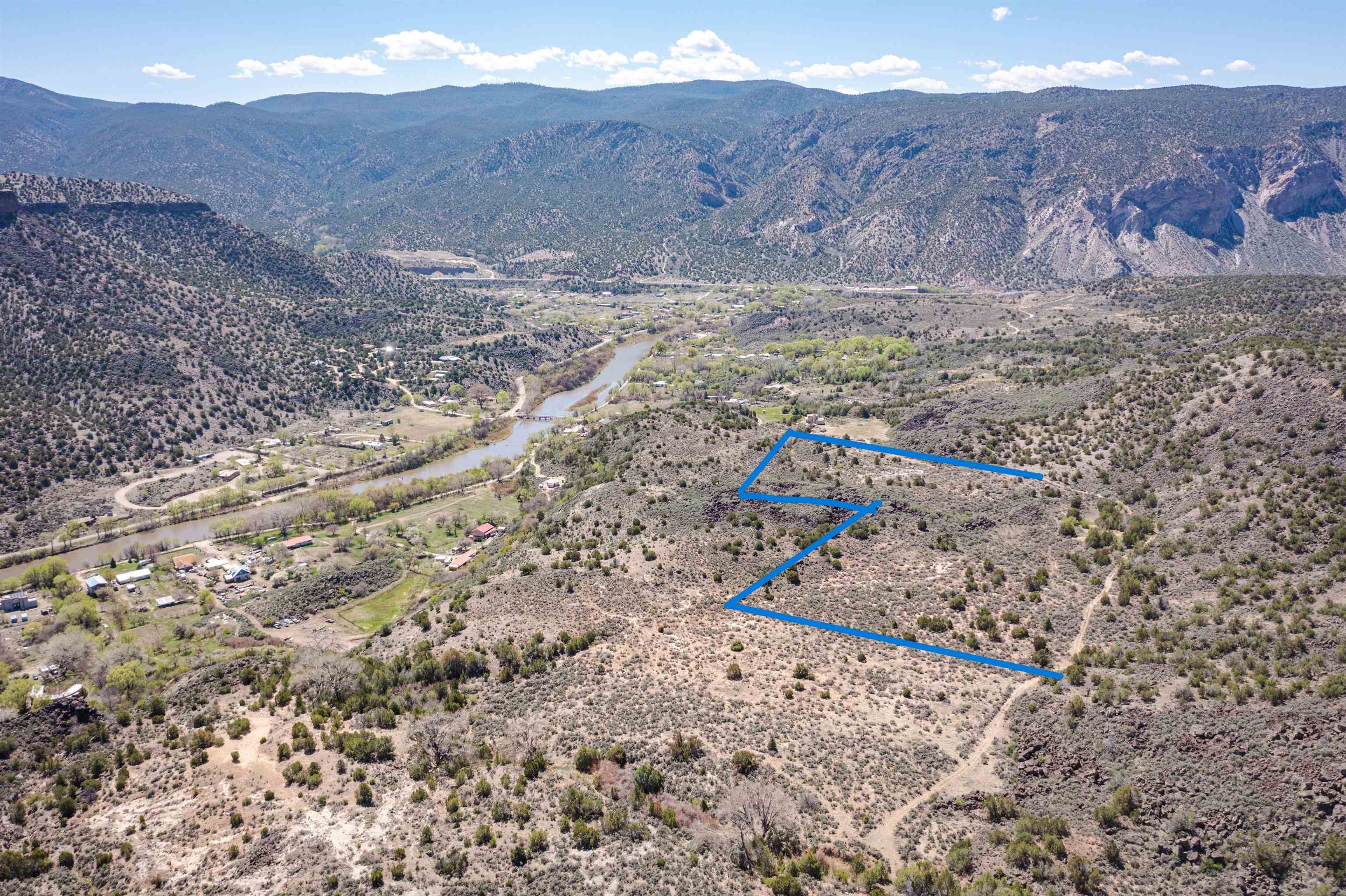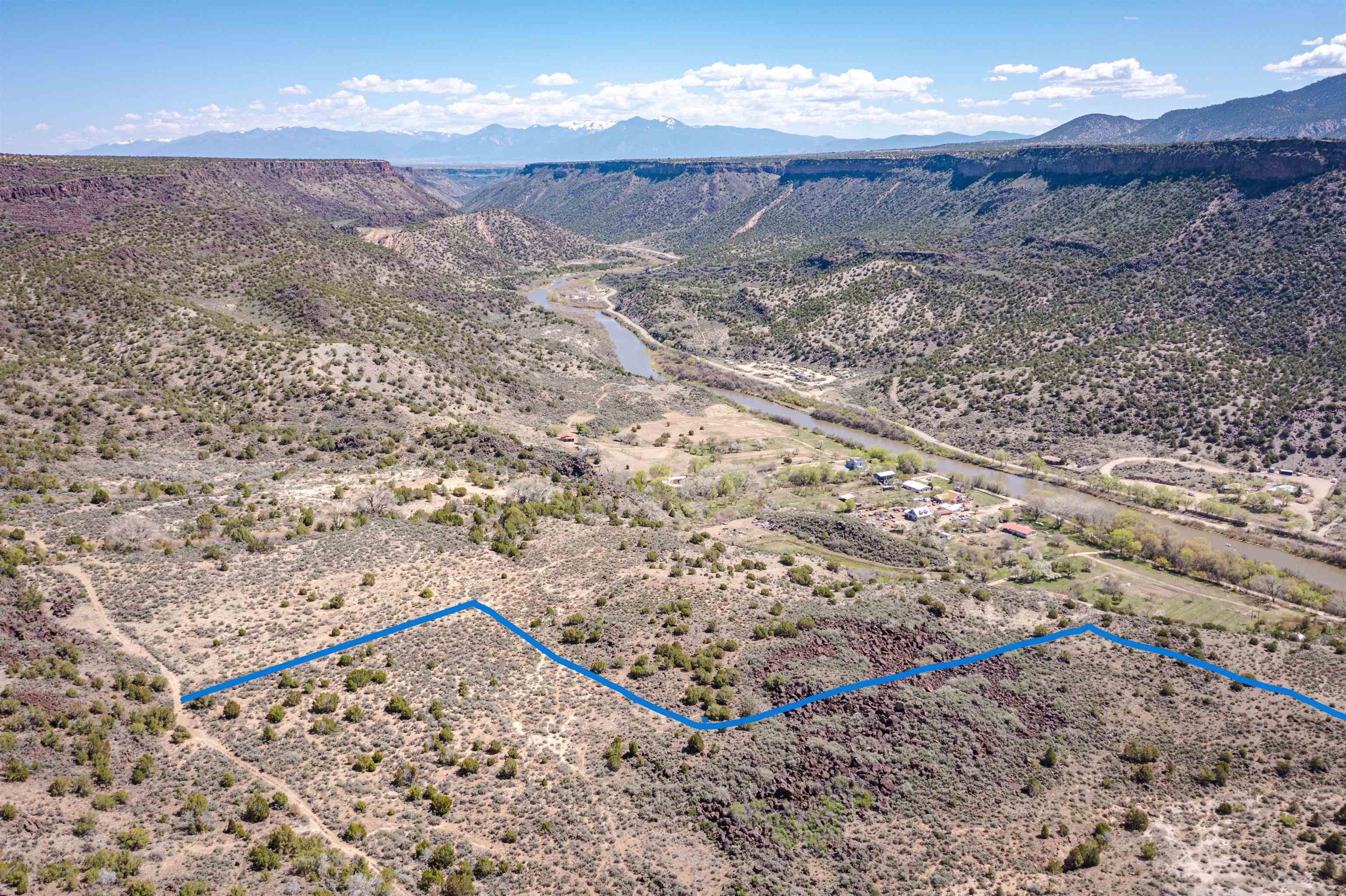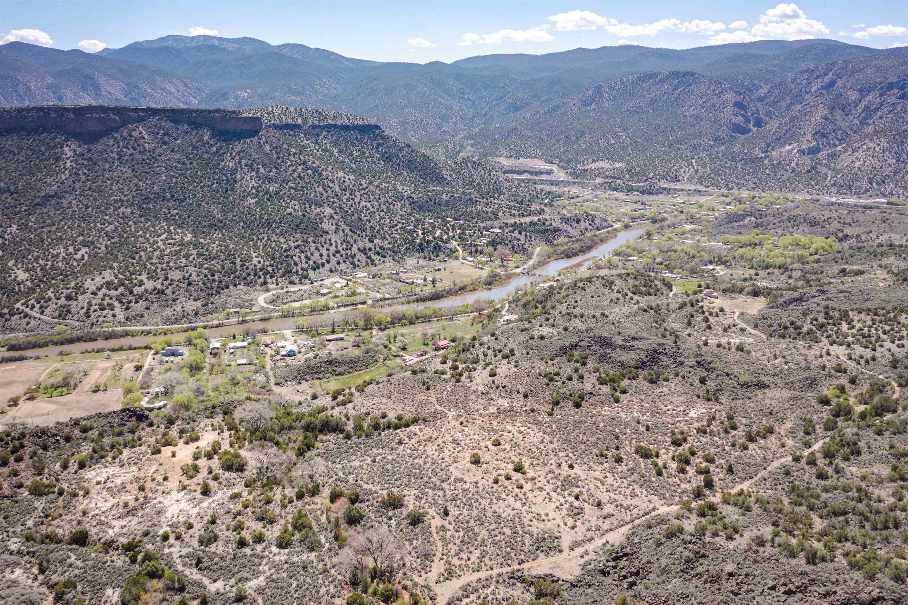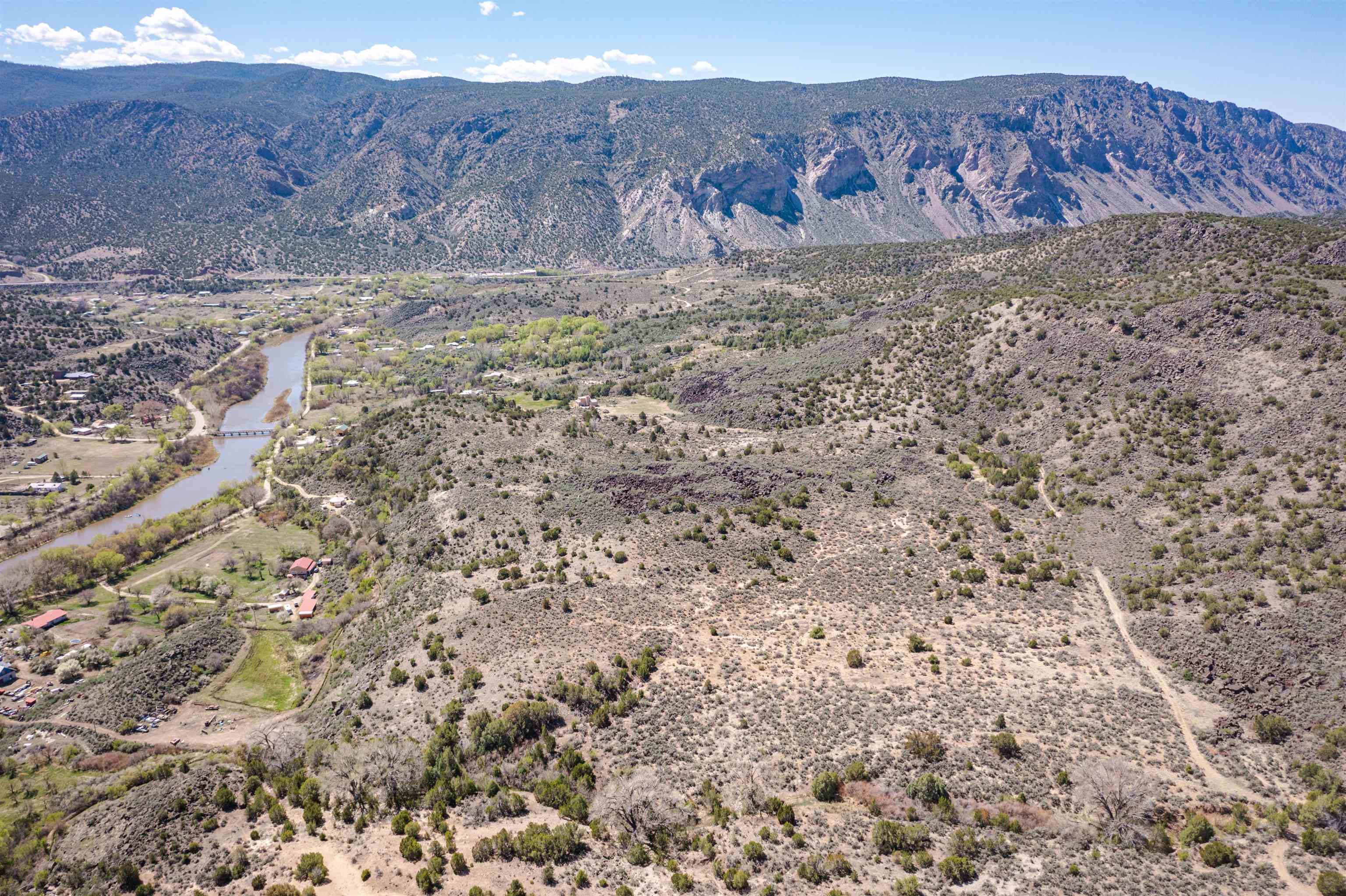 This Very secluded 16+ acre mesa-top lot is a rarity. From this gently sloping perch you look over the Pilar valley of the Rio Grande with unbelievable views northwards towards Lobo Peak and Vallecitos Peak in Taos. To the east you look towards Picuris Mtn and behind you is the Rio Grande National Monument and to the SW is the Carson National Forest. Blessed with a year round spring in the SW corner, living here you will experience the sights and sounds and seasons of nature without city lights, and without city sounds. Elk, bob-cat, coyote, deer regularly move through this land on their way to the river to drink; birds migrating up the Rio Grande include golden eagles, bald eagles, osprey and flocks of songbirds. And yet her you are just a short 20 min drive to Taos or back down valley about 1 hour to Santa Fe. This lot is recently surveyed and has recorded easements for access in place - so you can bring to life your imagination of life lived in nature. Marked up images are meant to convey approximate location of property boundaries; on the westerly boundary the access road (that goes towards Carson) separates this tract from BLM lands.