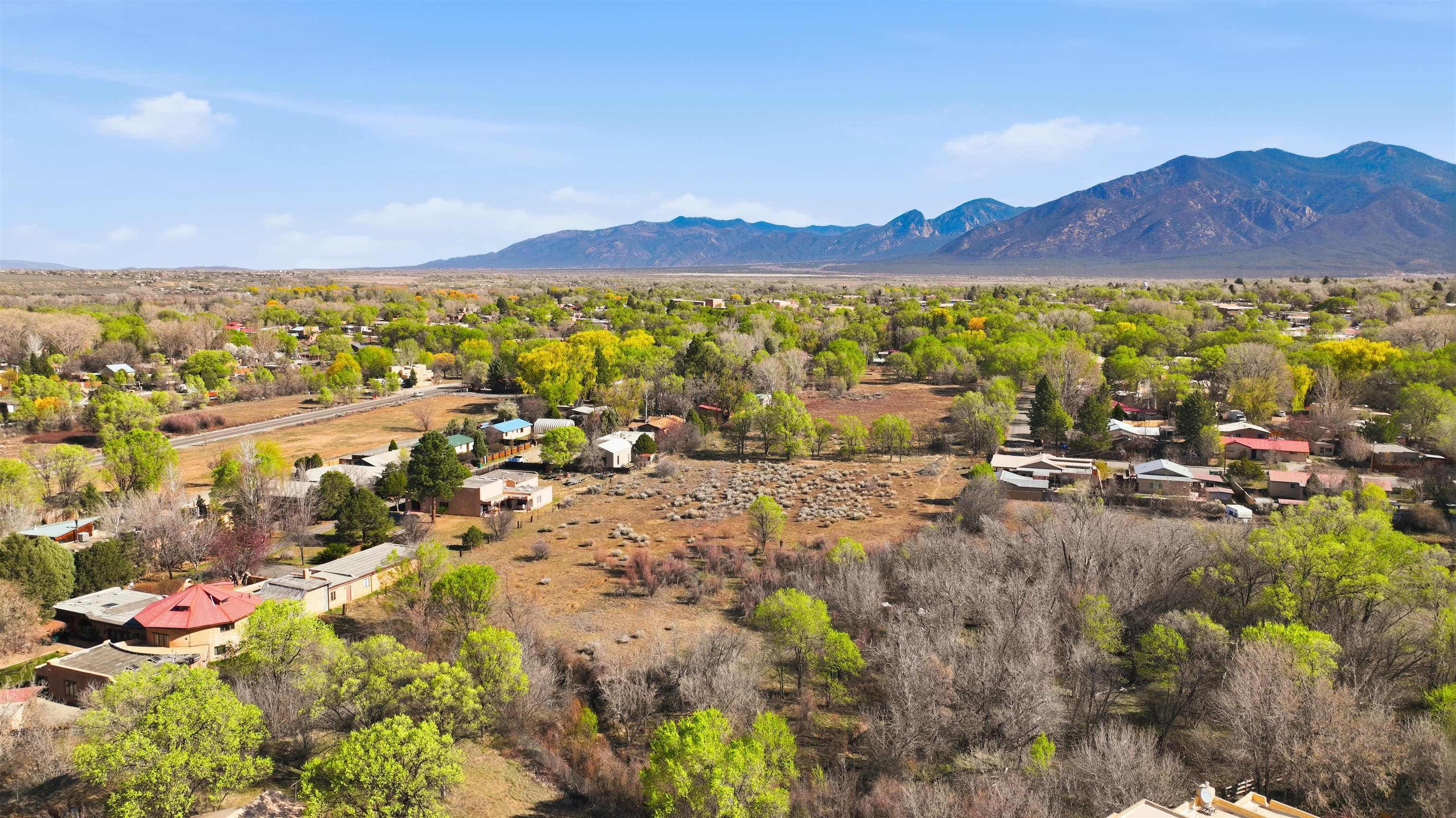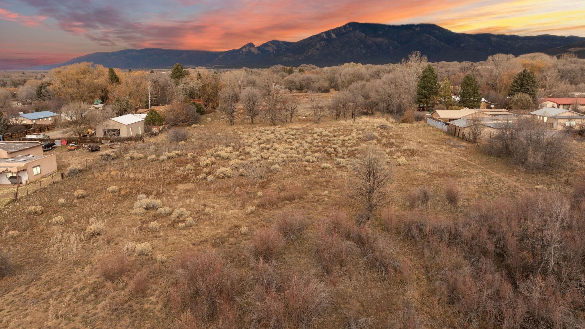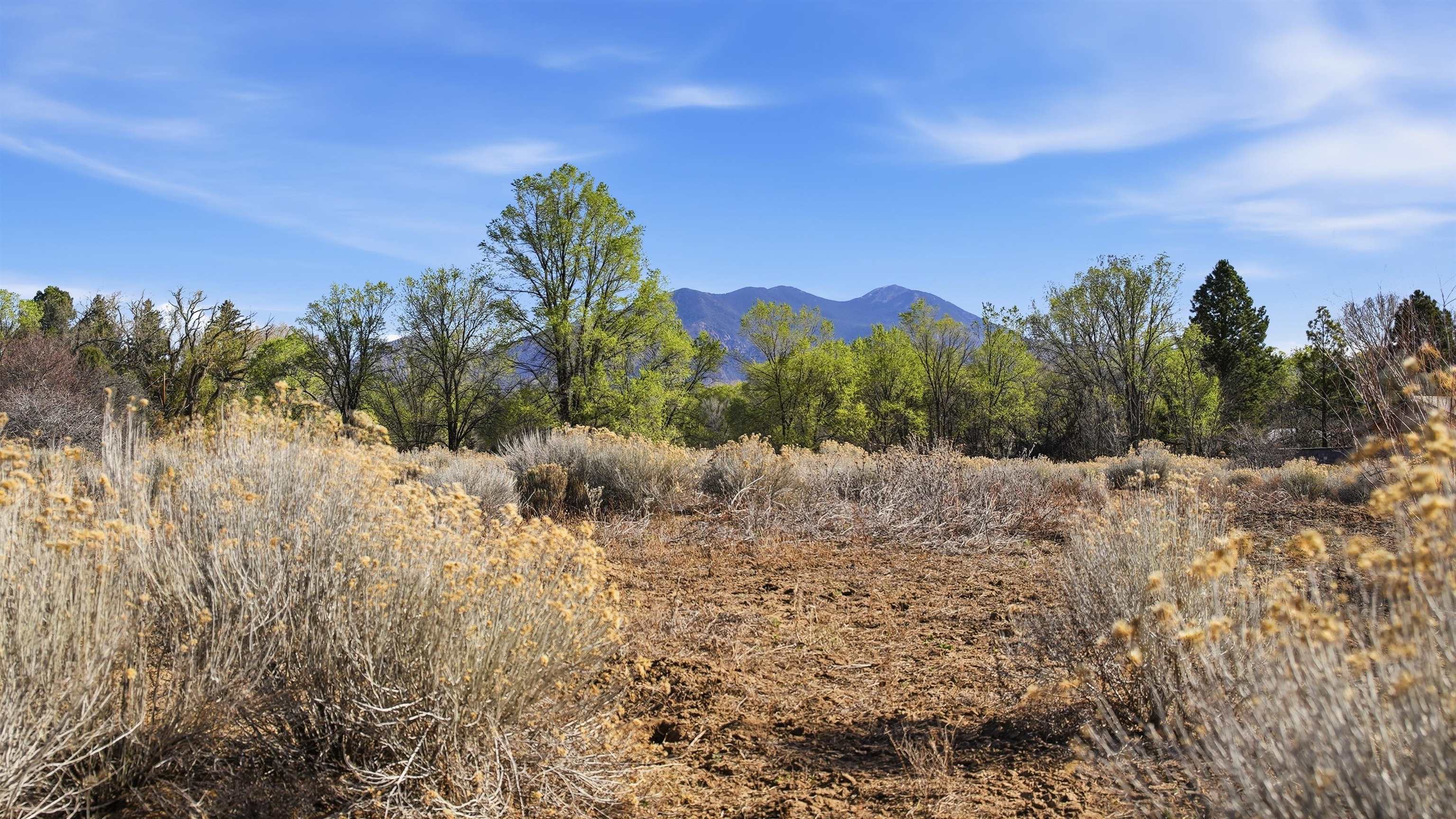Rare Valley 3 Plus Acre Parcel Minutes from Taos Plaza ~ This secluded oasis right in the middle of Downtown Taos is almost too good to be true. It is the perfect parcel to design your dream estate, perhaps multiple dwellings, or even a residential development project, pending town approval. This quiet neighborhood offers direct Taos Mountain views across the large field to the north—a feature you simply don't get on every piece of property in town. A short walk or drive means to the historic Taos Plaza, offering immediate access to the area's renowned galleries, museums, restaurants, and live music venues. When you're ready to explore, skiing at Taos Ski Valley and soaking at Ojo Caliente Hot Springs are both a short, scenic drive over the Gorge Bridge along the Rio Grande del Norte National Monument. Some photos display virtual depictions of homes on the property to spark creativity. Utilities either at the lot or nearby just down the road with legal access easement. Drive by and take a look at one of the last large parcels near Downtown Taos quietly tucked away in a peaceful town neighborhood. It doesn't even feel like your in Town at this special parcel ready to become your home sweet home.