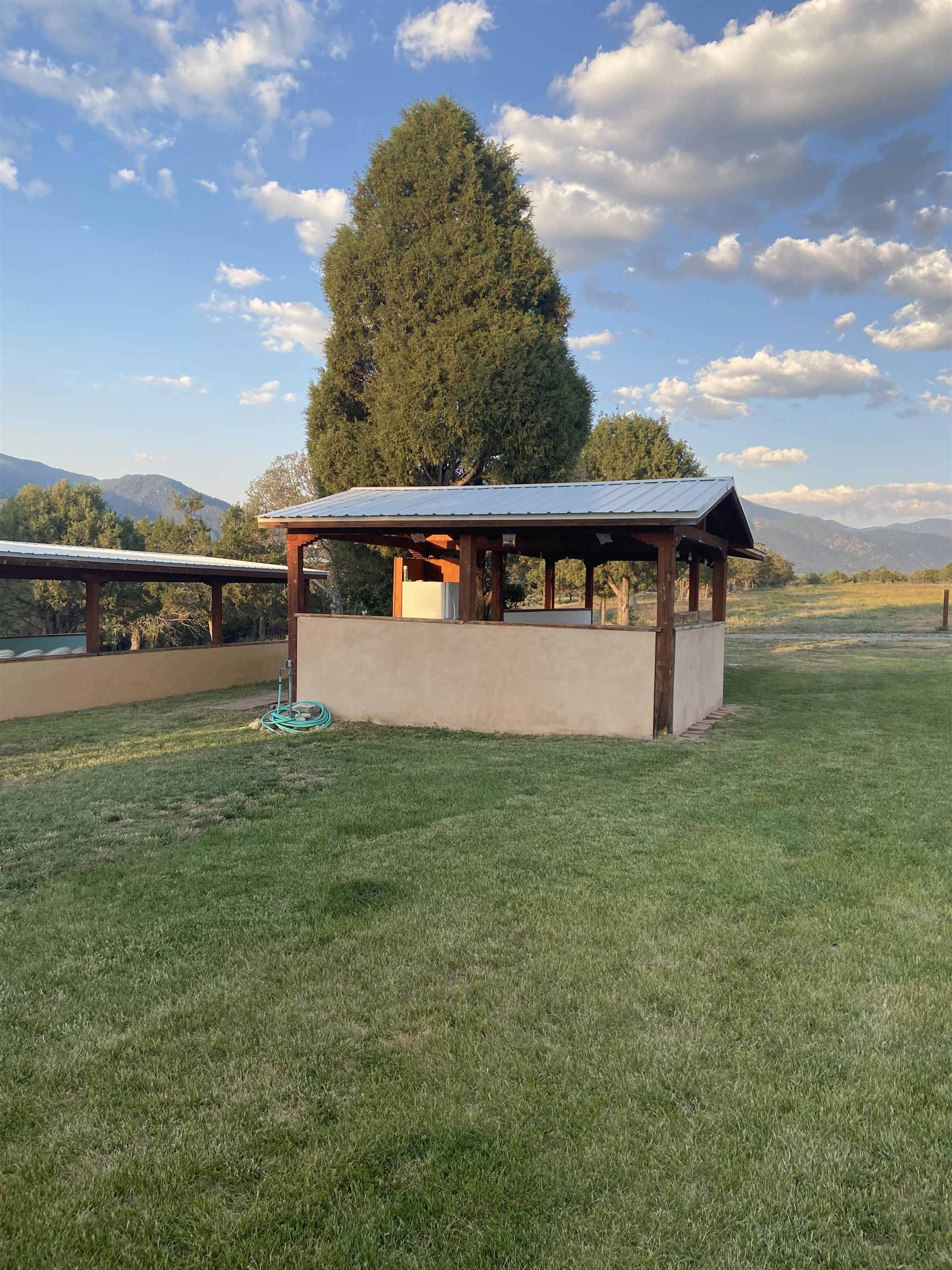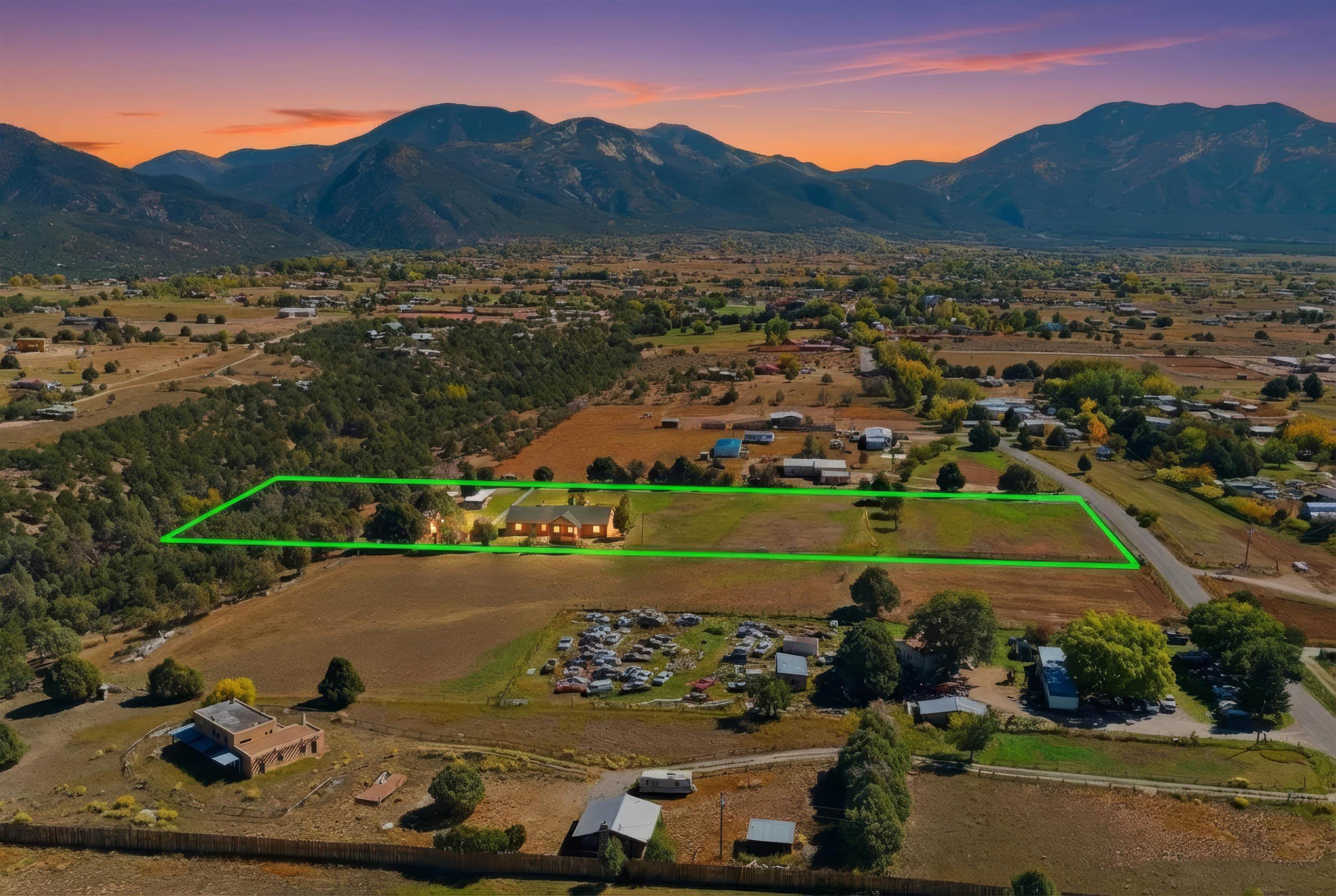 Magic Exists at Los Pino’s Park in Northern New Mexico ~ If you're from Northern New Mexico, you likely know ALL about this truly one-of-a-kind property. If you don't know about the magic of Los Pino's, you will when you lay first eyes or first step foot on the Land. Nestled in the shadow of Taos Mountains in Northern New Mexico near Taos Ski Valley, minutes from iconic Downtown Taos, near the Rio Grande river, and close to Taos Ski Valley, you will discover this lush and primarily flat 4.33 acre parcel with a Water Well and Acequia Surface Water Rights with an impeccable outdoor event space infrastructure. Comes with it, an astounding reputation, and plenty of potential. Los Pino’s Park is special, and for decades has served as a lively, and vibrant event space, in Nature, for guests to celebrate all of life's important moments under bright stars and well lit gazebos, around the custom bar, that sit atop solid concrete pads all powered by buried electric and water lines surrounded by five (5) hydrants. All of this may be left as is while continuing to host Special Events, such as, weddings, family reunions, anniversaries, graduations, birthdays, and so on... Perhaps you take it up a notch to entertain clients and host corporate functions with plenty of space for parking, or building multiple units for retreats. Better yet, you make this your own private sanctuary in the NM High desert, design your dream home to incorporate the already developed infrastructure in place, with a giant yard for pet’s to roam freely, and the children to play on nearly four and a half acres. A virtual home is in the photos to spark your creativity. It doesn't get much better than this, don't miss the opportunity!