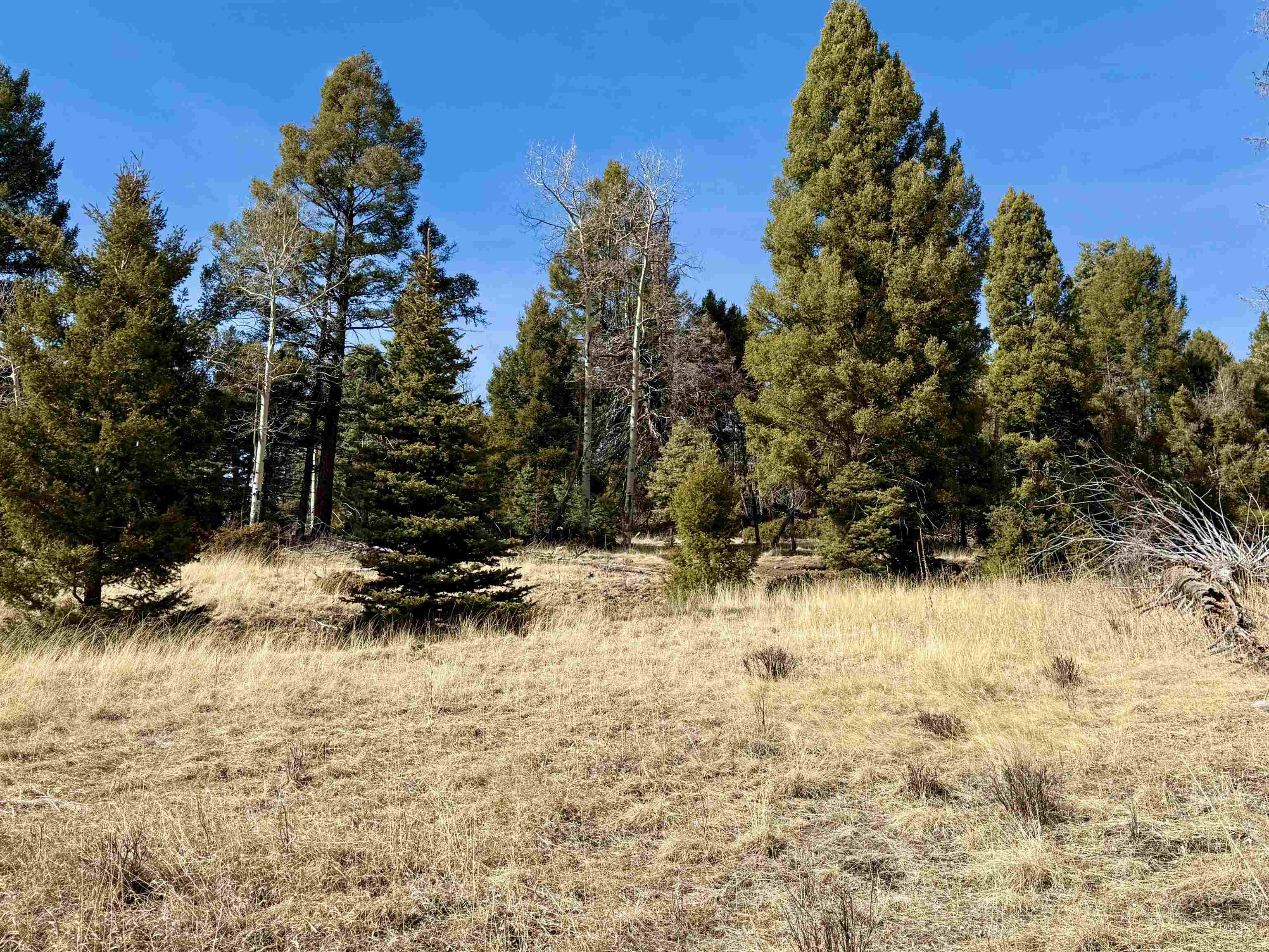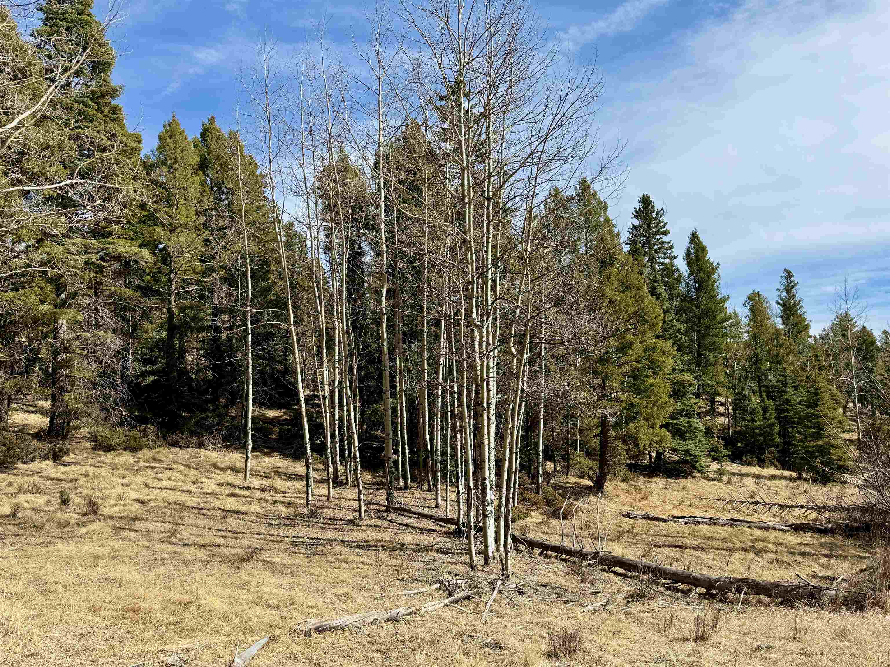 On Starshine Overlook in the Angel Fire Resort of the northern New Mexico southern Rocky Mountains: .89 forested acres on a quiet cul-de-sac with mountain views, just beyond Valley of the Utes. The back of the lot borders Tract EEE, a 4.84 acre greenbelt. A small aspen grove is ready to leaf out in late spring and add to the beauty of this special land. Fiber-optic internet is at the lot along with electricity and town water. It's a short drive to a skier drop-off on El Camino Real for an exhilarating run down Headin' Home to pick up the Chile Express hi-speed quad chairlift at the bottom. With average summer temperatures in the mid 70's with little to no humidity or mosquitos, you will finally be able to enjoy mountain living at its best. Angel Fire's amenities include a ski mountain with terrain park, a nationally acclaimed mountain bike park, a country club with fine dining, a PGA-rated golf course, tennis and pickle ball courts, a trout-stocked lake and more. Angel Fire Airport with its jet-capable runway mostly known for private aircraft, now welcomes Advanced Air's 5 round trips a week in season to Albuquerque. It's about a 35 minute drive to Taos, just over 2 hours to Santa Fe and about 3 hours to Albuquerque. This is a perfect setting for your new mountain getaway.