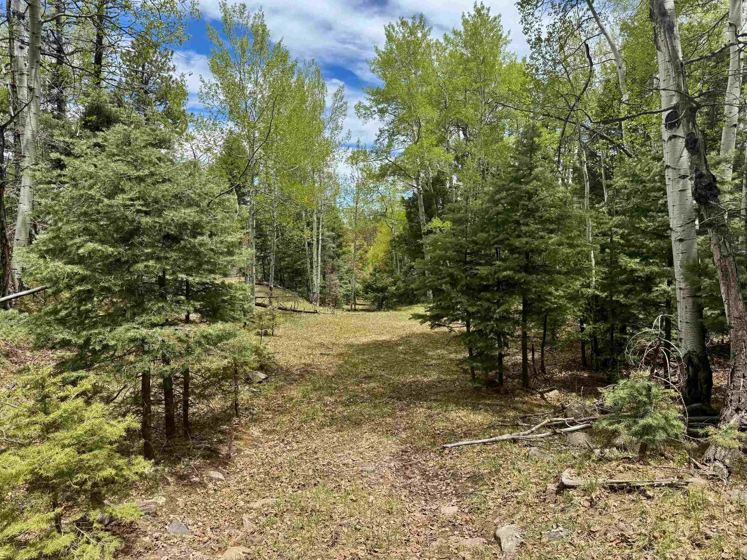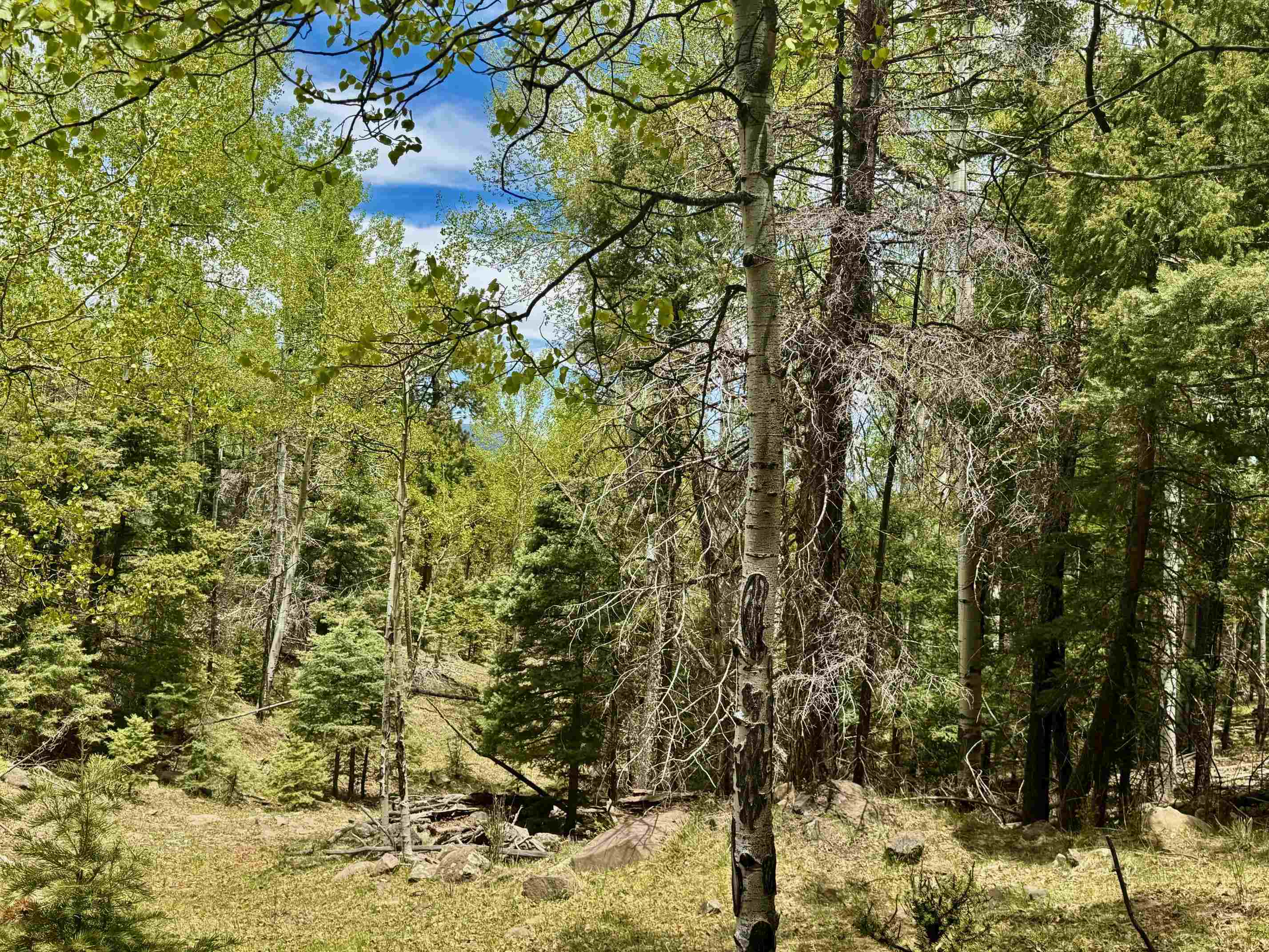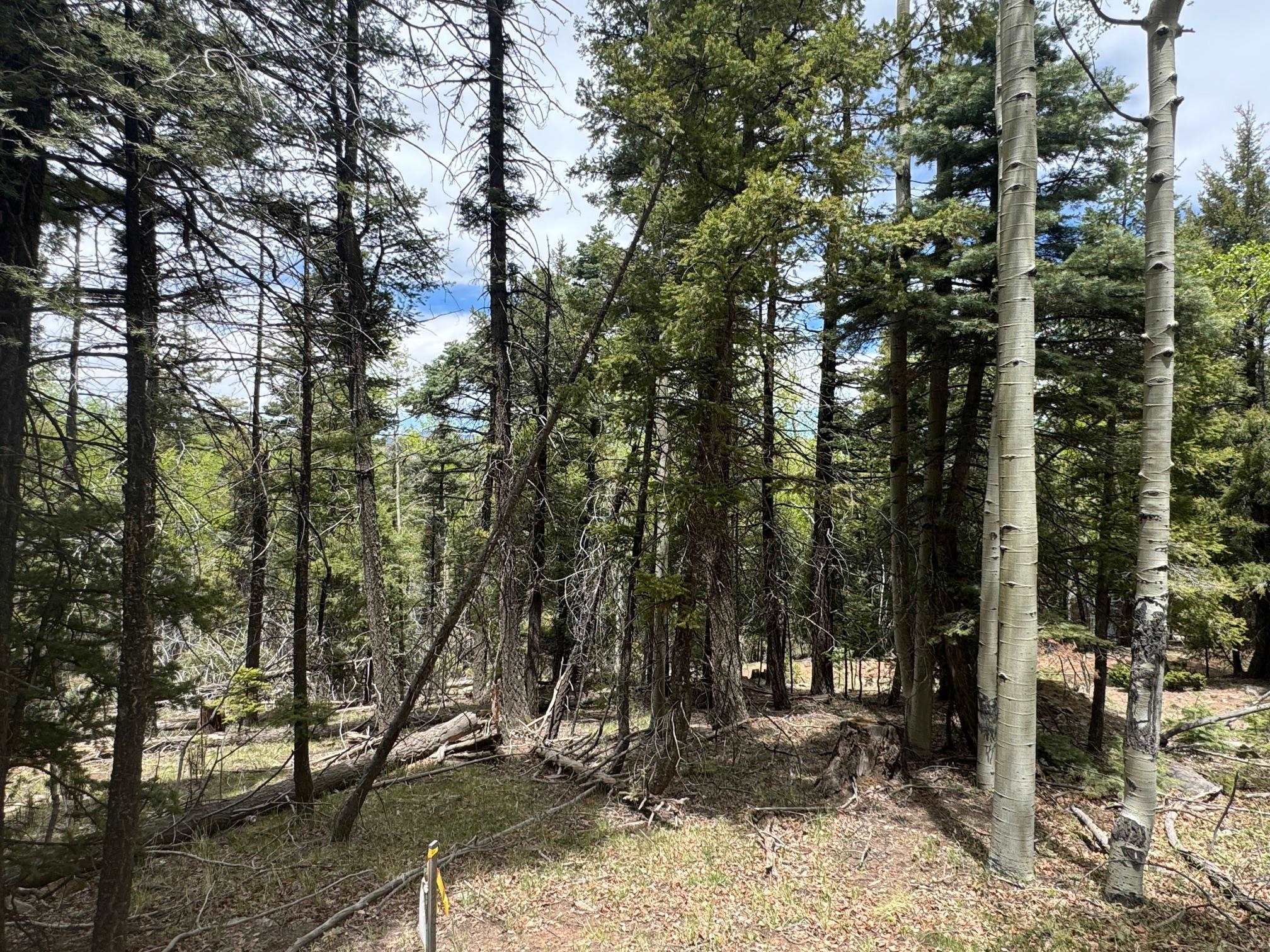 Flagged corners! This is a beautiful lot in a super location with several building sites. It is close to town and easy year-round access. Lots of towering pine and aspen trees as well as an old logging road crossing this property. Even though it is heavily wooded, mountain views can be seen through the trees. Thin the trees a bit, and the views will be stunning. This lot backs up to a large greenbelt. With so much space, your home should be quite the retreat. Come ski, golf, bike, and fish while enjoying all Angel Fire has to offer.
